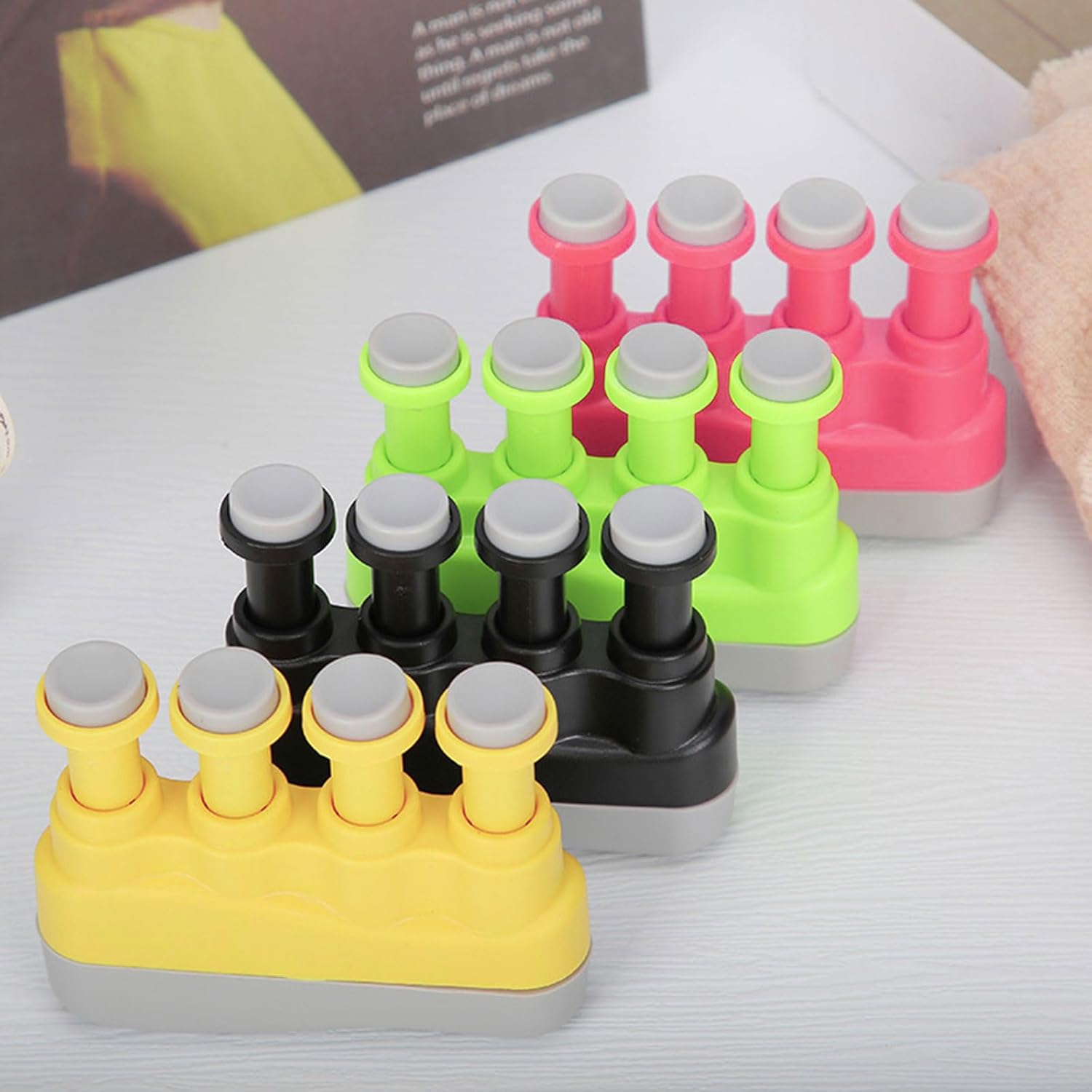 Questo trainer per le dita è adatto agli appassionati di musica che imparano o suonano strumenti come il pianoforte e la chitarra e aiutano a migliorare la destrezza delle dita. Perfetto per principianti, studenti e professionisti. Usa questo finger trainer portatile a casa, a scuola, in studio o durante uno spettacolo. è uno strumento pratico per i musicisti. Questo trainer per dita è dotato di tensione della molla regolabile per adattarsi a diversi punti di forza delle dita. Aumenta la forza e la flessibilità delle dita con questo trainer per le dita del pianoforte. Ottieni risultati migliori nella tua pratica. Realizzato con materiali durevoli in resina e imbottitura in silicone, durevole e affidabile.