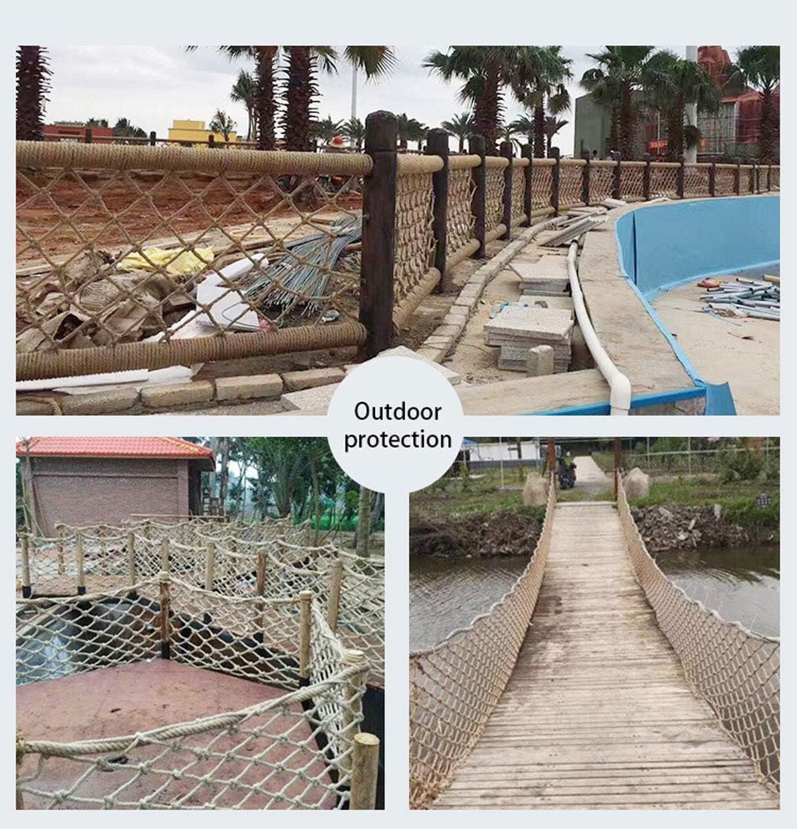 Diametro del filo della rete di sicurezza: 8 mm (0,31"), distanza tra le maglie: 10 cm (3,93"). La rete protettiva può essere adattata alla distanza delle maglie desiderata. Si prega di inviare un'e-mail per contattarci. È più durevole, più facile da installare e facile da smontare. La rete protettiva protegge la sicurezza dei bambini, morbidezza moderata, non facile da sbiadire, non ha paura del vento e della pioggia, lunga durata, capacità di carico fino a 300 kg. Quando non hai bisogno di usarlo, puoi piegarlo e riporlo comodamente. La rete di recinzione di sicurezza per bambini offre un ambiente di gioco sicuro per i bambini. La rete in corda può anche impedire efficacemente alla testa e al corpo dei bambini di entrare attraverso la ringhiera ed è robusta per le scale dei balconi interni ed esterni per garantire la sicurezza dei bambini Rete da arrampicata in corda di canapa, rete tessuta a mano, rete per recinzione di sicurezza per bambini, tessuto robusto di alta qualità, annodatura professionale, tessitura a più fili, rende la corda più durevole, protezione solare, annodatura professionale, tessitura a più fili, rendono la corda più durevole, hanno una forte resistenza agli urti. La rete multifunzionale in corda di canapa è adatta a tutti i tipi di scene, corridoi di porte e finestre, scale, balconi, ringhiere, letti per bambini, gabbie per animali domestici, asili nido, parchi di divertimento, strutture pubbliche, recinzioni paesaggistiche, pareti esterne, reti per uccelli e reti per la protezione delle piante.