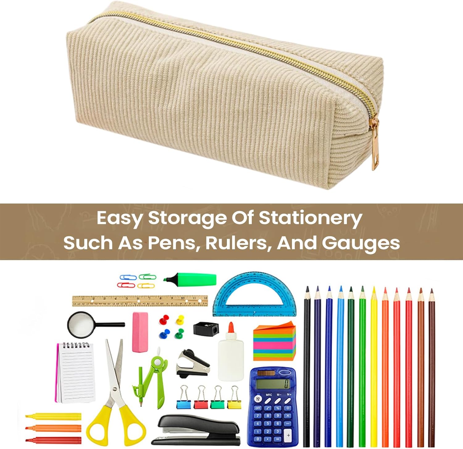 Design del tessuto delicato: realizzato con tessuto morbido morbido e senza lanugine, garantisce la protezione delle mani adattando perfettamente alla forma del palmo, non lasciando per il comfort esteso Layout di capacità efficiente: progettato per ospitare articoli di cartoleria, trucco e cavi di dati, la custodia a offre una struttura di grande capacità che si adatta a zaino in zaino per un facile trasporto e stoccaggio senza ingombri Elegante compagno di tutti i giorni: con superfici solide a velluto a coste con una consistenza chiara, questa custodia a trasuda un aspetto sottile, arricchito da hardware metallico che aggiunge al suo stile estetico, offrendo un mix di fascino e usabilità; Organizzazione versatile: la custodia a è ampiamente utilizzata per le aule, il pendolarismo e i viaggi, la memorizzazione di penne, le gomme e altro ancora, migliorando al contempo l'efficienza di accesso con una rapida localizzazione degli articoli necessari, migliorando la comodità quotidiana senza sforzo senza sforzo senza sforzo Funzionalità durevole con cerniera: dotato di una forte cerniera a doppio doghi, garantisce un'azione di scorrimento e offre un comodo accesso per organizzare e recuperare la cartoleria con facilità