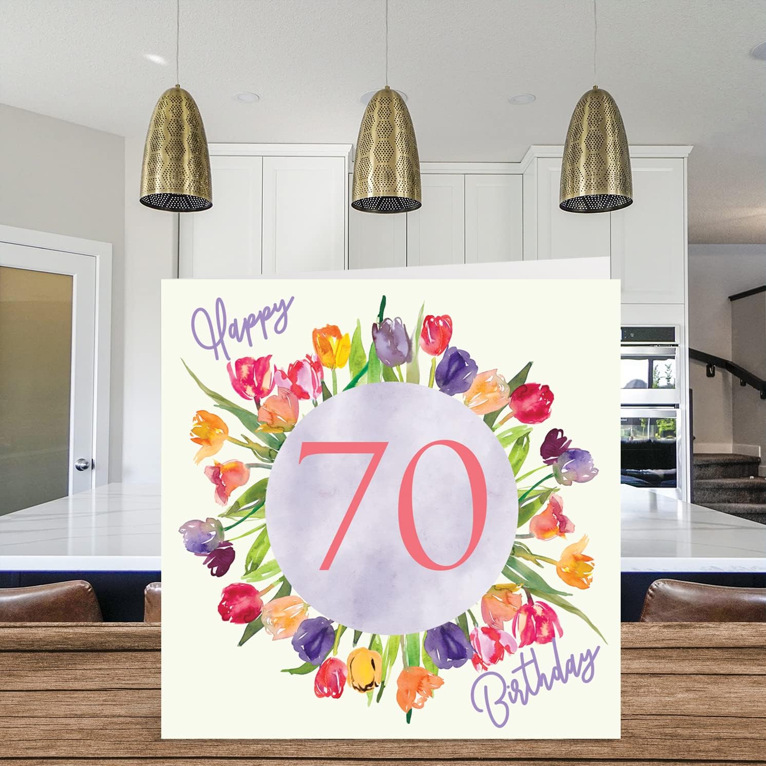 Falla sorridere con questo simpatico biglietto d'auguri: questo biglietto d'auguri di qualità eccezionale per lei mostra il design di tulipani acquerellati che dicono "Buon compleanno 70". Se stai cercando bellissimi biglietti d'auguri per lei, questo divertente biglietto d'auguri li farà sicuramente sorridere. Non solo come regalo di compleanno per donne, questo potrebbe anche essere un biglietto di auguri per mamma, nonna, nonna, zia o cugina. Cosa ottieni: il biglietto è stampato su un lato e vuoto all'interno per permetterti di scrivere il tuo messaggio. Il design unico e divertente è stampato su cartoncino ecologico appositamente progettato. Con uno spessore di 360 micron e 300 g/m², la lavagna bianca lucida ha un aspetto e una sensazione di qualità. Viene fornito con una busta gommata colorata per completare il design e pronta per essere sigillata e spedita. Nessuna macchia di inchiostro: non c'è niente di peggio che descrivere l'interno di una carta solo per scoprire che la superficie lucida fa sanguinare l'inchiostro. Per questo motivo utilizziamo un pannello di alta qualità con rivestimento unilaterale. Il lato non rivestito assorbirà più inchiostro dalla penna, rendendo le sbavature un ricordo del passato. Biglietti d'auguri per la nonna, biglietti d'auguri per la nonna, biglietti d'auguri per la nonna con parole adorabili, biglietto d'auguri per 70 anni per donne. Dimensioni: biglietto d'auguri = 145 mm x 145 mm, busta = 155 mm x 155 mm, peso della carta: 300 g/m², spessore della carta: 360 micron. Ottimi biglietti d'auguri per moglie. Biglietti d'auguri per moglie, biglietti d'auguri per nonna, biglietti d'auguri per nonna, biglietti d'auguri per nonna, biglietti d'auguri per nonna, biglietti d'auguri speciali per nonna, biglietti d'auguri per nipoti. Prodotto e qualità controllata nel Regno Unito: stampiamo e produciamo tutti i nostri prodotti direttamente nel Regno Unito, così puoi essere sicuro di un reso rapido e di un prodotto fabbricato con cura. Utilizzando il miglior cartoncino certificato Forest Stewardship Council, la nostra carta è consapevole della gestione responsabile delle foreste del mondo: biglietti di compleanno per nonna, biglietto di compleanno per nonna, biglietto di compleanno per nonna, biglietto di compleanno per nonna, biglietto di compleanno per nonna.
