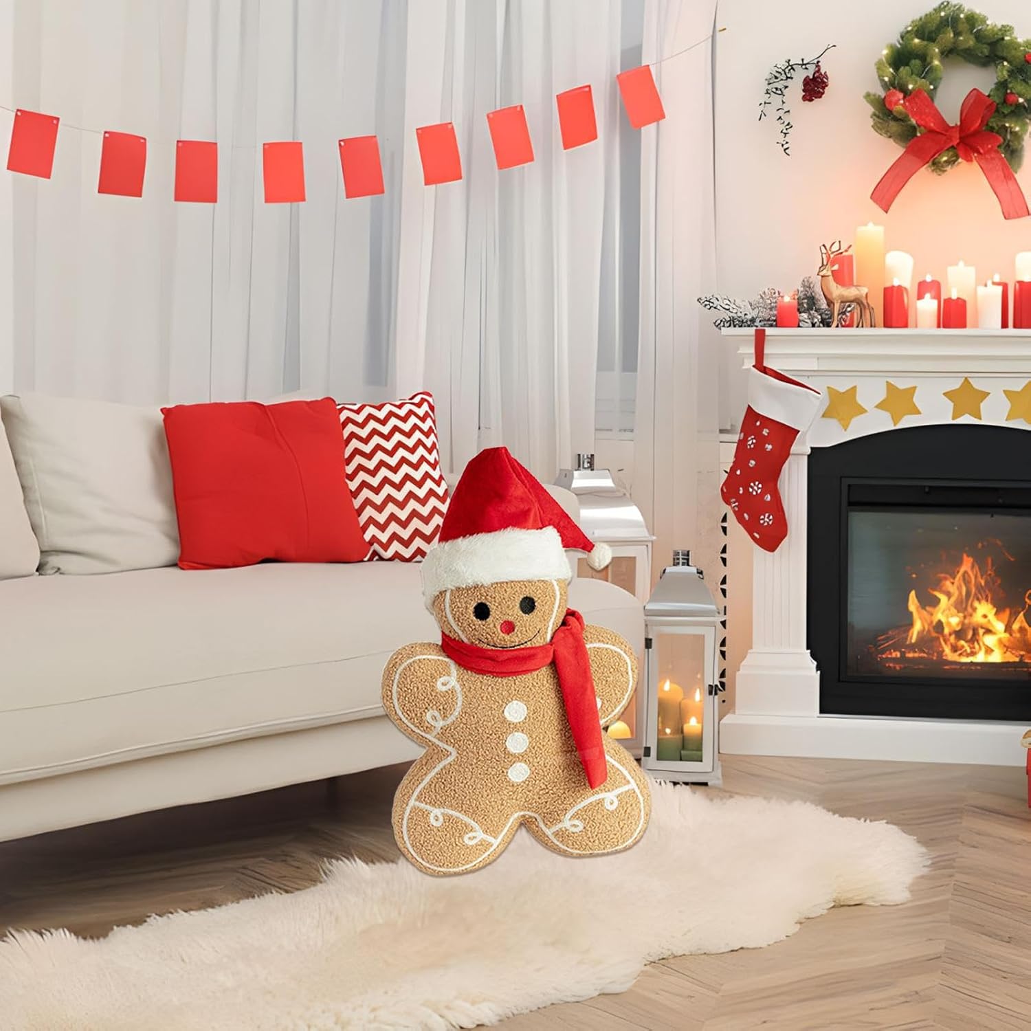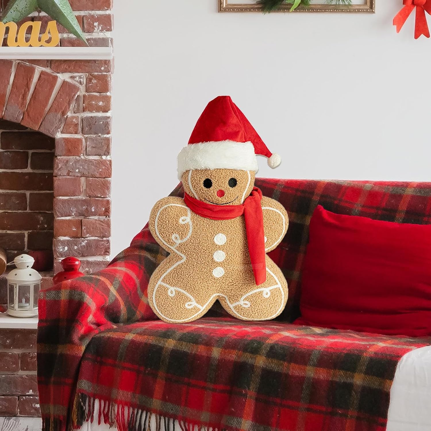 Boosts Holiday Spirit: Bring a festive atmosphere to life with this gingerbread man plush, great for versatile holiday decor needs, including adorning your Christmas tree or enhancing your home with a warm accent Eco-Friendly Material: Designed with pp cotton filling and wrapped in plush fabric, this product assures a soft material touch and gentle feeling, assuring maximum comfort whether used as a decorative accent or functional cushion accessory Broad Application: Great for Christmas parties, this plush gingerbread man complements sofas, chairs, and even works as a car seat accessory for versatile placement Cozy Space Highlight: Improve your home's holiday aesthetic with this decorative gingerbread man, crafted to improve cozy spaces and provide a striking visual appeal during the festive season Consummate Present: Surprise your family and friends with this delightful gingerbread man plush, an excellent choice to share care, love, and happiness during birthdays and cherished celebrations