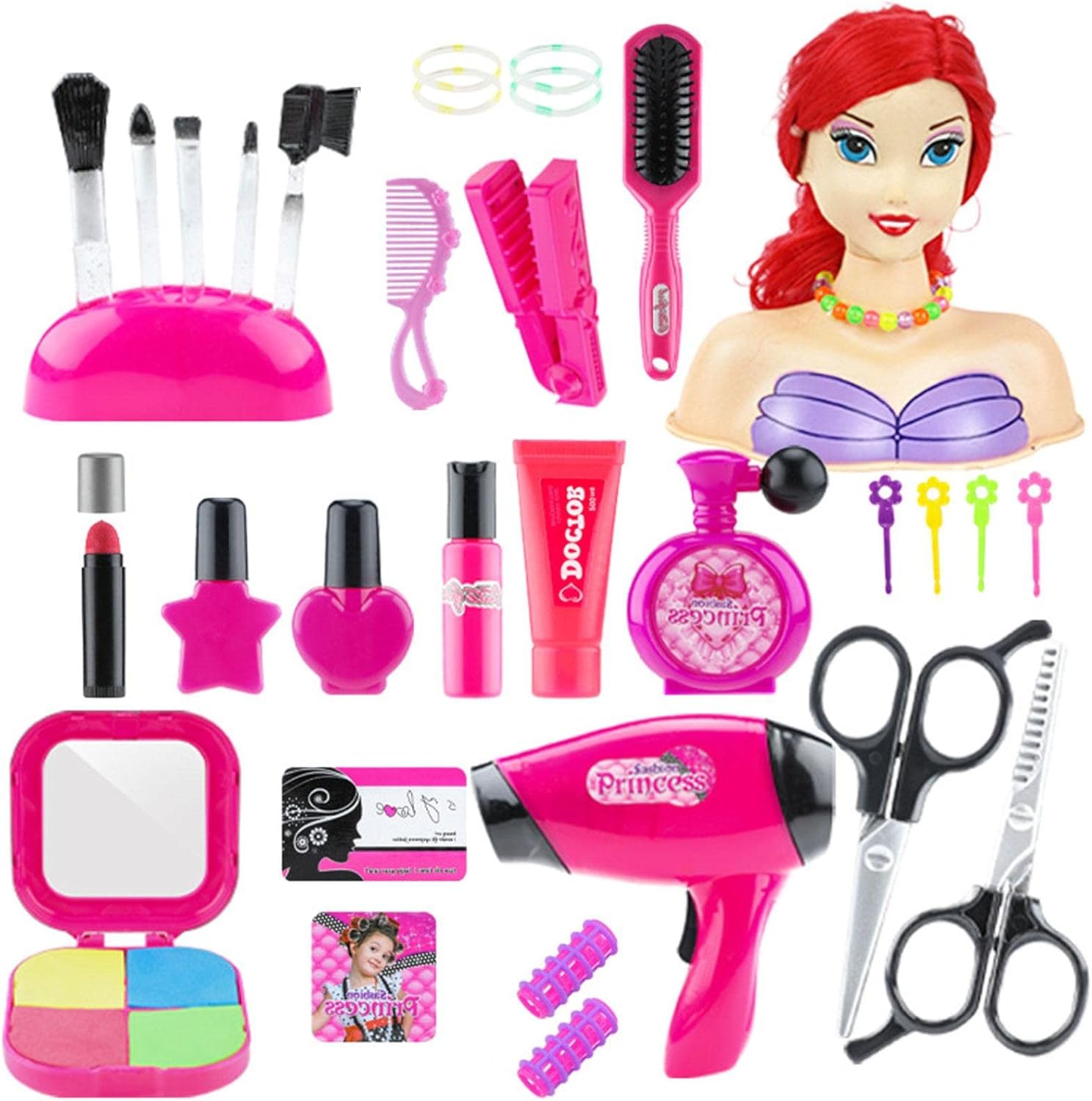 ✫Incontra la curiosità e impara trucco: la testa della bambola del trucco può soddisfare la curiosità di una ragazza e imparare a truccarsi. Quando la tua bambina riceve la nostra borsa per trucco, può simulare felicemente trucco. ✫Esercita la capacità di apprendimento dei bambini: la bambola per lo styling può aiutare i tuoi bambini a esercitarsi con le acconciature a maglia e migliorare le capacità pratiche e di progettazione dell'acconciatura dei bambini. ✫Aumenta l'attenzione e la coordinazione: sembra efficiente che il set per trucco delle bambole possa sviluppare l'attenzione creativa e la coordinazione occhio-mano dei bambini attraverso questo e migliorare la loro fiducia. ✫Comodo da trasportare: il gioco dei capelli della testa di bambola è una scatola carina, appositamente progettata per la tua bambina che può organizzare tutti i set di strumenti finti e metterli per portarli ovunque. ✫Regalo squisito: la bambola per acconciature è adatta per giochi di finzione, feste di principesse, borse per trucchi per ragazze principianti, feste, giochi genitore-figlio e un regalo perfetto per Natale e compleanni.