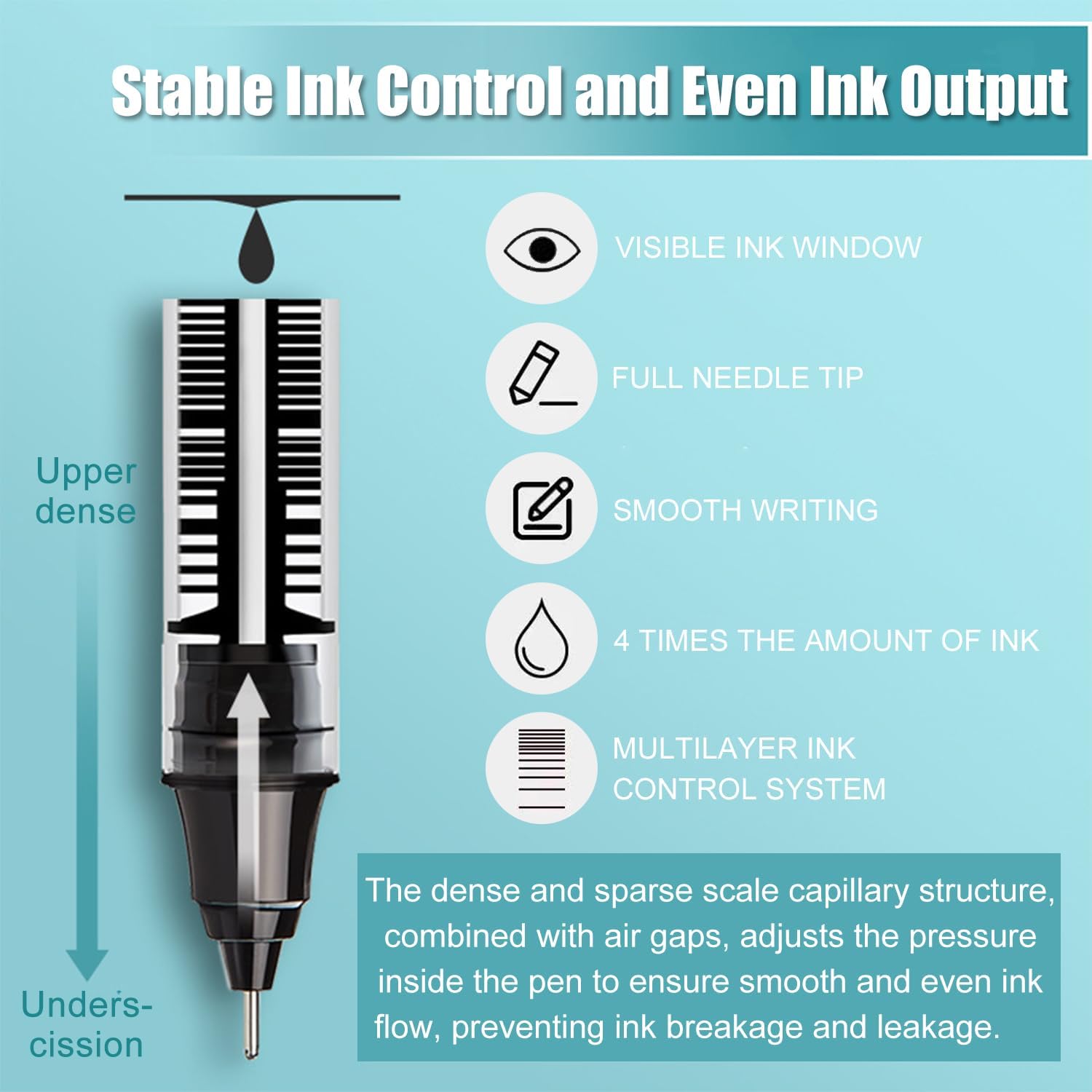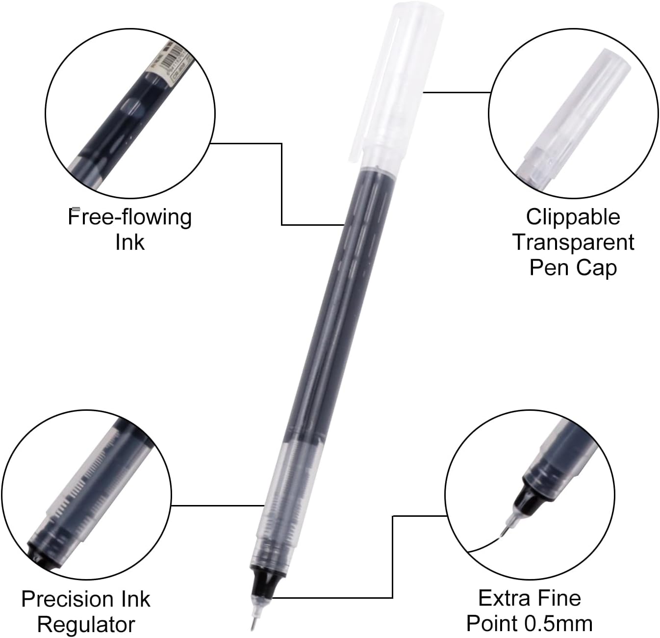 La confezione include: riceverete 26 penne a sfera liquide in nero. La quantità Sufficient are enough for your daily writing, signing and marking needs, and can also be shared with your family and friends. Inchiostro ad asciugatura rapida: usiamo un inchiostro nero di alta qualità quasi asciutto e resistente allo sbiadimento, che non è permeabile e non terrà le mani e i libri per garantire che non si rovini o pietre, vi aiuterà a mantenere il lavoro necessario e organizzato; vi piacerà questo stile di penna a sfera super veloce una volta che lo indossate. Scrittura fluida: queste penne a punta extra da 0,5 mm con regolatore di uscita dell'inchiostro di precisione integrato, che può garantire un flusso di inchiostro liquido uniforme, fornire costantemente scorrimento senza skip e linee pulite ed è in grado di adattarsi a una varietà di carta, per scrivere più agevolmente rispetto alle penne tradizionali. Ampia capacità e fornitura di inchiostro visibile: il tubo per penna a sfera ha un design unico con una custodia trasparente per penna, puoi vedere chiaramente l'inchiostro. L'intero tubo è riempito con inchiostro e la lunghezza di scrittura è per quattro volte quella di una normale penna gel. Ampia gamma di applicazioni: queste penne a sfera sono adatte per scuola, ufficio e casa. Ideale per scrivere, diario, prendere appunti, underlining, sketching e molto altro ancora.