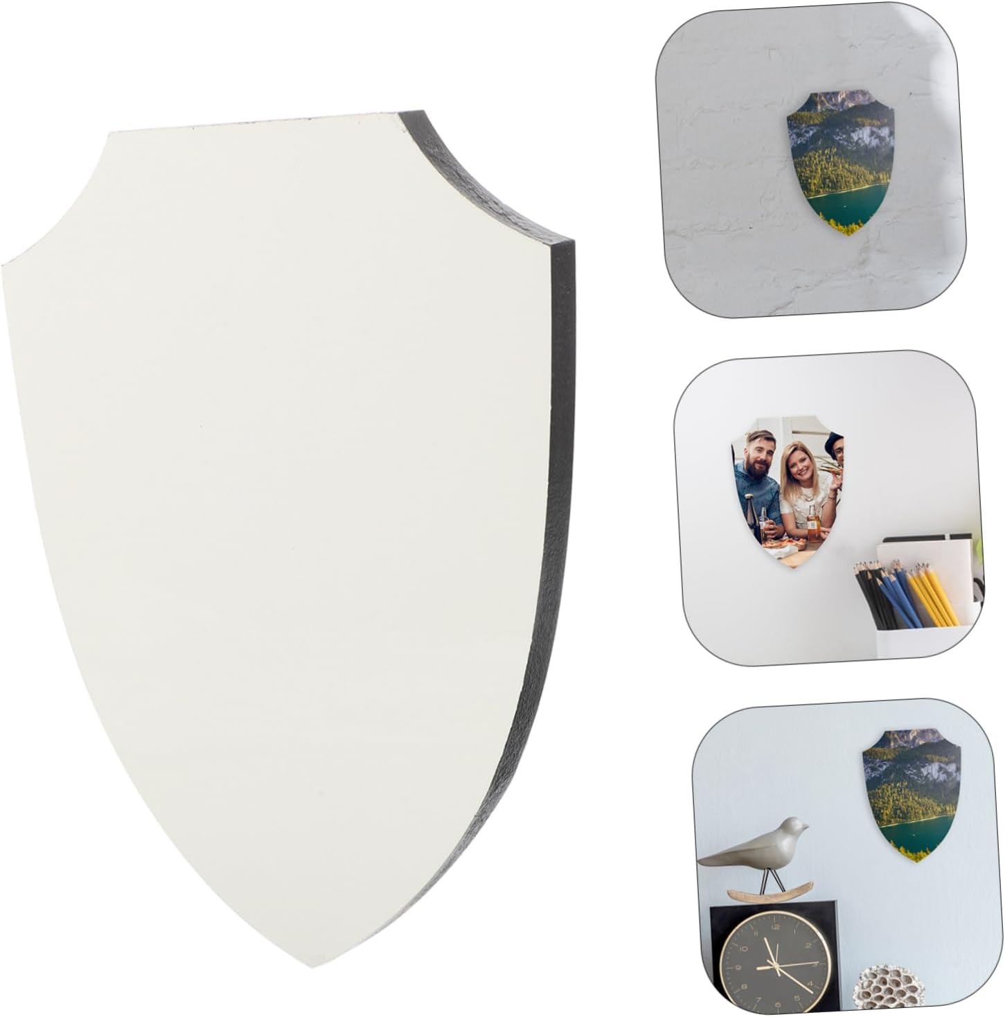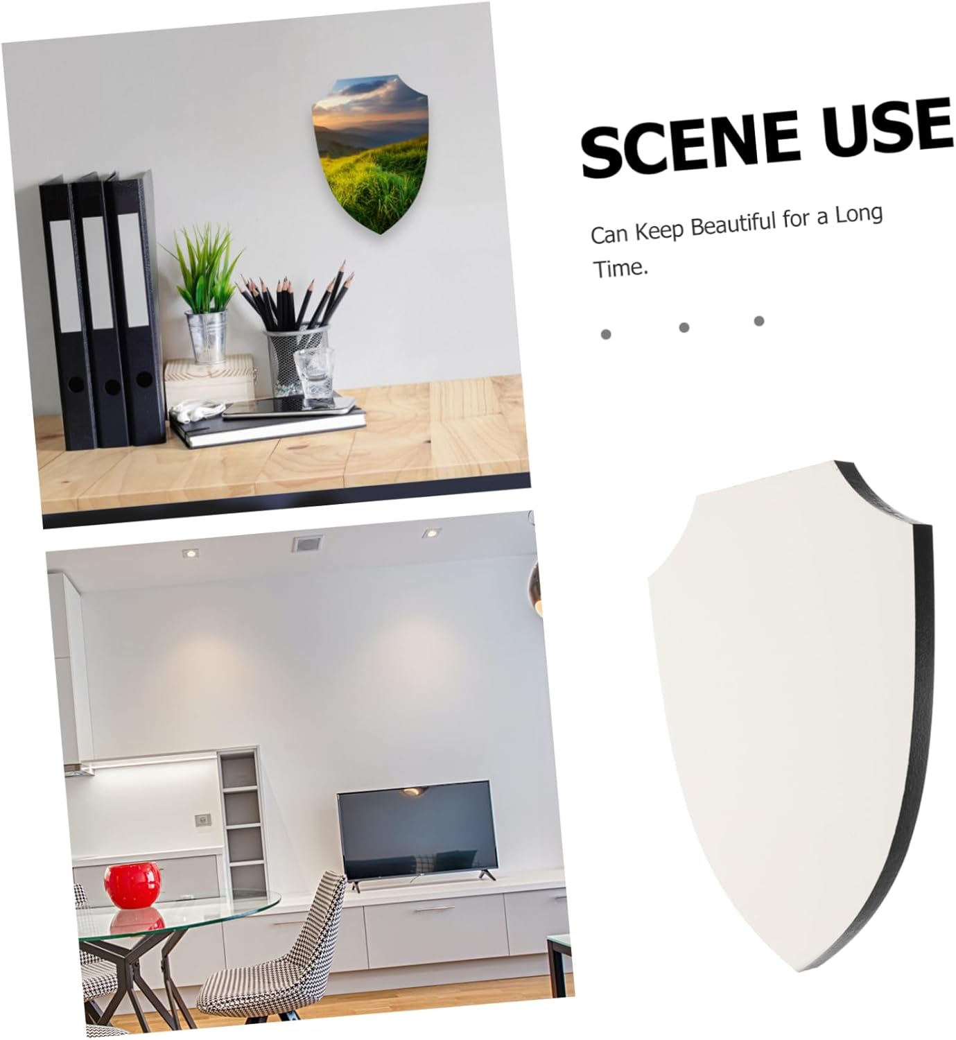 Decorazione domestica distintiva: lo scudo di sublimazione è un oggetto unico di decorazione domestica che aggiunge stile e una personalità distintivi al tuo spazio abitativo Durevole e attraente: lo scudo per sublimazione è durevole e visivamente accattivante, garantendo che rimanga bello per anni Installazione semplice: l'installazione dello schermo per sublimazione è semplice e veloce e richiede solo pochi passaggi e strumento professionale, rendendolo una comoda aggiunta alla tua casa Decorazione versatile: adatto a una varietà di ambienti di arredamento, lo scudo di sublimazione può essere utilizzato in soggiorni, camere da letto, uffici e altro, migliorando l'atmosfera artistica di qualsiasi spazio Decorativo: lo scudo a sublimazione che permette di scegliere diversi disegni e testi per creare un pezzo decorativo unico