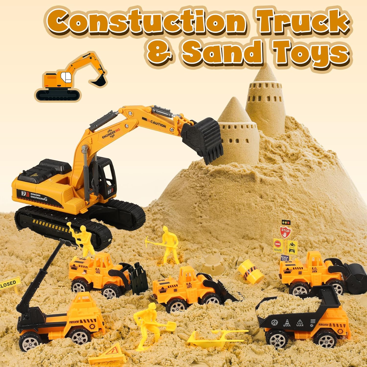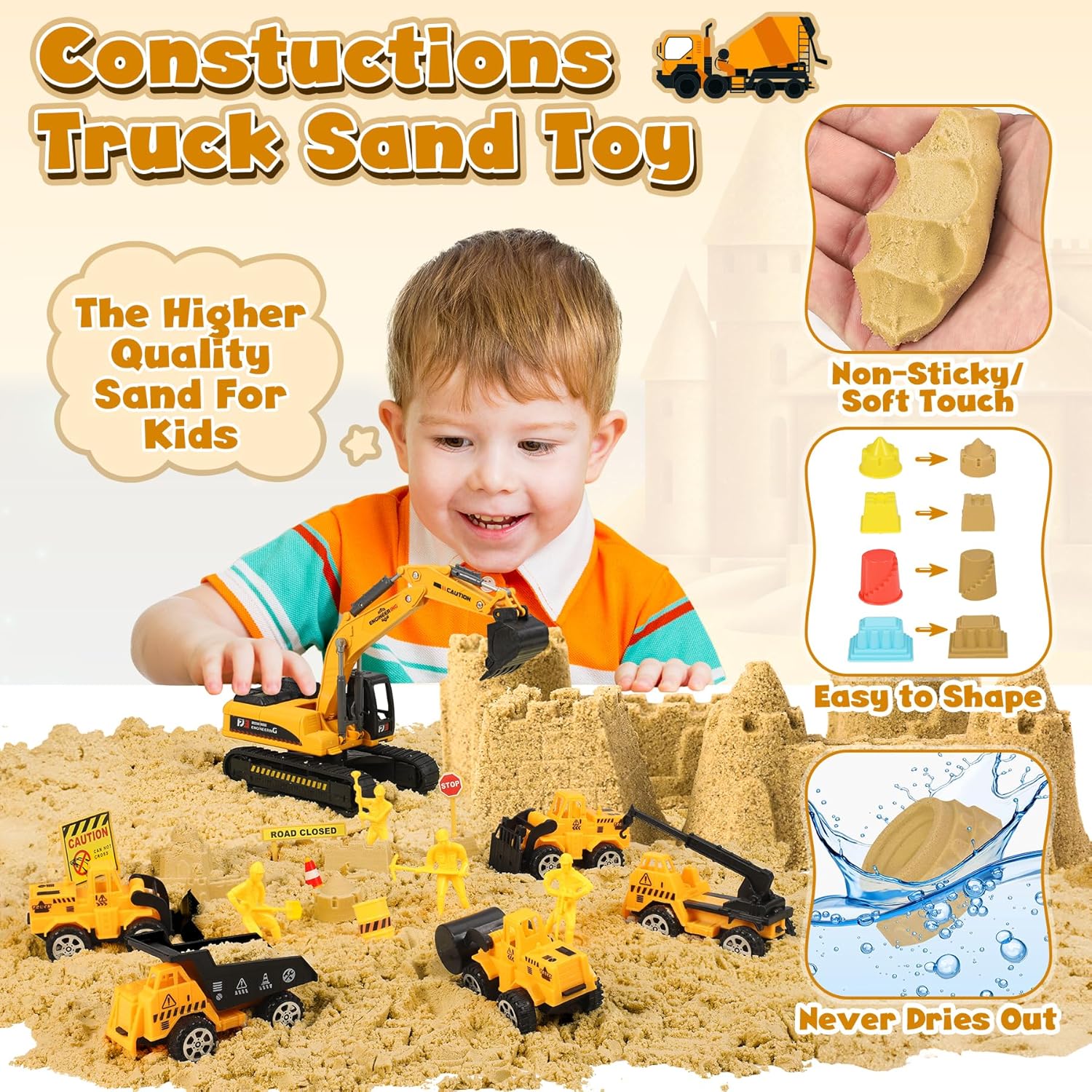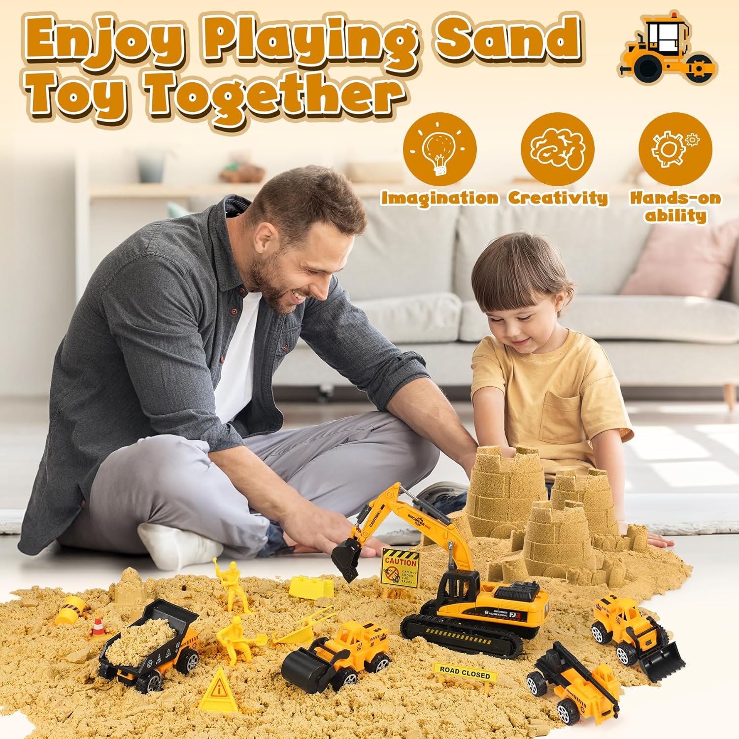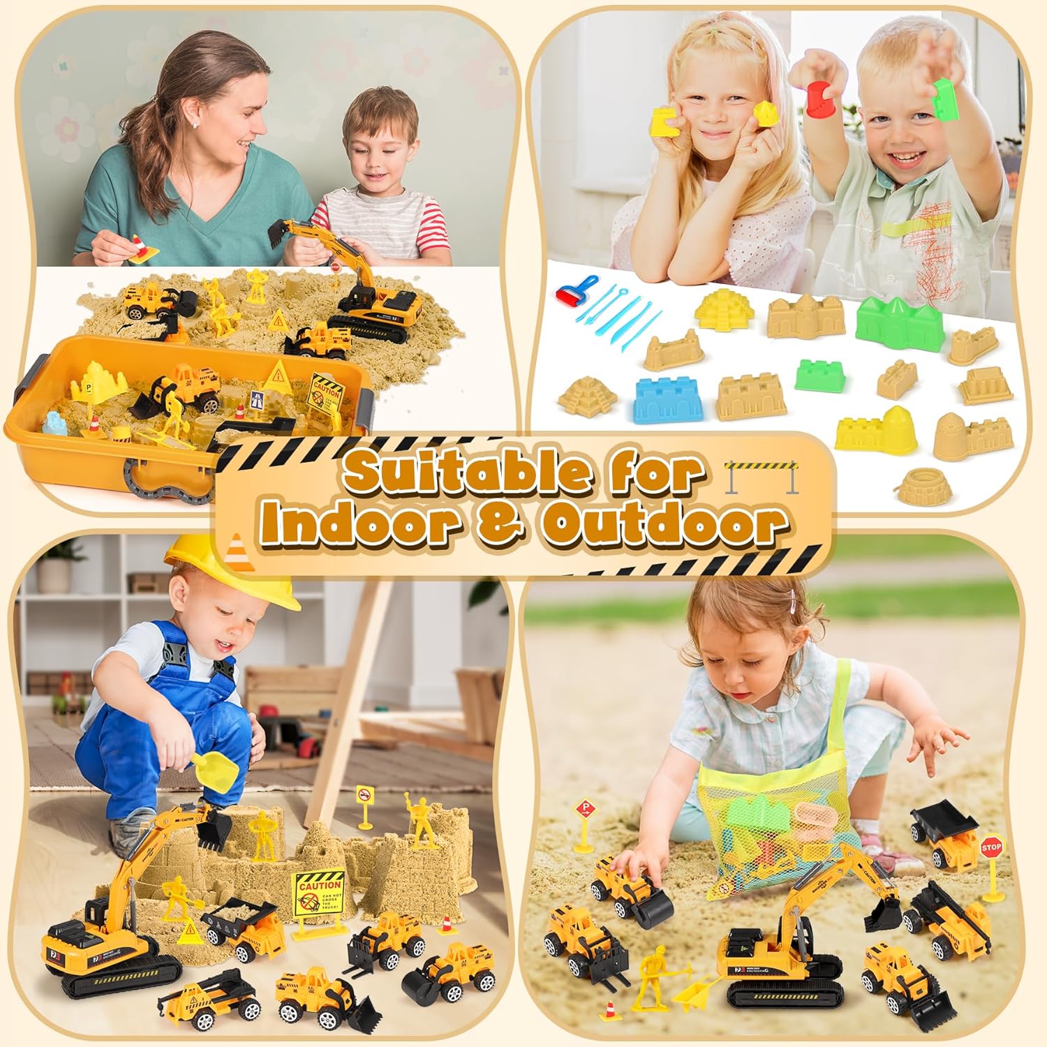 【Set di Costruzioni con Sabbia Magica】I nostri giocattoli con sabbiera includono 1000 g di sabbia da gioco, 5 veicoli da costruzione, 1 grande escavatore, 9 utensili per la sabbia, 16 stampi per castelli di sabbia, 1 gru, 4 modelli di lavoratori, 14 segnali stradali e ostacoli e una sabbiera. Il ricco kit terrà sicuramente i tuoi bambini intrattenuti per ore. 【Stimola l'Abilità Pratica e la Creatività dei Bambini】 Attraverso una facile modellazione e creazione, i bambini possono costruire i castelli dei loro sogni e scavare grotte del tesoro fantasy. Ogni gioco è una preziosa opportunità di pratica pratica, che esercita efficacemente la coordinazione delle mani e le capacità motorie fini. 【Sabbia Morbida e Sicura】La sabbia magica è famosa per essere morbida e sicura, atossica e innocua e piacevole al tatto. Facile da modellare, non appiccicosa e non sbiadisce. Può ispirare la creatività illimitata dei bambini ed è adatta sia per uso interno che esterno. Può migliorare l'interazione genitore-figlio in famiglia e condividere momenti di avventura in spiaggia sicuri, creativi e divertenti! 【Facile da Riporre e Trasportare】I giocattoli di sabbia da spiaggia sono dotati di una sabbiera con coperchio e una borsa portaoggetti. La scatola portaoggetti è facile da trasportare per i bambini, sia all'interno che all'esterno, ed è facile da pulire, riporre e trasportare. (Dimensioni della sabbiera 39*25*8,5 cm) 【Regalo per Bambini】Scatola sensoriale da costruzione splendidamente confezionata, progettata per bambini e bambine di 3-7 anni, stimola un gioco fantasioso illimitato, lontano dai prodotti elettronici, è un giocattolo adatto a bambini e bambine di 3 4 5 6 7 anni, adatto come regalo di compleanno, regalo di Natale, regalo di festa o regalo per bambini.