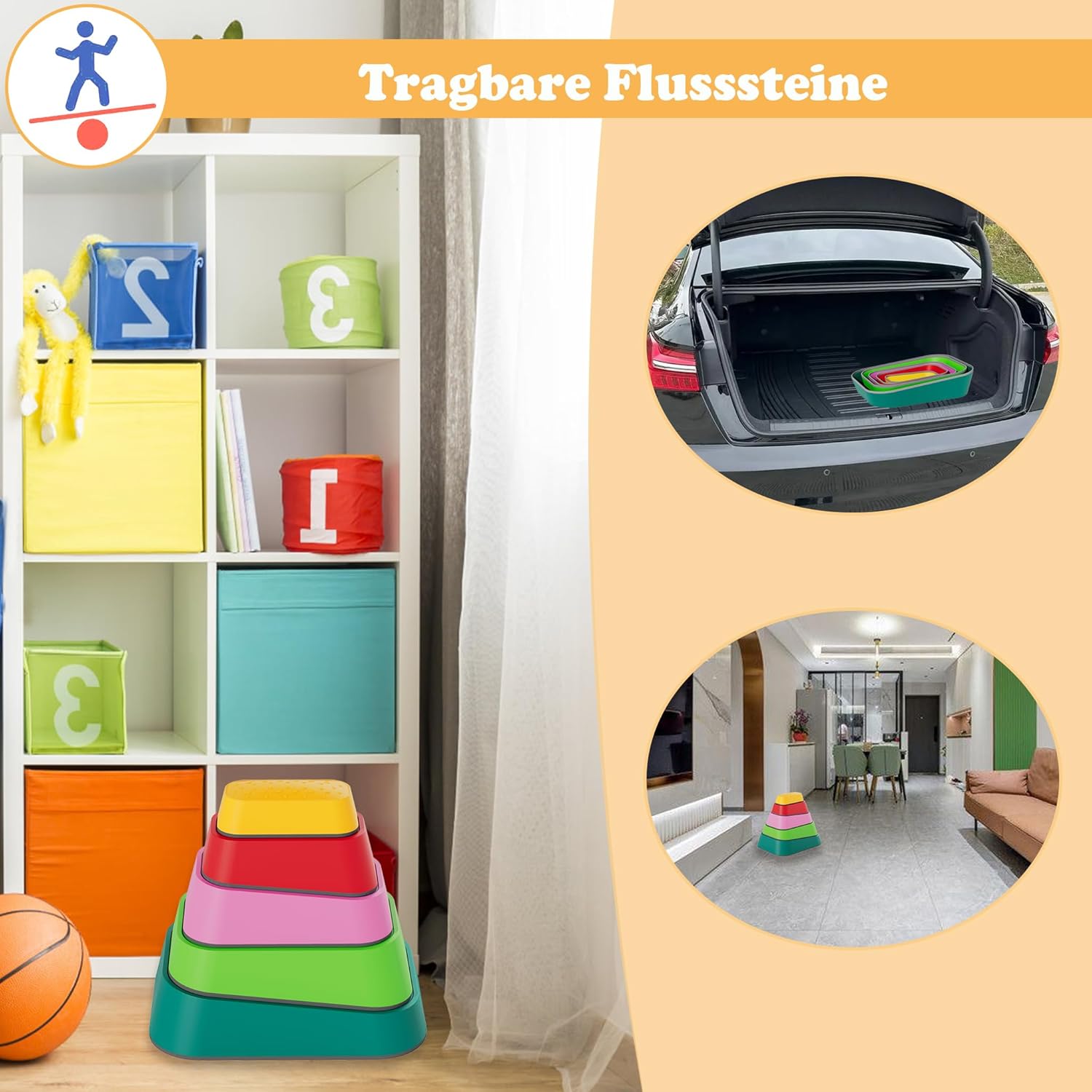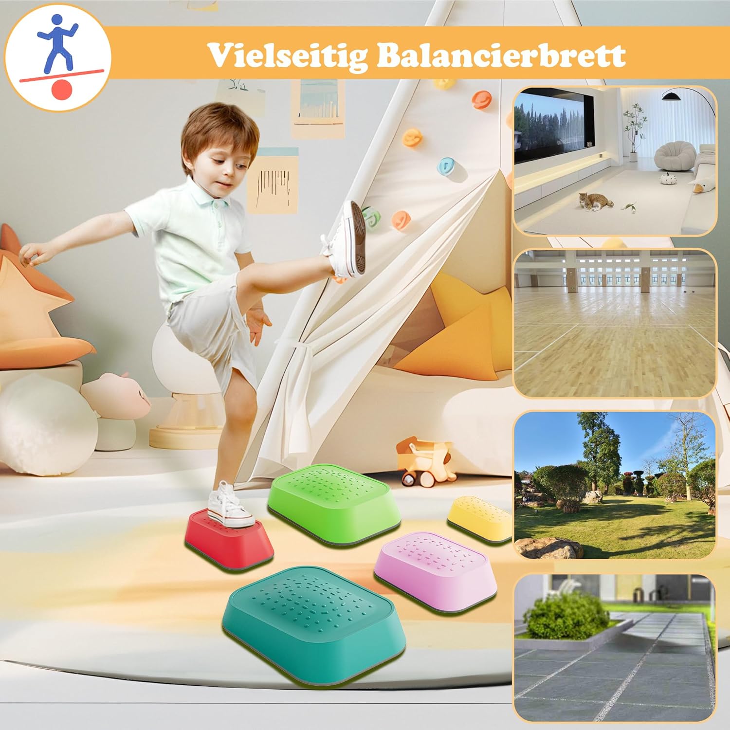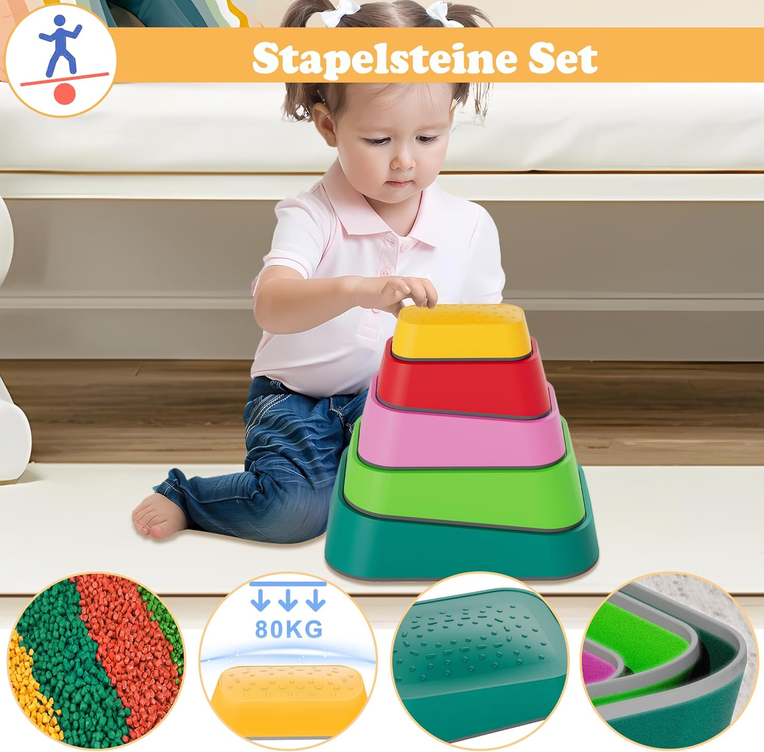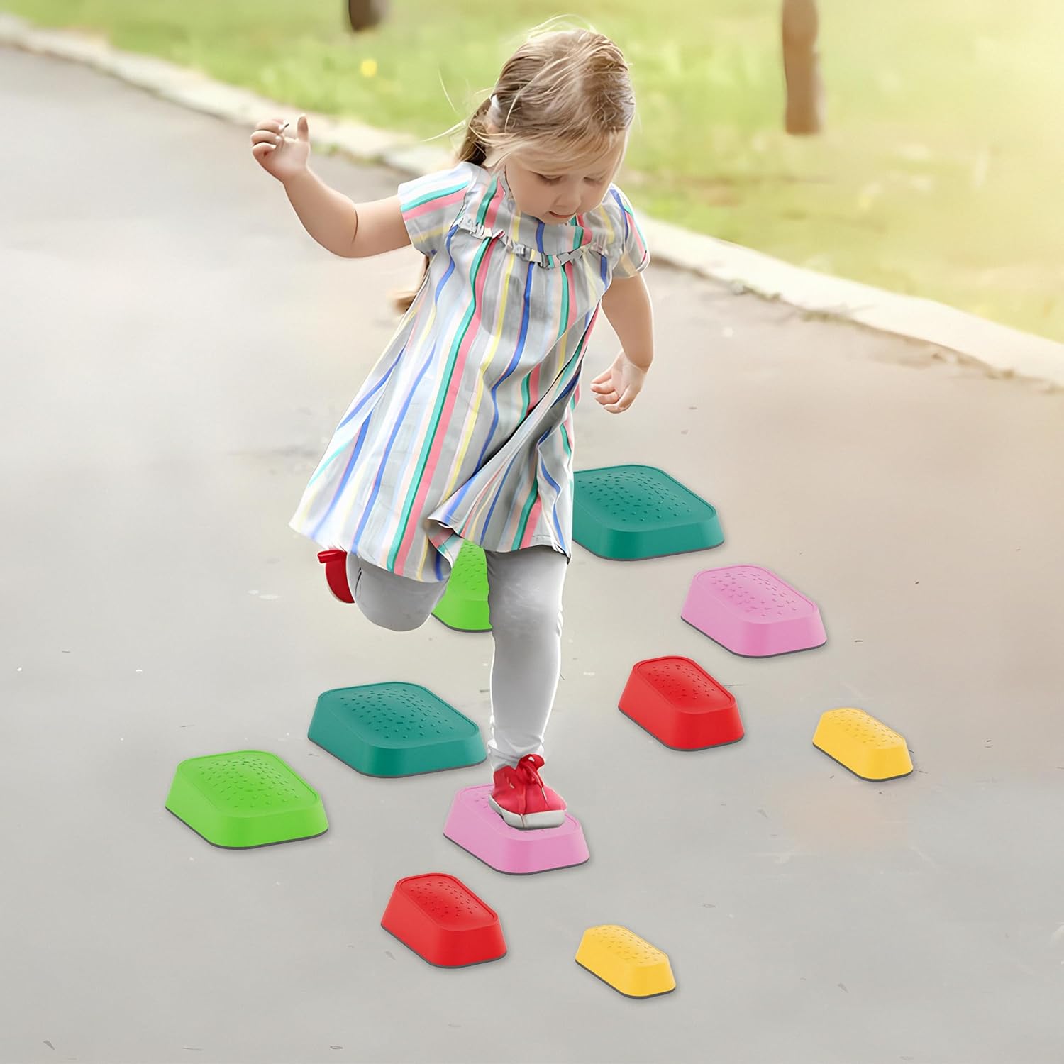 Tavola di equilibrio: materiale: PP + TPE, colore: multicolore, quantità: 11 pezzi/5 pezzi, carico massimo: 80 kg, adatta per bambini dai 3 ai 9 anni Pietre di fiume stabili: set di travi di equilibrio per bambini in polipropilene e TPE di alta qualità. Le pietre dell'equilibrio hanno bordi lisci per garantire un utilizzo sicuro. Le pietre impilabili possono sostenere fino a 80 kg. Sviluppa le capacità di equilibrio dei bambini: il set di Balance Board può essere configurato in combinazioni libere, stimolando l'immaginazione e la creatività del tuo bambino. Durante il montaggio e l'utilizzo potrete allenare anche l'equilibrio, la coordinazione corporea, la forza muscolare e molto altro ancora. Pietre impilabili facili da montare: non sono necessari strumenti di montaggio aggiuntivi, il montaggio può essere effettuato combinando diverse parti. Design rimovibile e impilabile per riporlo facilmente. Trave di equilibrio versatile: questo giocattolo per l'equilibrio può essere utilizzato in diverse situazioni, ad esempio in giardino, in spiaggia, sul balcone, nella sala giochi, nella camera dei bambini, in soggiorno, ecc. Così potrete godervi un piacevole momento genitore-figlio con il vostro bambino.