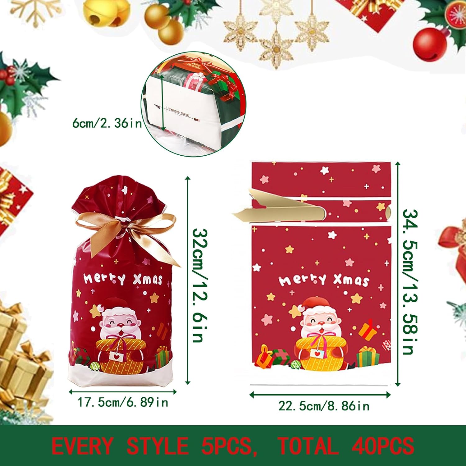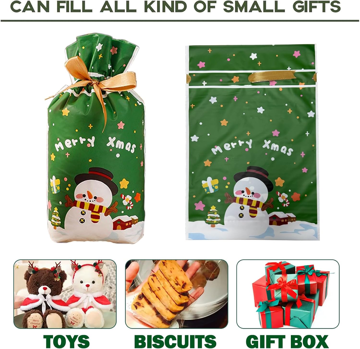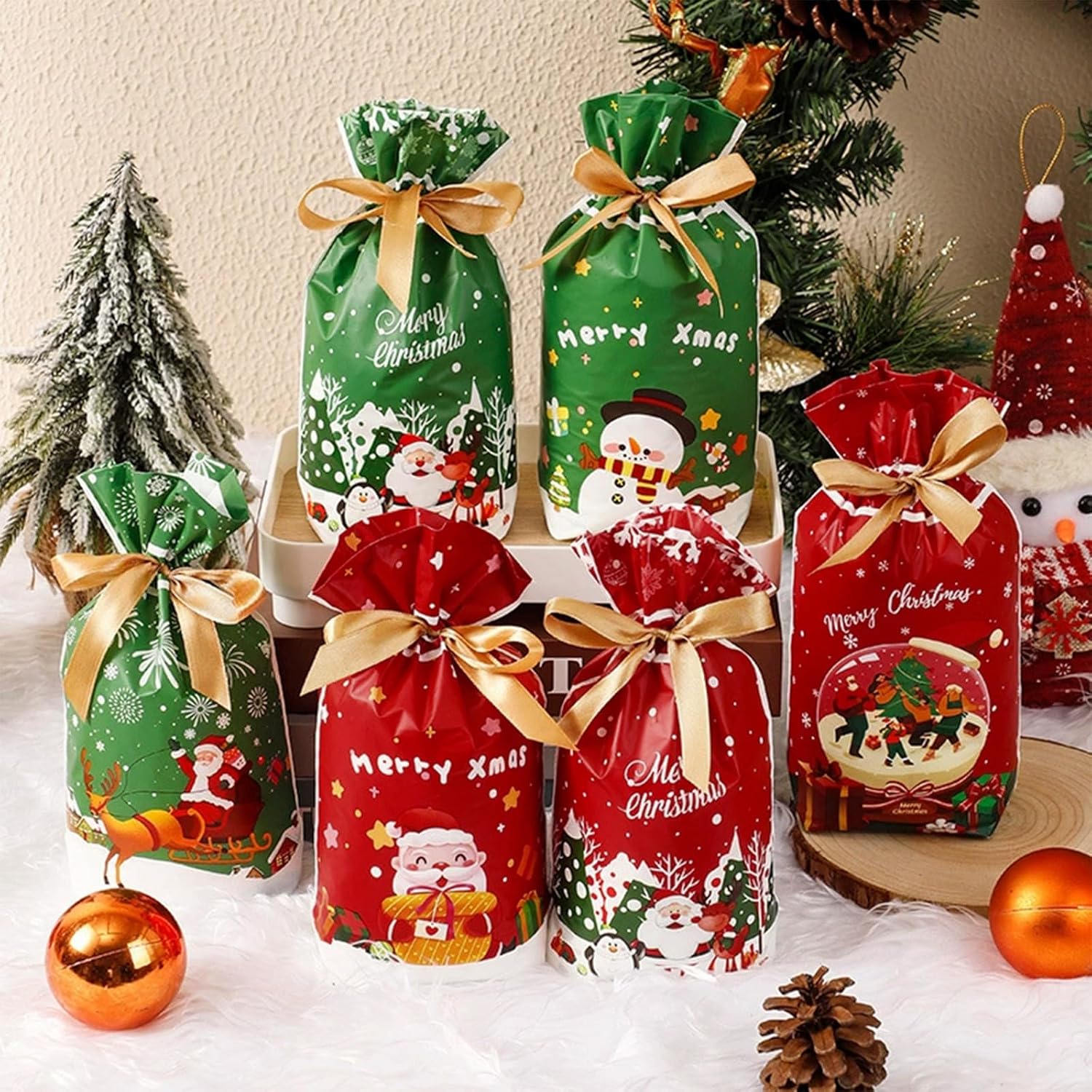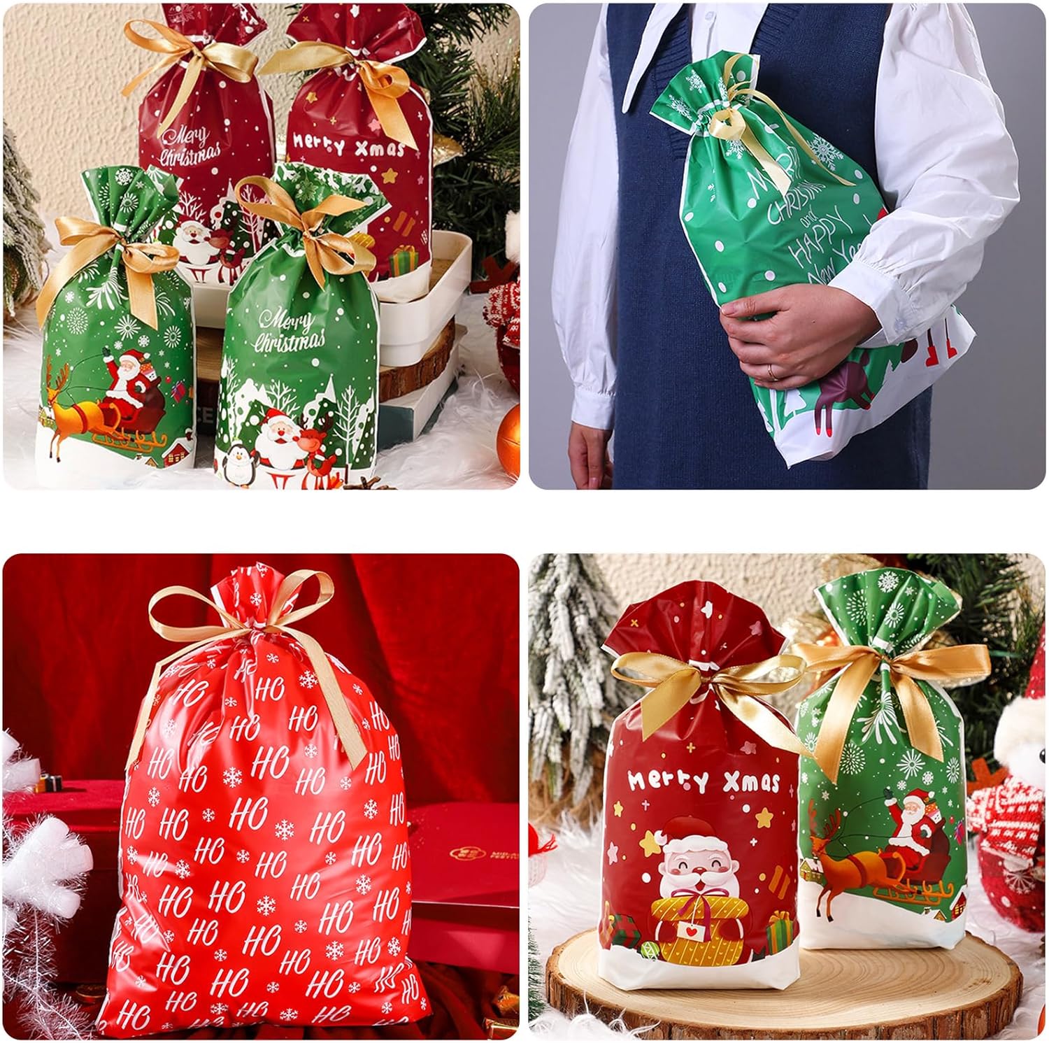 🎄【Ampia gamma di usi】: pacchetto economico per confezionare i regali di Natale. Molto adatta per farcire dolci, cioccolato e biscotti. Possono essere utilizzati come sacchetti per spuntini di Natale, sacchetti regalo per feste, accessori per giochi per feste di Natale, premi per l'aula degli insegnanti, scatole regalo per feste, confezioni regalo di Natale, decorazioni natalizie. 🎁【Materiale della borsa natalizia con coulisse】: la borsa regalo in stile natalizio è realizzata in materiale di alta qualità, leggero e resistente. Offre spazio per tutti i tipi di regali e dolci natalizi. Il sacchetto di caramelle presenta la neve con il motivo di un alce di Babbo Natale e un'atmosfera natalizia. I sacchetti regalo di Natale hanno un design moderno con chiusura a coulisse, possono avvolgere facilmente i regali, i sacchetti di Natale sono sicuri e non tossici, fanno risparmiare tempo e sono convenienti per i bambini. 🤶【Modalità Natale】Ci sono modelli meravigliosi per queste borse natalizie, che sono piene di elementi natalizi, tra cui renne, Babbo Natale, ecc. I colori ricchi e vivaci rendono la borsa più attraente e carina, aiutandoti a creare un'atmosfera divertente alla festa di Natale. Con motivi fantastici, questi sacchetti regalo di Natale sono l'aggiunta perfetta alla tua festa di Natale e perfetti da utilizzare a Natale per rallegrare l'atmosfera. 🧦【Buon servizio clienti】: siamo sempre lì per te. Se avete domande, non esitate a contattarci.