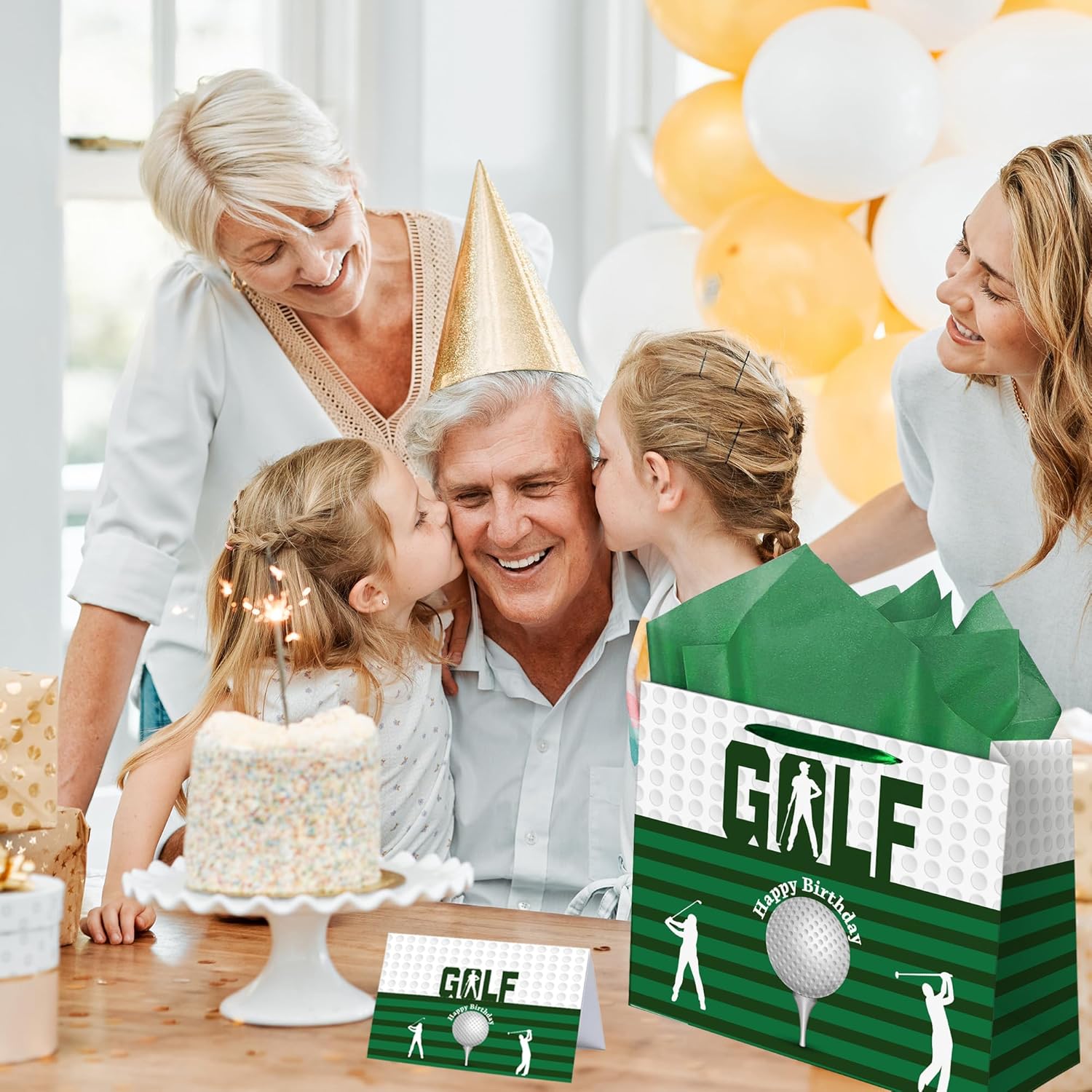 Pacchetto: riceverai 1 sacchetto regalo di compleanno da golf + 3 carte veline verdi + 2 adesivi di compleanno + 1 biglietto di auguri con busta. Soddisfa tutte le tue esigenze di confezione regalo e lascia un'impressione profonda. Stampa UV: la stampa UV rende il colore della borsa più vivido e luminoso, il design unico della borsa fa risaltare i tuoi regali dalla massa. Abbiamo combinato prati verdi e giocatori di golf, rendendolo più adatto alle feste di compleanno di golf per uomini e donne. Materiale: la borsa regalo di compleanno è realizzata in cartone spesso 300 g/m², ha manici verdi e una base rinforzata, rendendo la borsa abbastanza robusta da contenere i tuoi regali di compleanno. La superficie del materiale è rivestita con una pellicola in PVC trasparente, che rende la borsa impermeabile e resistente ai colori. Grandi dimensioni: la dimensione della borsa compleanno è L 33 x P 12,5 x H 26 cm, la dimensione del biglietto d'auguri è L 15 x H 10 cm quando piegato (L 15 x H 20 cm quando aperto), la dimensione dell'adesivo compleanno è H 6,6 x L 4,6 cm e la dimensione della carta velina è L 70 x L 50 cm Utilizzo: perfetto per trasportare e confezionare regali di compleanno come giocattoli, libri, puzzle, giochi da tavolo, materiale artistico, attrezzature sportive e dispositivi elettronici. Porta più gioia alla tua festa ed esprimi pienamente il tuo amore speciale