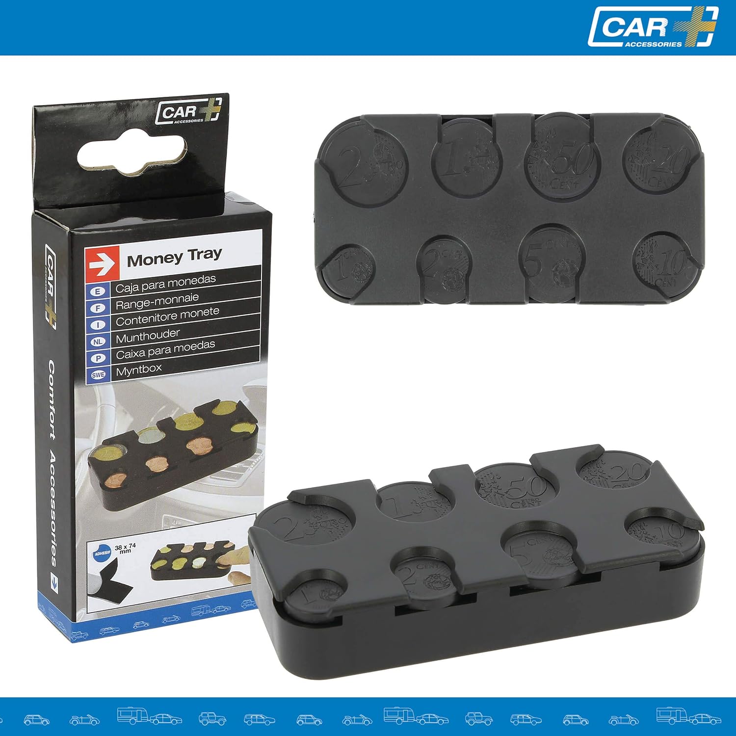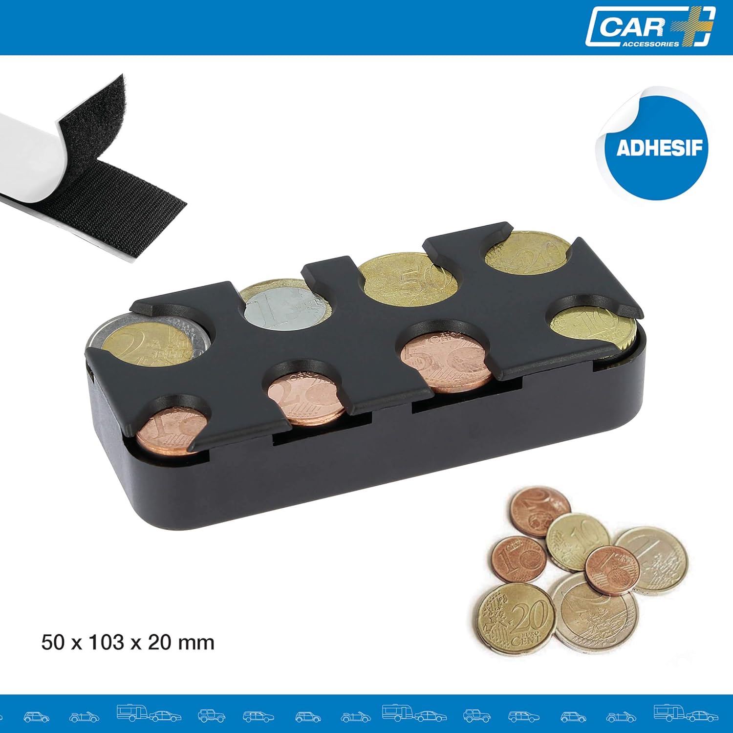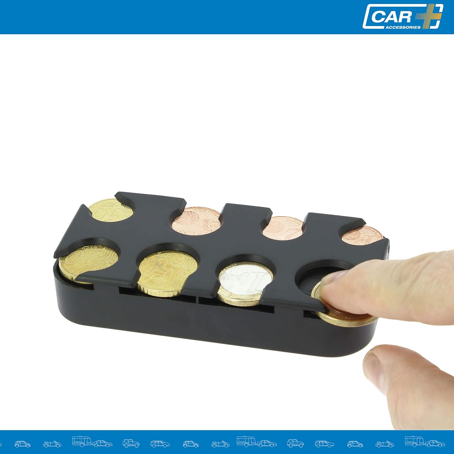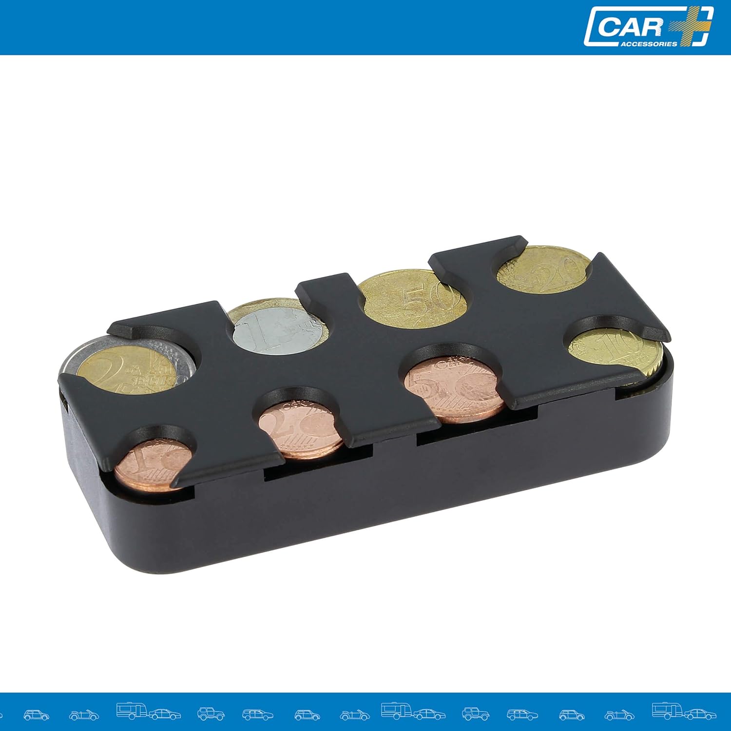 Questo organizer per monete ti consente di conservare e distribuire facilmente fino a 7 monete per scomparto. Include adesivo per un'installazione semplice e conveniente. Realizzato in speciale plastica ABS per resistere all'uso quotidiano. Facile da trasportare e da utilizzare grazie alle sue dimensioni compatte di 5 x 10,3 x 2 cm. Accessorio ideale per evitare di perdere le tue monete ogni giorno. Adatto per conducenti di autobus o taxi, ma anche per l'auto e l'ufficio. CAR+ offre un servizio completo di accessori per migliorare il comfort del tuo veicolo.
