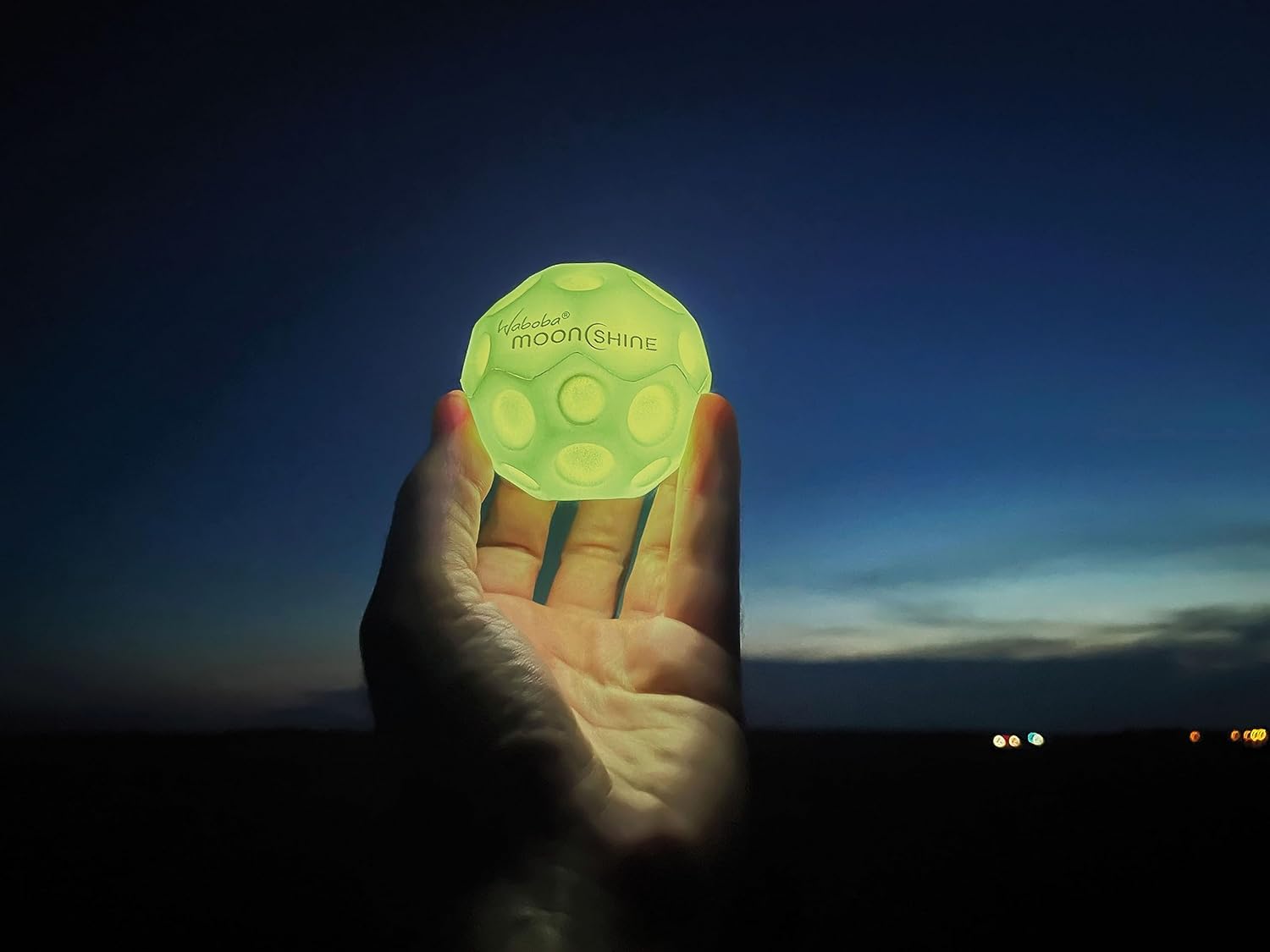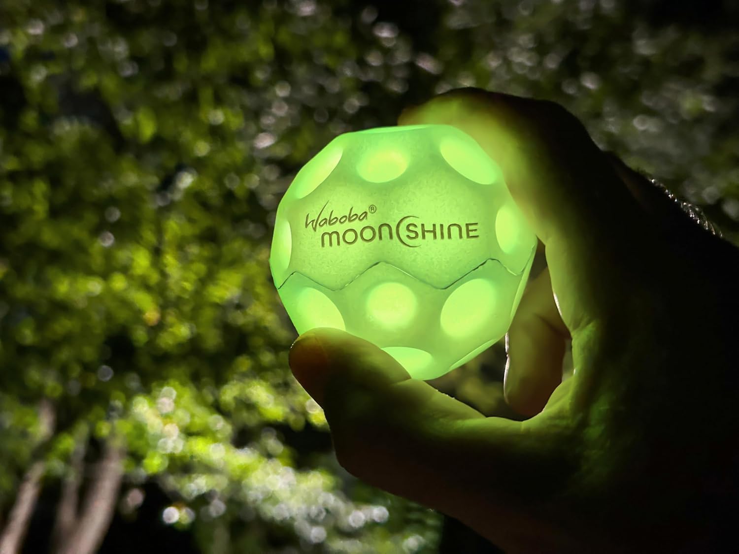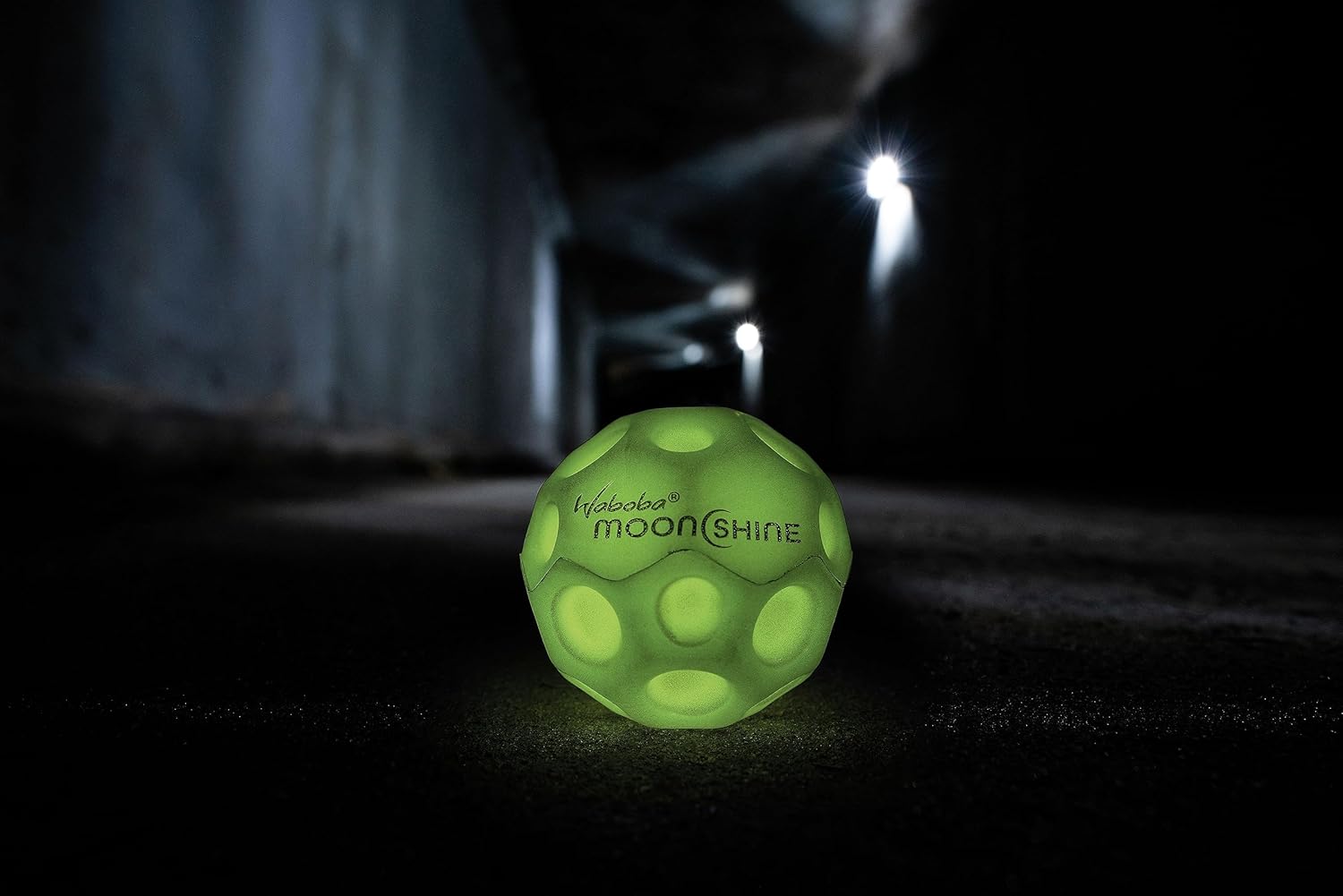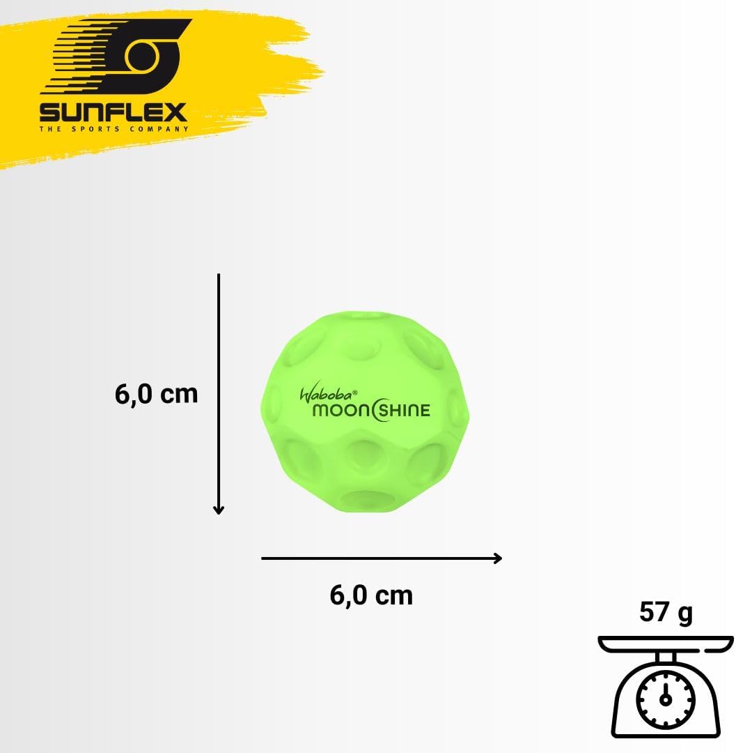 La palla Sunflex x Waboba Moonshine convince per la sua alta qualità e la sua estrema durata. Resiste a infinite svolte e svolte, all'uso sportivo e al gioco indoor e outdoor. All'impatto con il terreno, la palla lampeggia/si illumina per circa 5 secondi. Quindi il chiaro di luna è riproducibile anche di notte e molto facilmente riconoscibile. Il rimbalzo della Sunflex x Waboba Moonshine Ball è estremo. Anche con poco sforzo catapola la palla da terra ad altezze enormi. Il caratteristico suono "plopp" si sente quando la palla colpisce il pavimento. La pallina Moonshine ha un diametro di circa 6 cm e pesa circa 57 grammi. In questo modo la palla si adatta perfettamente alle mani piccole e giace molto facilmente a terra. La palla rimbalzante Sunflex x Waboba Moonshine incoraggia l'esercizio fisico e l'attività all'aperto, sviluppando al contempo la coordinazione, i riflessi e la coordinazione occhio-mano.