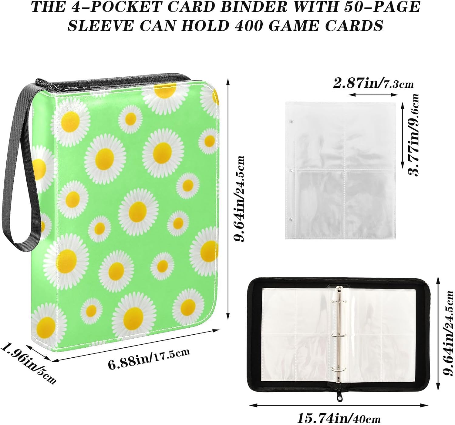 Sunny Daisy - Raccoglitore per carte con 4 tasche, 400 tasche, per carte da gioco, album di carte, per carte da calcio, baseball