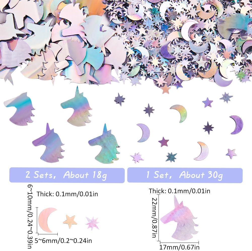 Design unico: Questi coriandoli da tavolo sono disegnati a forma di stella, luna e unicorno, sembrano unici e delicati, con colori vivaci che brillano alla luce, sarebbero belli come decorazione Circa 60-70 g di glitter da tavola: Ci sono circa 60-70 g di glitter da tavola, da 30 a 40 g di glitter stella luna, 30 g di coriandoli di unicorno, sufficienti per soddisfare le tue esigenze di decorazione quotidiane. Dimensioni e contenuto: Coriandoli stella luna: da 6 a 10x5 6x0,1 mm (da 0,24 a 0,39x0,2 a 0,24x0,004 pollici), da 30 a 40 g; Coriandoli unicorno: 22x17x0,1 mm (0,87x0,67x0,004 pollici), 30 g Buon materiale: questi coriandoli a stella sono realizzati in plastica di alta qualità, di consistenza delicata, colore brillante e non facile da sbiadire, puoi usarli a lungo Multiuso: i glitter lunari sono adatti per cucire, incollare o infilare in progetti di artigianato fai-da-te e possono essere utilizzati per ricami, decalcomanie, scrapbooking, biglietti di auguri, decorazioni per feste di Natale, sono spesso utilizzati nella nostra vita quotidiana
