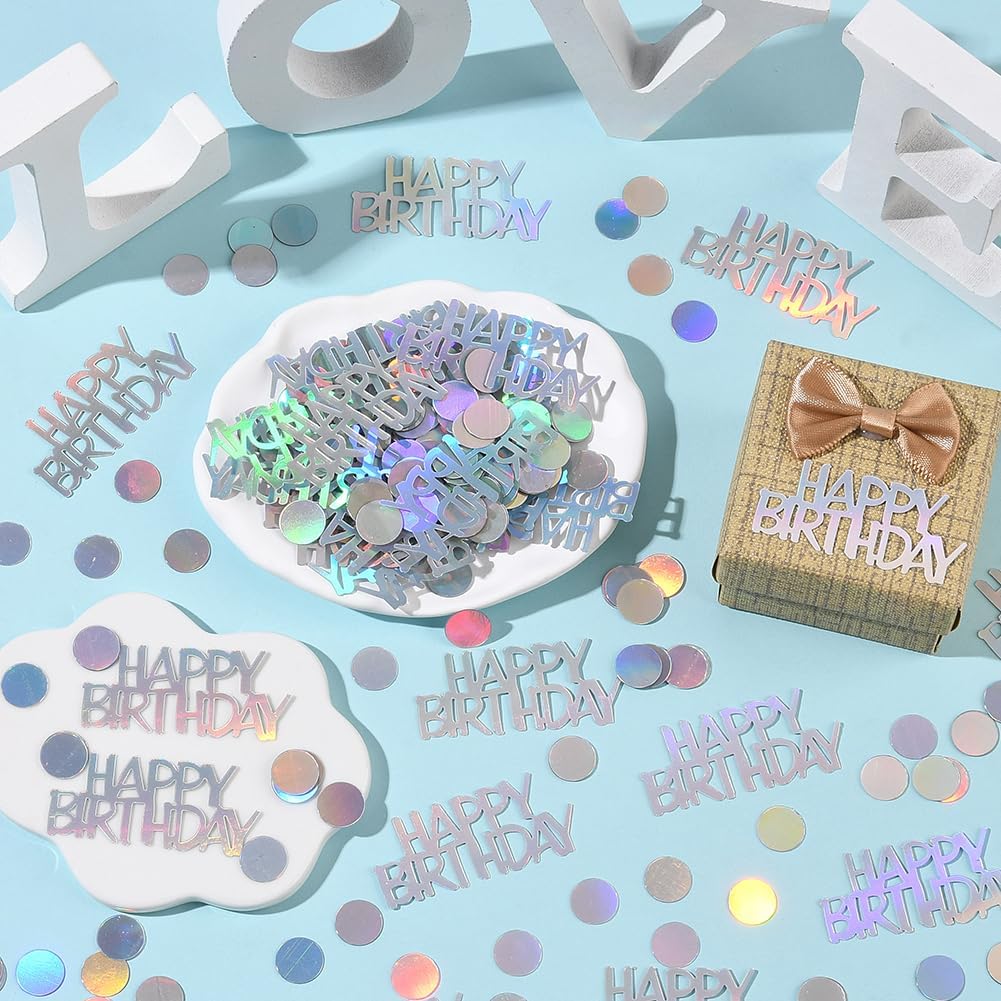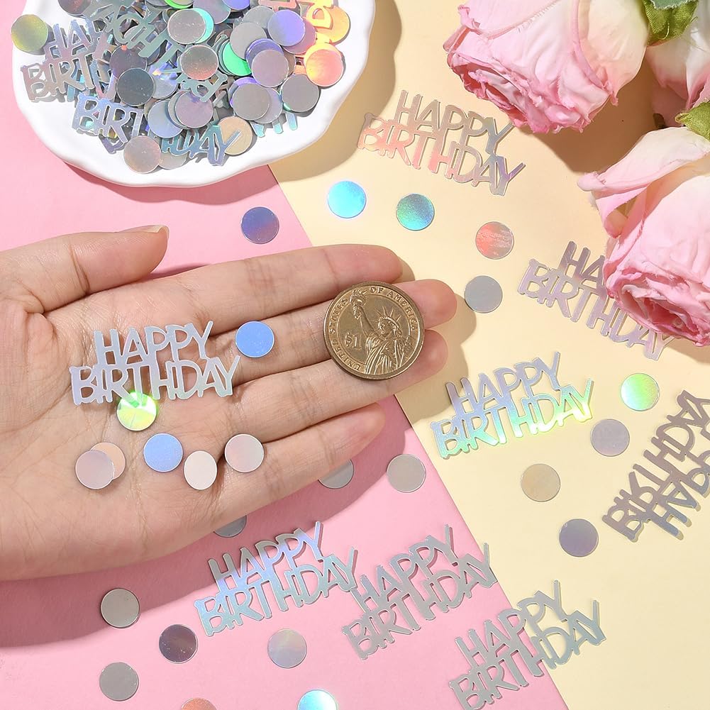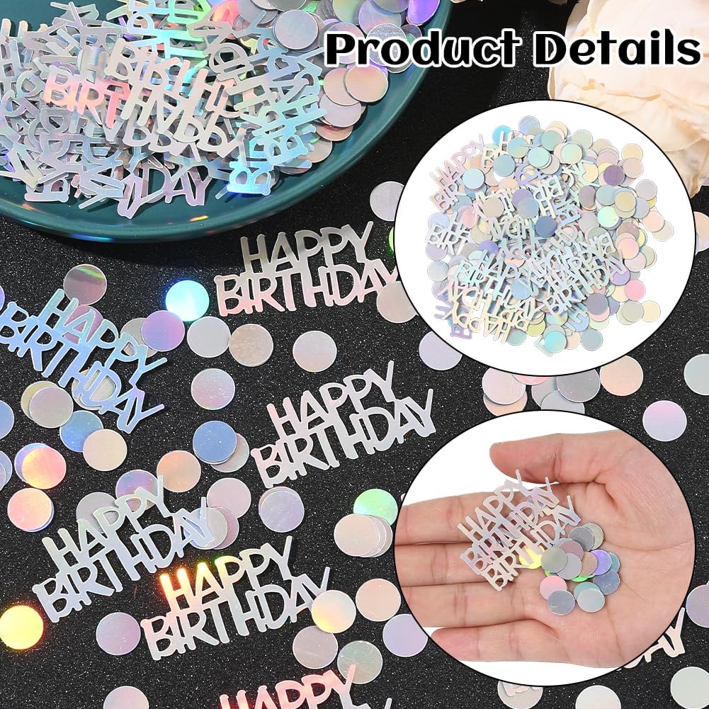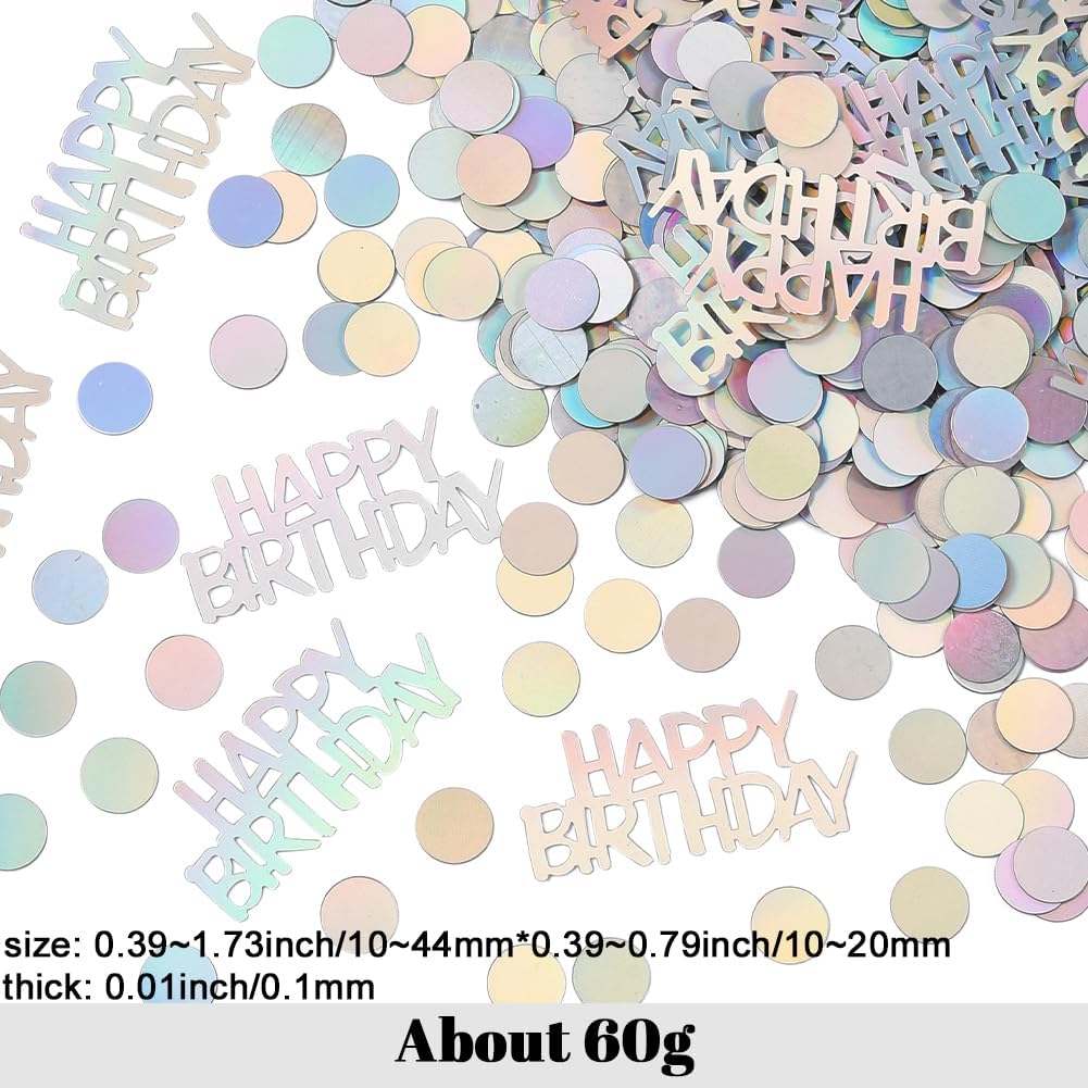Coriandoli di plastica da 60 g: ci sono 2 sacchetti di coriandoli di buon compleanno per un totale di 60 g, in quantità e stile in abbondanza, perfetti per compleanni, riunioni, carnevali e altre occasioni in cui si desiderano decorazioni vivaci. Coriandoli a tema festa: Coriandoli da tavola in forme e colori ricchi, i colori dell'arcobaleno sono vibranti e accattivanti, e le forme miste e i riflessi metallici aggiungono strati e interesse visivo per migliorare le decorazioni della festa. Dimensioni: Paillettes da tavolo per feste: circa da 10 a 44 mm (da 0,39 a 1,73 pollici) di larghezza, da 10 a 20 mm (da 0,39 a 0,79 pollici) di larghezza e lunghezza, 0,1 mm di spessore, 30 g/sacchetto, 2 sacchetti Coriandoli di plastica: i coriandoli di compleanno sono fatti di plastica, leggeri, non facili da strappare, vivaci e colorati, non facili da sbiadire, possono essere riutilizzati Ampia applicazione: queste paillettes da tavolo per feste combinano divertimento e funzionalità e completano espositori per torte, composizioni di palloncini o confezioni regalo, rendendoli ideali per compleanni, carnevali, Natale, Capodanno, feste e riunioni