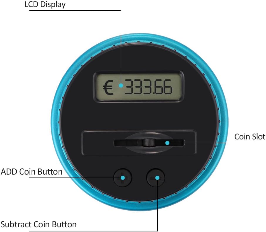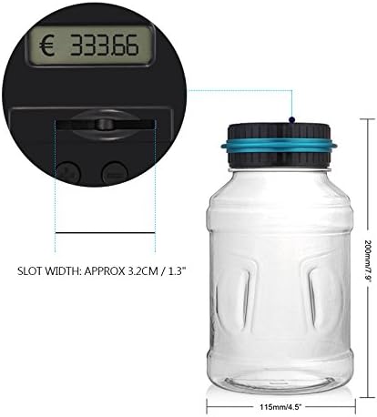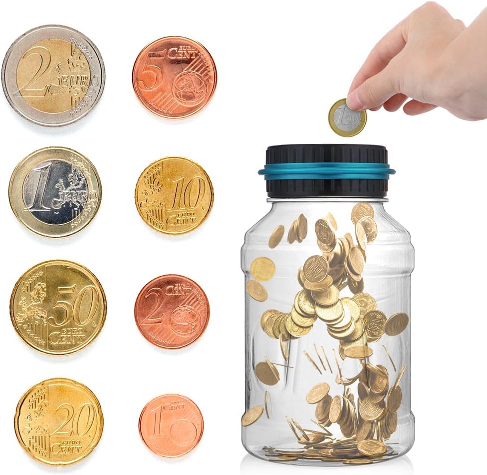 🎁【Schermo LCD per risparmi intelligenti】: il coperchio della gettoniera è dotato di uno schermo LCD che registra i depositi in tempo reale. In questo modo mantieni una visione chiara del tuo obiettivo di risparmio complessivo ed eviti il fastidioso conteggio manuale. Ciò rende il tuo risparmio intelligente e conveniente. 🎁【Grande capacità di 1,8 litri per un uso pratico】: questo salvadanaio digitale offre spazio fino a 1,8 litri e soddisfa quindi un'ampia gamma di esigenze di risparmio. Può contenere fino a 1000 monete ed è ideale per tutti i tipi di monete UE. Se inserisci una moneta ogni giorno, potrai utilizzarla per almeno 2 anni. 🎁【Materiale robusto e di alta qualità】: questo salvadanaio è realizzato in plastica PET di alta qualità, che ne garantisce la robustezza ed evita problemi di rottura. Rispetto ai salvadanai in vetro e ceramica, questa variante è più difficile da rompere ed è particolarmente sicura per i bambini, così puoi risparmiare in tutta sicurezza. 🎁【Educazione finanziaria, un compagno per i bambini】: Il nostro salvadanaio è dotato di simpatici adesivi per stimolare l'interesse dei bambini e insegnare loro come gestire il denaro in modo giocoso. Non è solo un salvadanaio, ma anche uno strumento di educazione finanziaria che insegna ai bambini come gestire le finanze. 🎁【Il regalo perfetto per le vacanze】: questo salvadanaio da banco è un regalo eccellente per i bambini a Capodanno, Natale o compleanni. È alimentato da 2 batterie AAA da 1,5 V (non incluse).