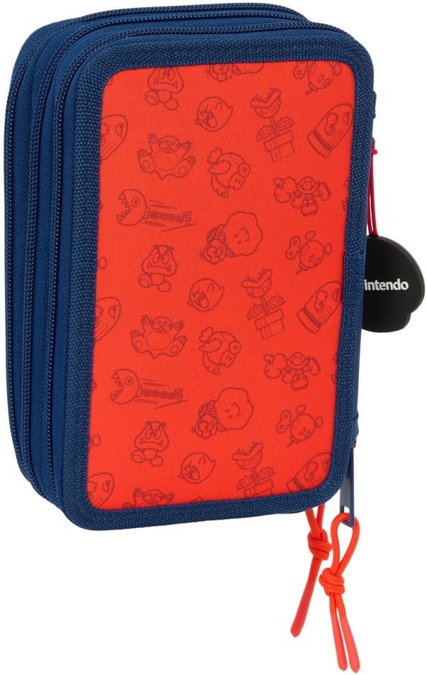 SUPER MARIO TRICK - Astuccio scuola con 37 utili inclusi, astuccio per bambini, ideale per bambini dai 5 ai 14 anni, comodo e versatile, qualità e resistenza, 12,5 x 5,5 x 19,5 cm, blu scuro/rosso, M,