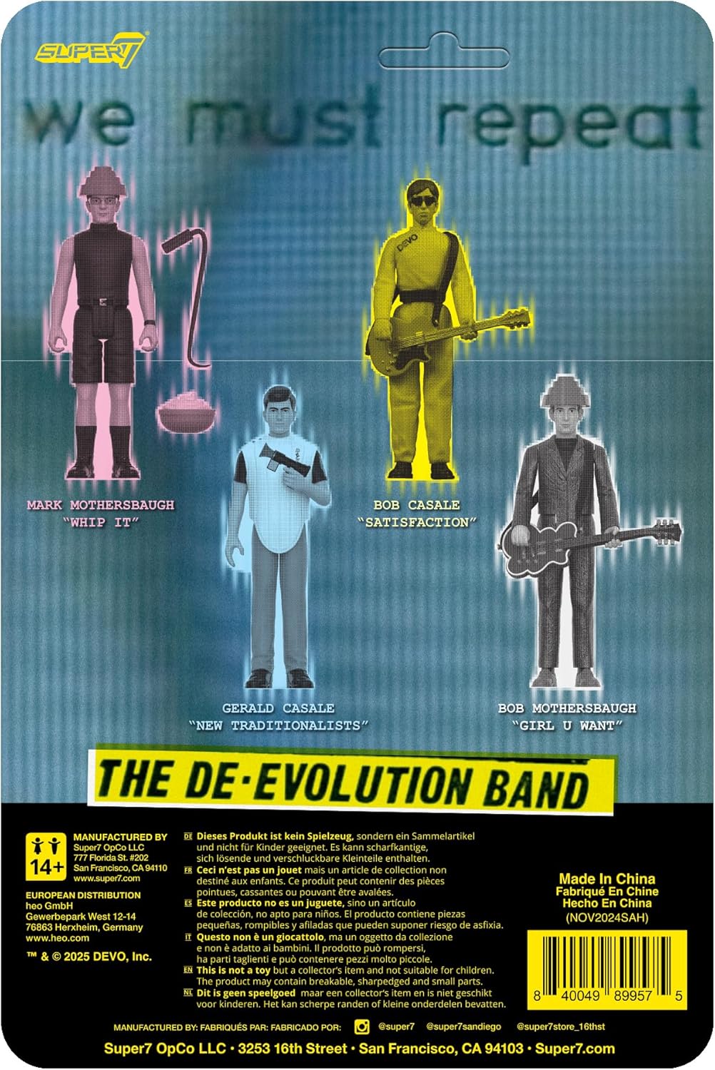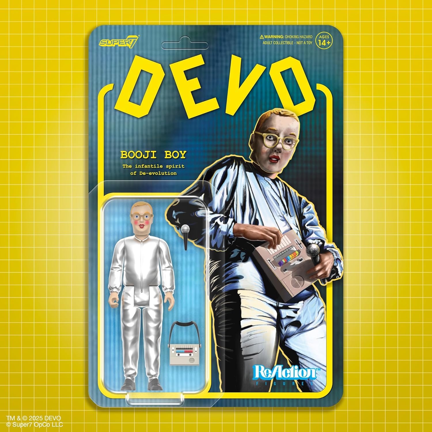 Ispirato al cortometraggio di Devo del 1976, La verità sulla de-evoluzione La figura è in scala di 9,5 cm con cinque punti di articolazione Include accessori per microfono e dispositivo sintetizzatore e viene confezionato su un retro in carta a colori vescica Il regalo perfetto per ogni fan di Devo, colleziona l'intera gamma di leggende musicali ReAction Figure di Super7! GIOCATTOLI E FIGURE DA COLLEZIONE: Da TMNT action figure e G.I. Joe skateboard deck per Power Rangers t-shirt e giocattoli SpongeBob, Super7 rende i perfetti oggetti da collezione retrò, giocattoli vintage e regali nostalgia per fanatici e collezionisti della cultura pop