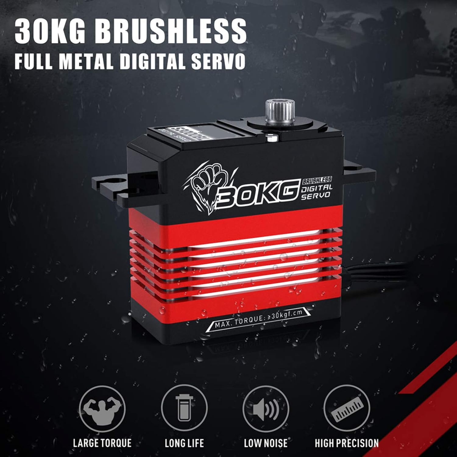 Potente servo digitale da 30 kg: progettato per 1/8 di auto, barche e robot, offrendo controllo e torsione per applicazioni esigenti. Motore senza spazzole: efficiente, tranquillo con basso consumo, ideale per uso esteso senza surriscaldamento. Durabilmente ingranaggio in metallo: resiste a carichi e mantiene l'accuratezza, essenziale per le prestazioni -term. Arms servo versatili: viene fornito con 5 diversi servi armi per soddisfare una varietà di esigenze e configurazioni di configurazione. Installazione: progettata per l'installazione semplice e rapida, rendendolo un gioco da ragazzi da integrare nel tuo.