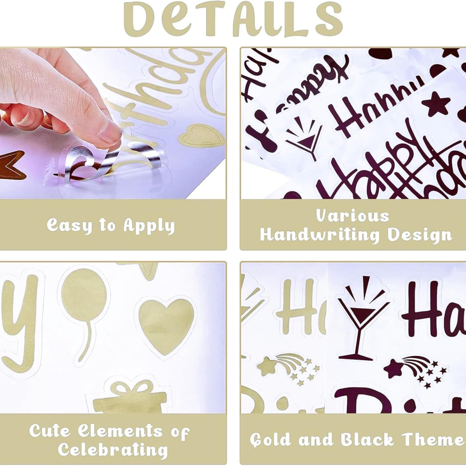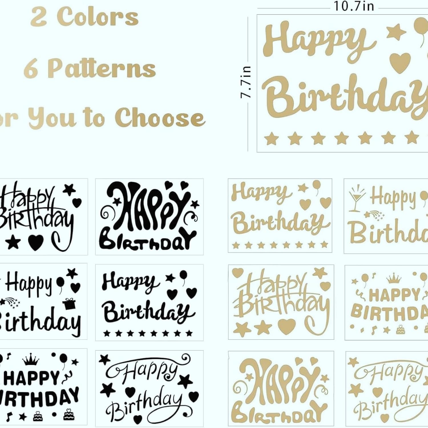 Selezione completa: questo set contiene 12 fogli di adesivi di compleanno per giovani con palloncini buon compleanno Bobo, disponibili in 6 diversi modelli e 2 colori (nero e oro), perfetti per condividere e decorare qualsiasi festa. Materiali di qualità: realizzati in PVC e carta di alta qualità, questi adesivi sono durevoli, non tossici, non sbiadiscono e difficili da strappare. Hanno un'ottima adesione e mantengono a lungo il loro nuovo aspetto. Design raffinato: con gli auguri di compleanno stampati in più caratteri e disegni come stelle, palloncini, champagne, cuori e torte, questi adesivi di compleanno renderanno la tua festa unica e memorabile. Facilità d'uso: questi adesivi sono facili da usare; Basta staccare il disegno e incollarlo su un palloncino gonfiato per ottenere un palloncino di compleanno originale. Puoi anche mescolare e abbinare gli stili per mostrare la tua creatività. Uso versatile: perfetto per feste di compleanno, baby shower, decorazioni per interni ed esterni, feste, riunioni di famiglia, attività scolastiche e altro ancora. Oltre ad abbellire i palloncini Bobo, questi adesivi possono essere attaccati su porte, pareti, finestre, vetri o qualsiasi altro luogo che desideri decorare per aggiungere più gioia alla tua festa.