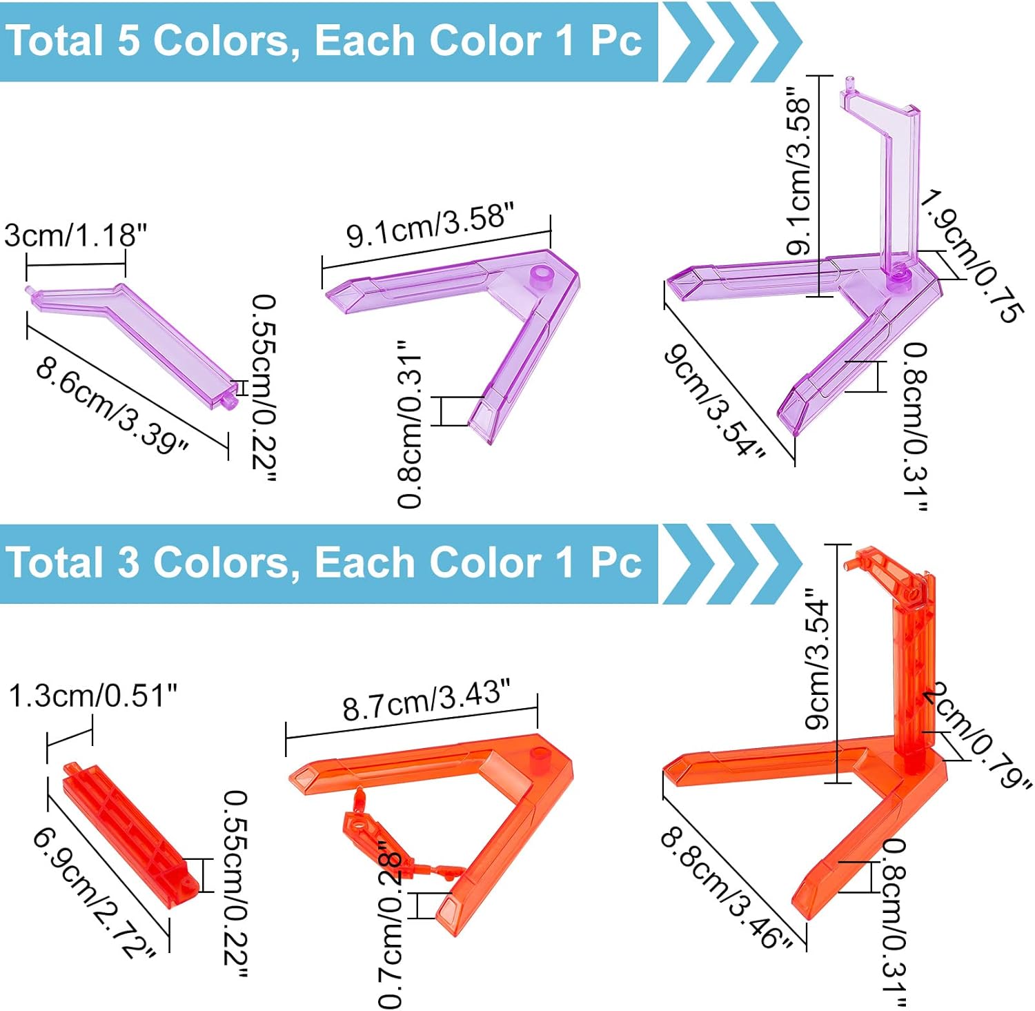 8 stili: otterrai 8 supporti per base d'azione. Questi supporti per figure possono essere assemblati liberamente in diverse forme: combattimento di una persona o due persone o altre figure d'azione presenti. Stabilità della base sicura: le connessioni sono strette e facili da montare, con una base sicura può collegare più serie di pilastri, perfetta riproduzione delle scene di combattimento. Materiale premium: questi supporti per action figure sono realizzati in materiale plastico di alta qualità, strettamente connesso, forte e durevole. Variety Fit: non importa quali personaggi, puoi facilmente usare questa base per fare varie attività. Puoi utilizzare più combinazioni per creare una varietà di scene classiche. Ideale per display: adatto per SD, BB, 1/100, 1/144 Gundam, Figure di stoffa di San, eccetera. Il supporto in plastica può adattarsi a qualsiasi stile di bambola, è leggero e portatile che puoi spostarlo facilmente.