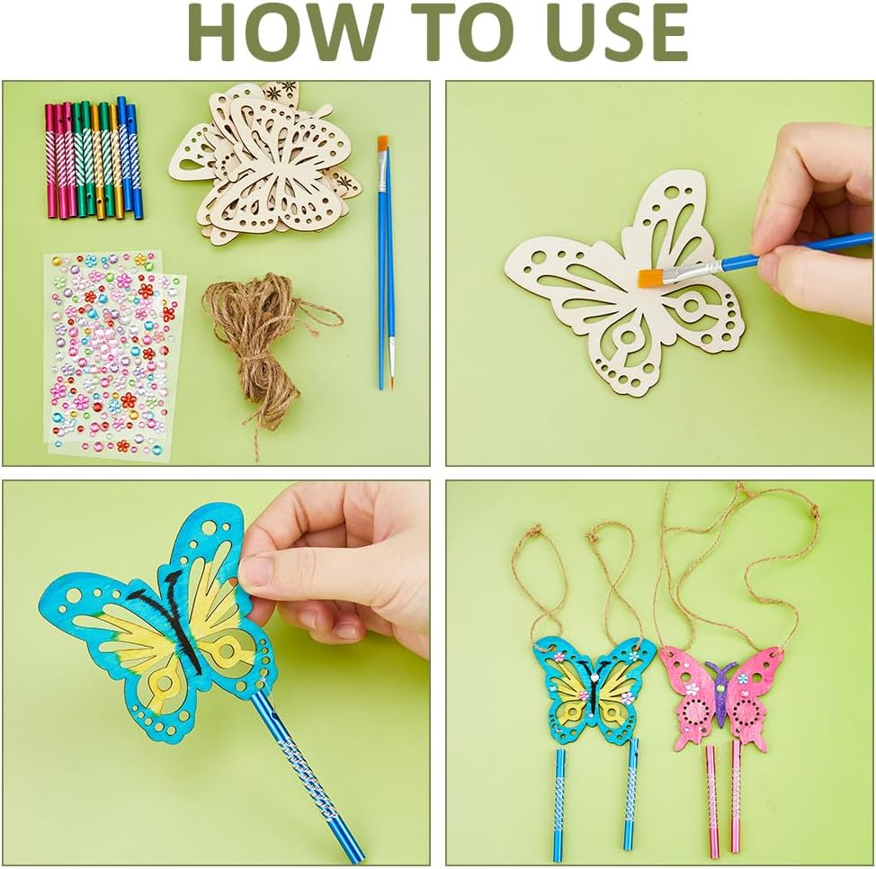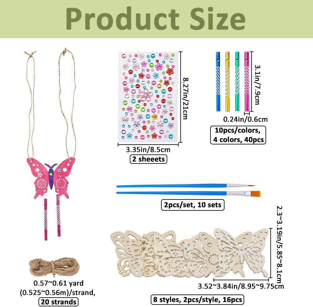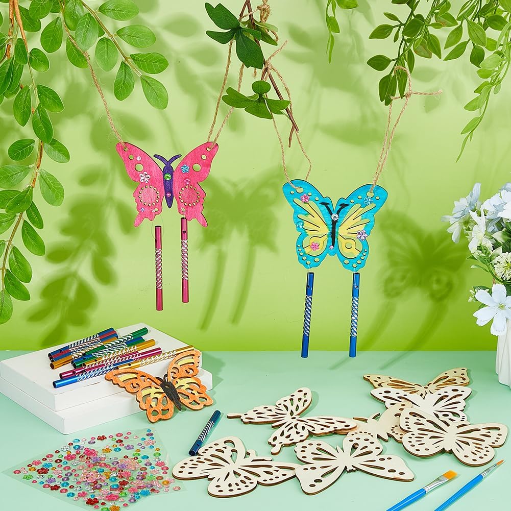 40 pezzi: questo set include tutto il necessario per creare scacciapensieri 3D con ciondoli in legno di diverse dimensioni, strass colorati in resina, ciondoli a tubo in alluminio, pennello e corda di iuta. Varietà di ciondoli in legno: con 8 diverse dimensioni di farfalle da 58,5 mm a 81 mm, i bambini possono esprimere le loro idee artistiche attraverso disegni personalizzati. Semplici strumenti di pittura: i pennelli appositamente progettati con microdettagli consentono di dipingere motivi in filigrana e aiutare i bambini a realizzare le loro idee creative. Ideale per le attività di gruppo: perfetto per classi scolastiche, campi vacanze o feste di compleanno; incoraggia il lavoro di squadra e le abilità motorie attraverso il fai da te insieme. Giocattolo educativo creativo: un regalo pedagogicamente prezioso che stimola l'immaginazione e trasmette orgoglio ai campanelli eolici fatti in casa.