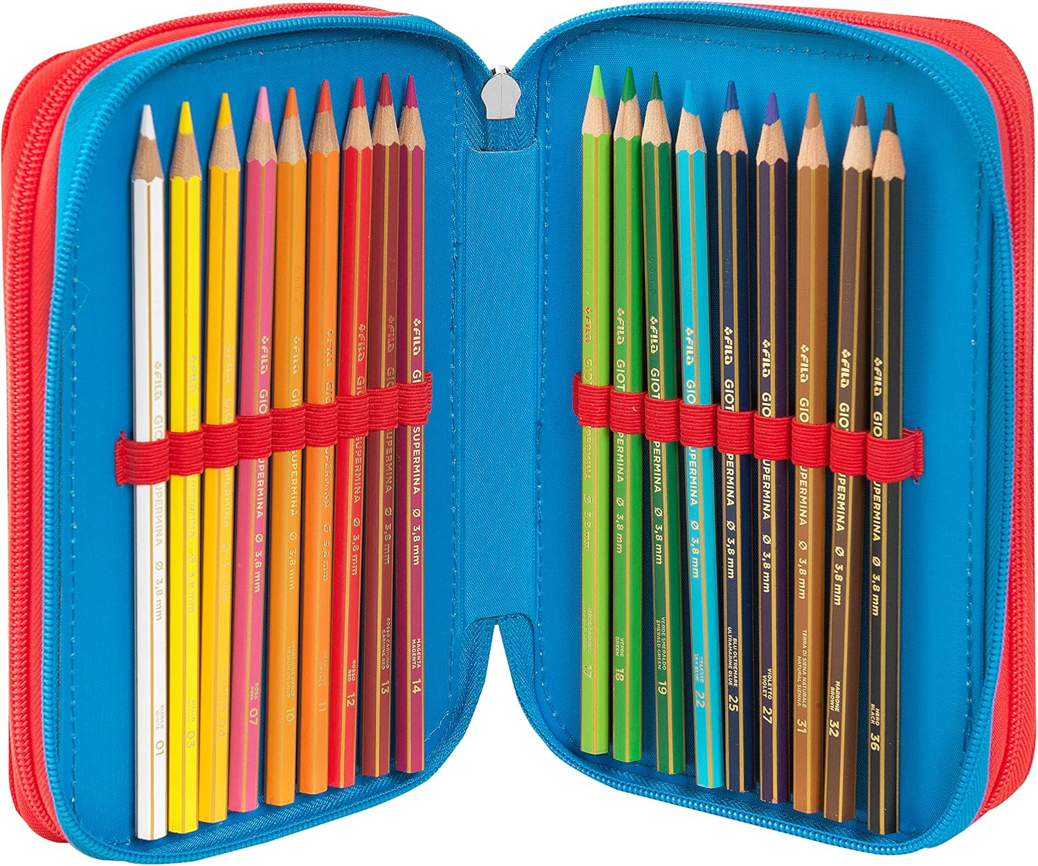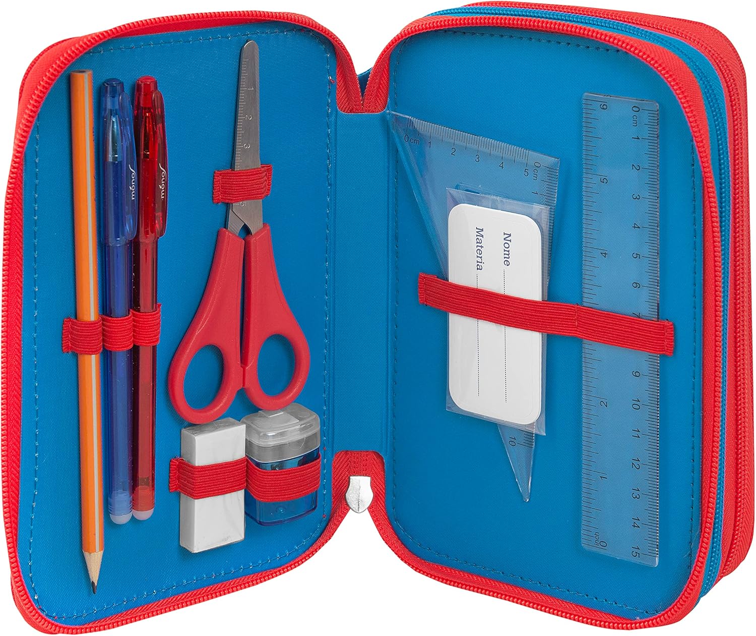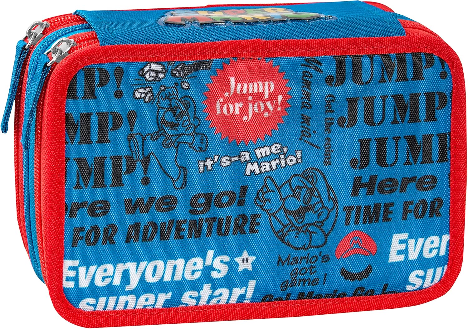 SUPERMARIO - Astuccio 3 Scomparti Bambina e Bambino, con Interno Organizzato, Tasca a Zip e Organizer Portapenne - Astuccio Scuola Media e Elementare in Tessuto, 20x13x7h cm