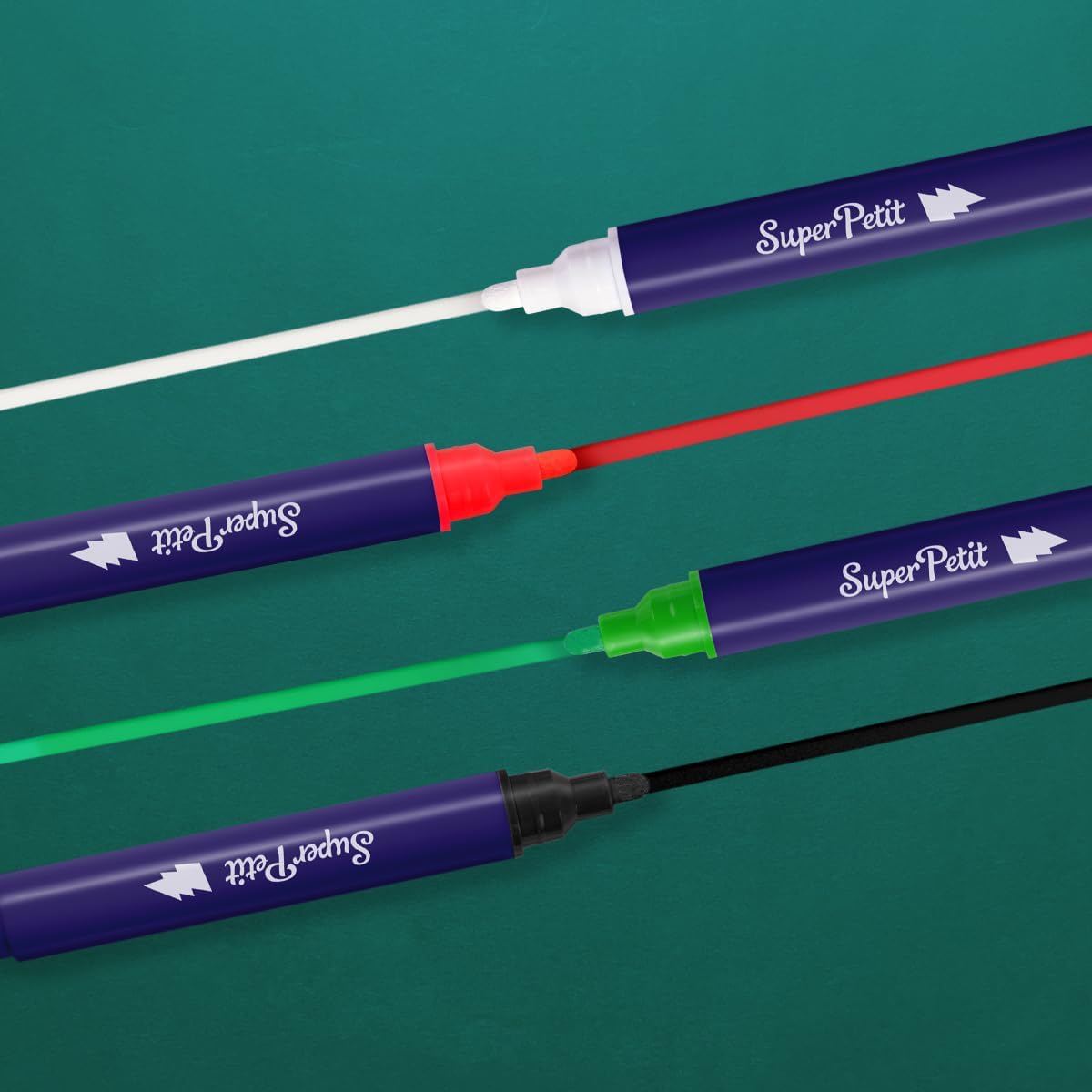 "Invita la magia del Natale a casa decorando i vetri della famiglia! 4 pennarelli a colori natalizi, cancellabili per colorare all'infinito. Feltri che si asciugano molto velocemente e lavabili con un panno asciutto o umido. Questi pennarelli sono adatti per le mani piccole. Sono forniti 24 motivi da spostarsi a piacimento, o lasciare che la tua creatività si esprima Un arredamento festivo: personalizzare i vetri e gli specchi della tua casa per le feste di fine anno non è mai stato così divertente e facile grazie ai 24 motivi da riprodurre con i nostri fantastici pennarelli Attività giocoso e creativo: ideale per divertirsi piccoli e più grandi stimolando la loro immaginazione. Da fare in autonomia o in famiglia! FACILE & PRATICO: Inchiostro all'acqua inodore che si asciuga molto velocemente e lavabile a secco o in acqua. La sua punta rotonda 3 minuti permette di creare e decorare o scrivere un tratto preciso. Colori esclusivi: 4 colori esclusivi che daranno vita alle tue opere d'arte. Esprimi la tua creatività! PRODOTTO RESPONSABILE: Membro dell'1% for the Planet, restituiamo l'1% di tutte le nostre vendite ad associazioni impegnate nella difesa dell'ambiente. MARCA FRANCESEE: Creato nel 2015 da 2 sorelle, SuperPetit si ispira ai nostri figli per sviluppare prodotti innovativi e sostenibili.