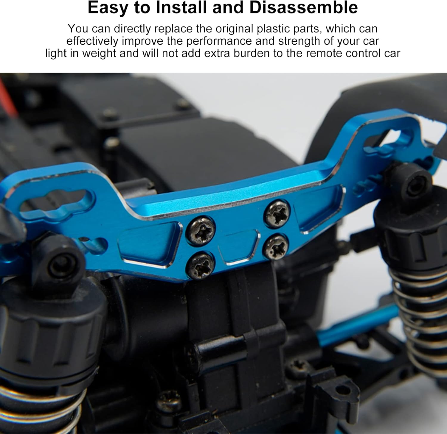 Regolazione flessibile: l'innovativo design poroso consente agli utenti di regolare liberamente la posizione e l'angolazione della staffa della torre ammortizzante in base alle reali esigenze e realizzare impostazioni personalizzate. Aggiornamento conveniente: il processo di installazione e smontaggio è semplice e veloce e le parti in plastica originali possono essere sostituite direttamente, il che migliora significativamente le prestazioni e la resistenza dell'auto RC, rendendo l'aggiornamento facile ed efficiente. Alluminio eccellente: l'uso di materiale in lega di alluminio migliora la durata del prodotto, la forte resistenza all'usura, l'elevata resistenza e gli conferisce un aspetto più raffinato. Guida fluida: fornisce un eccellente effetto di assorbimento degli urti, allevia efficacemente le vibrazioni causate dai dossi stradali e offre un'esperienza di guida dell'auto con telecomando più stabile e confortevole. Ampia compatibilità: la torre dell'ammortizzatore posteriore in metallo è progettata per essere leggera, il che non aumenta il carico di peso aggiuntivo dell'auto RC ed è perfettamente adattata all'auto RC Tamiya 1/10 XV01 per migliorare le prestazioni complessive.