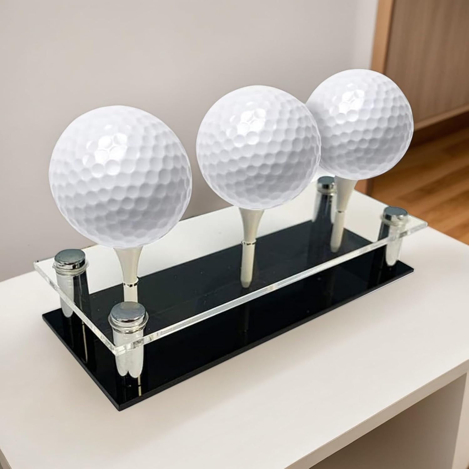 Manutenzione Immediata: Progettato per cura senza sforzo, questo espositore per palline da golf permette una pulizia rapida con panno morbido, garantendo condizioni eccellenti e un'esperienza di configurazione intuitiva Aspetto Sofisticato: Caratterizzato da design a base nera elegante e finitura di stile, la struttura robusta in acrilico e metgarantisce un'estetica senza che migliora qualsiasi ambiente domestico o espositivo Presentazione Stile Golf: Unisce perfettamente funzionalità ed eleganza, abbellisce gli spazi con estetica golfistica aggiungendo fascino e sofisticatezza, amato da tutti i golfisti Stand a Tema Golf: Armoniosa di forma e funzione attraverso colonne metalliche solide e posizionamento su perni, offre esposizione stabile ed elegante per palline da golf con richiami tematici sport Funzionale ed Elegante: Ottimo come regalo per i di golf, aggiunge un tocco di fascino a qualsiasi stanza offrendo possibilità di disposizione flessibile in vari ambienti.