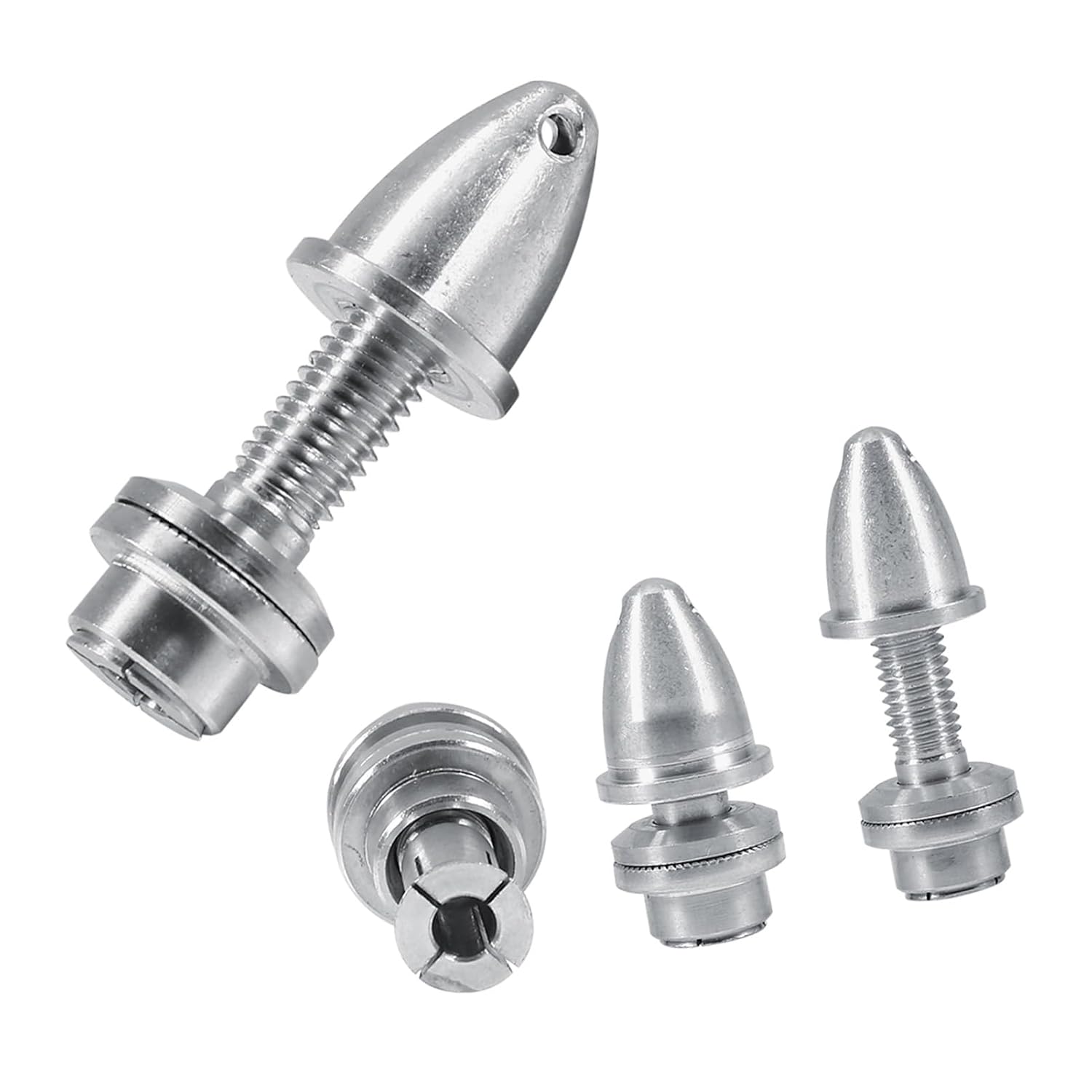Adattabilità: questo prodotto è progettato per funzionare perfettamente con vari motori brushless RC e controller di velocità migliorando la tua esperienza RC Durabilità: il materiale in alluminio garantisce longevità e resilienza rendendolo una scelta per i tuoi progetti RC Precisione: prodotto con lavorazione delicata per garantire l'adattamento alle esigenze ' Versatilità: viene fornito con 5 adattatori per eliche adatti vasta gamma di applicazioni in dispositivi di controllo remoto Dimensione: il diametro del foro 'asse del motore è di 5,0 mm e il diametro 'albero è di 8 mm, garantendo la compatibilità per la tua specifica configurazione RC