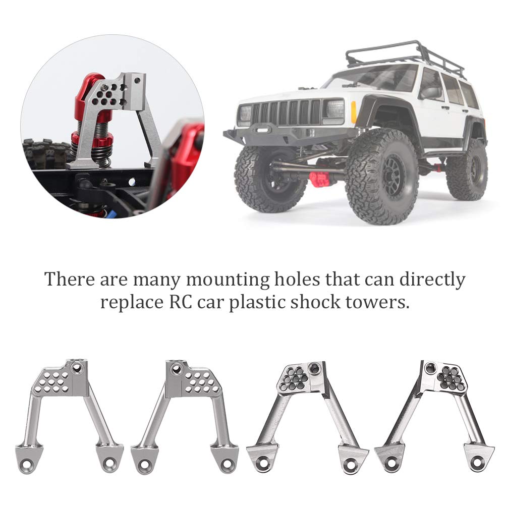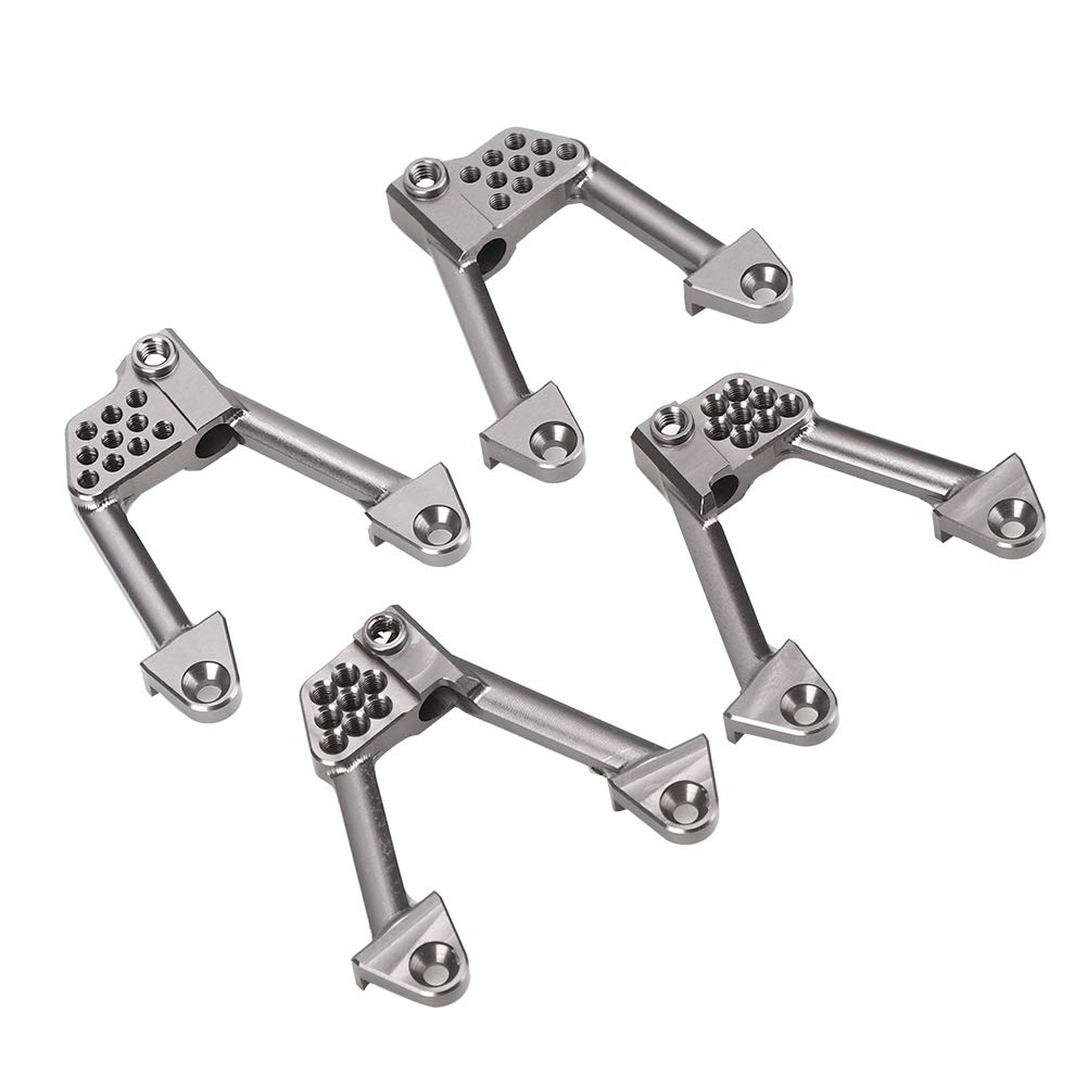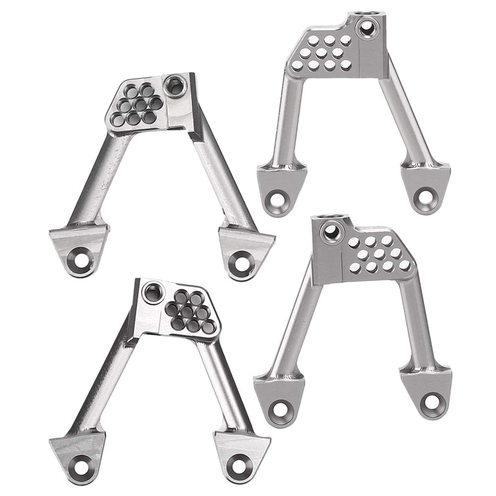 [Materiale premium e durata] Realizzato in lega di alluminio di alta qualità Questo supporto per lo smoker RC garantisce una resistenza e una longevità eccezionali. La finitura superficiale liscia migliora la resistenza all'usura e impedisce di renderlo ideale per le avventure robuste fuori strada. La sua costruzione leggera ma robusta offre prestazioni affidabili in tutte le condizioni. [Easy Installation & Versatility] Progettato per l'integrazione senza soluzione di continuità Questo supporto per shock è dotato di più fori di montaggio che gli consentono di sostituire le torri di shock in plastica senza sforzo. L'ingegneria precisa garantisce un adattamento per i modelli assiali SCX10 II 90046 e 90047. Non sono richiesti strumenti complicati garantire un aggiornamento senza problemi per l'auto RC. [STABILITÀ E PRESTAZIONI MIGLIORATE] Progettato per gli appassionati di RC professionisti, questo supporto ammortizzatore offre stabilità e controllo superiori. La struttura rigida in lega di alluminio riduce al minimo la flessibilità durante le manovre ad alto stress, migliorando la manovrabilità e la durata della tua auto. per gare agonistiche o guida su trail pesanti. [COMPATIBILITÀ E ADESIONE] Progettato specificatamente per le auto Axial SCX10 II RC inclusi i modelli 90046 e 90047, questo accessorio garantisce un adattamento preciso senza modifiche. L'elegante finitura argento completa l'estetica del tuo veicolo mentre il design leggero (circa 58 g) mantiene equilibrio e prestazioni ottimali. [Kit di aggiornamento completo] Questo pacchetto include 4 supporti per smorzamenti di shock 1 e 1 sacchetto di viti che forniscono tutto il necessario per un aggiornamento completo. La produzione professionale garantisce un'elevata affidabilità che lo rende un must per gravi hobbisti RC che cercano prestazioni di alto livello.