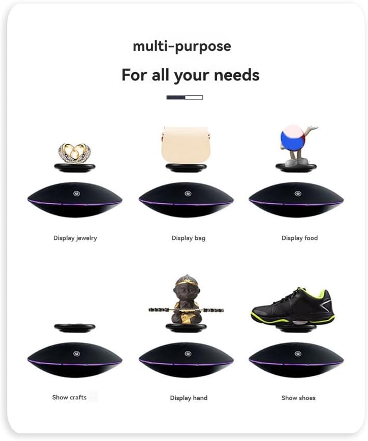 Tecnologia avanzata di levitazione magnetica: scopri un display all'avanguardia con il nostro supporto a levitazione magnetica che sostiene e ruota sforzo oggetti fino a 300 grammi a 'aria. Rotazione a 360°: mostra i tuoi oggetti da collezione, gioielli o qualsiasi altro oggetto da tutte le angolazioni con la funzione di rotazione e a 360°. Idea regalo : cerchi un ? Questo espositore levitante è perfetto Per gli appassionati di tecnologia, i collezionisti o chiunque esporre i propri tesori con stile.