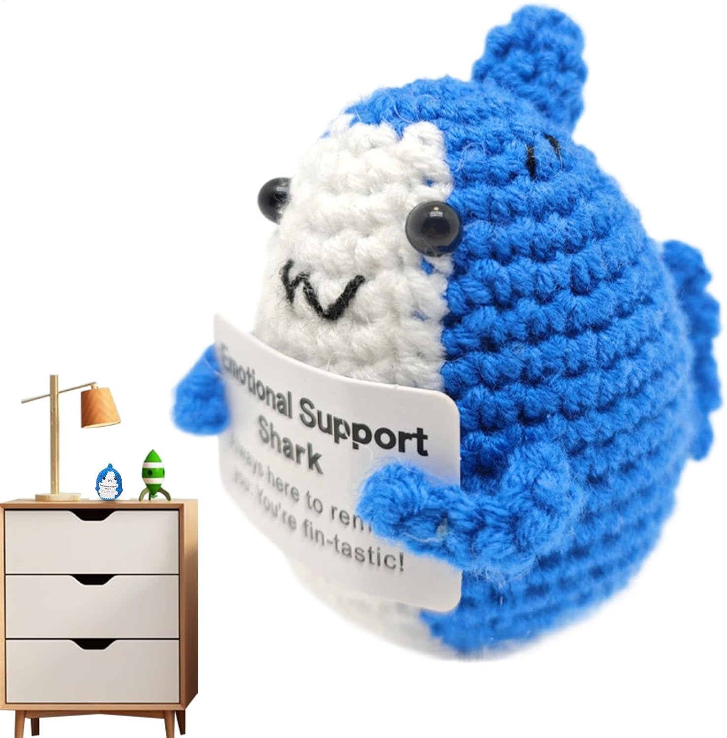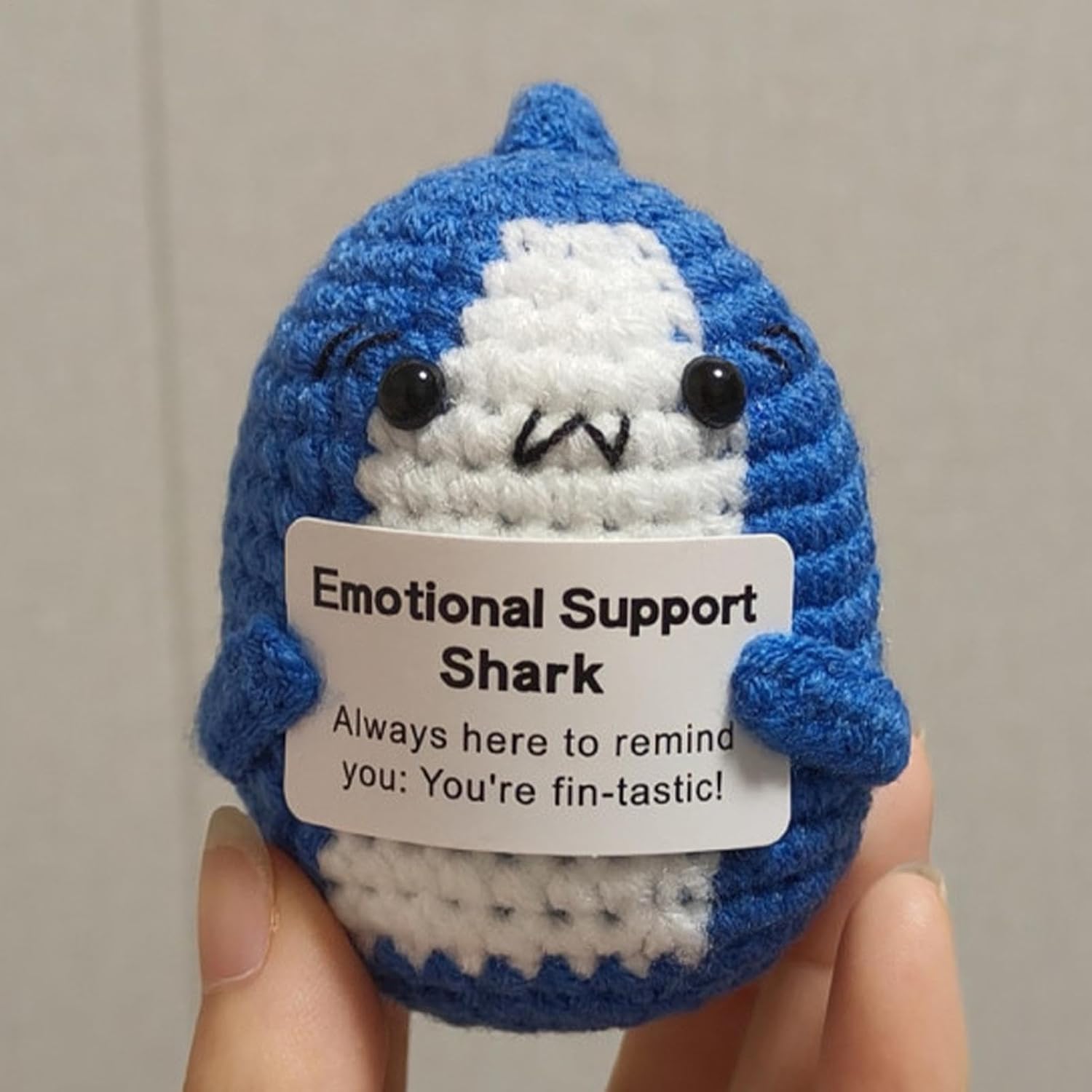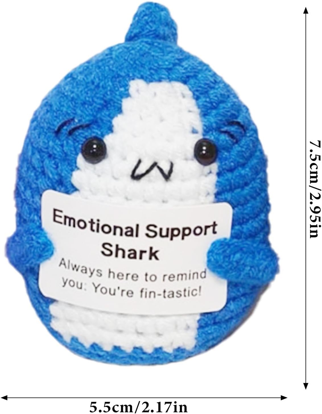 Buona durata: realizzato con filato resistente all'usura e lavorazione artigianale tessuta a mano, questo squalo di supporto emotivo offre una buona durata e robustezza. Il suo design intricato assicura che non cada o sbiadisca facilmente. Simpatico compagno di squalo: realizzato a forma di squalo simulato, questo adorabile peluche contiene una carta, con l'aspetto di uno squalo carino, ottima per il comfort e il supporto emotivo. Carta di affermazione ispiratrice: aumenta il tuo morale con il nostro squalo di supporto emotivo che viene fornito con una carta motivazionale con parole incoraggianti. È uno strumento calmante per alleviare lo stress che ispira positività, migliora l'amor proprio e migliora il tuo umore, indipendentemente dal tuo stato emotivo. Arredamento versatile: comodo da posizionare in più posti, come il tavolo del soggiorno, la scrivania, il tavolo del dormitorio o la stanza dei bambini. Questo squalo funge da decorazione versatile Trasporta senza peso: questo squalo di supporto emotivo leggero e portatile agisce come un compagno calmante che fornisce stabilità emotiva ogni volta che ne hai bisogno