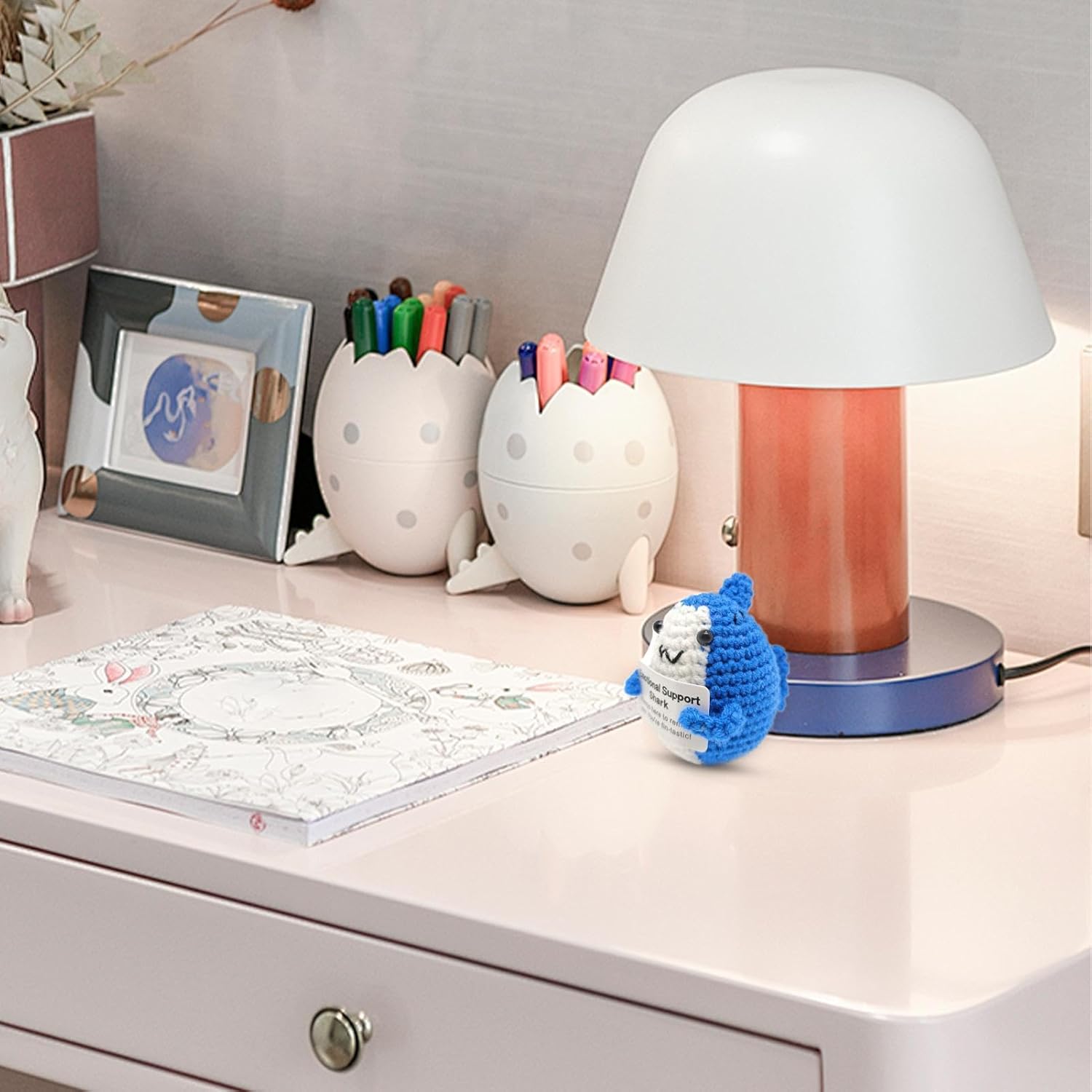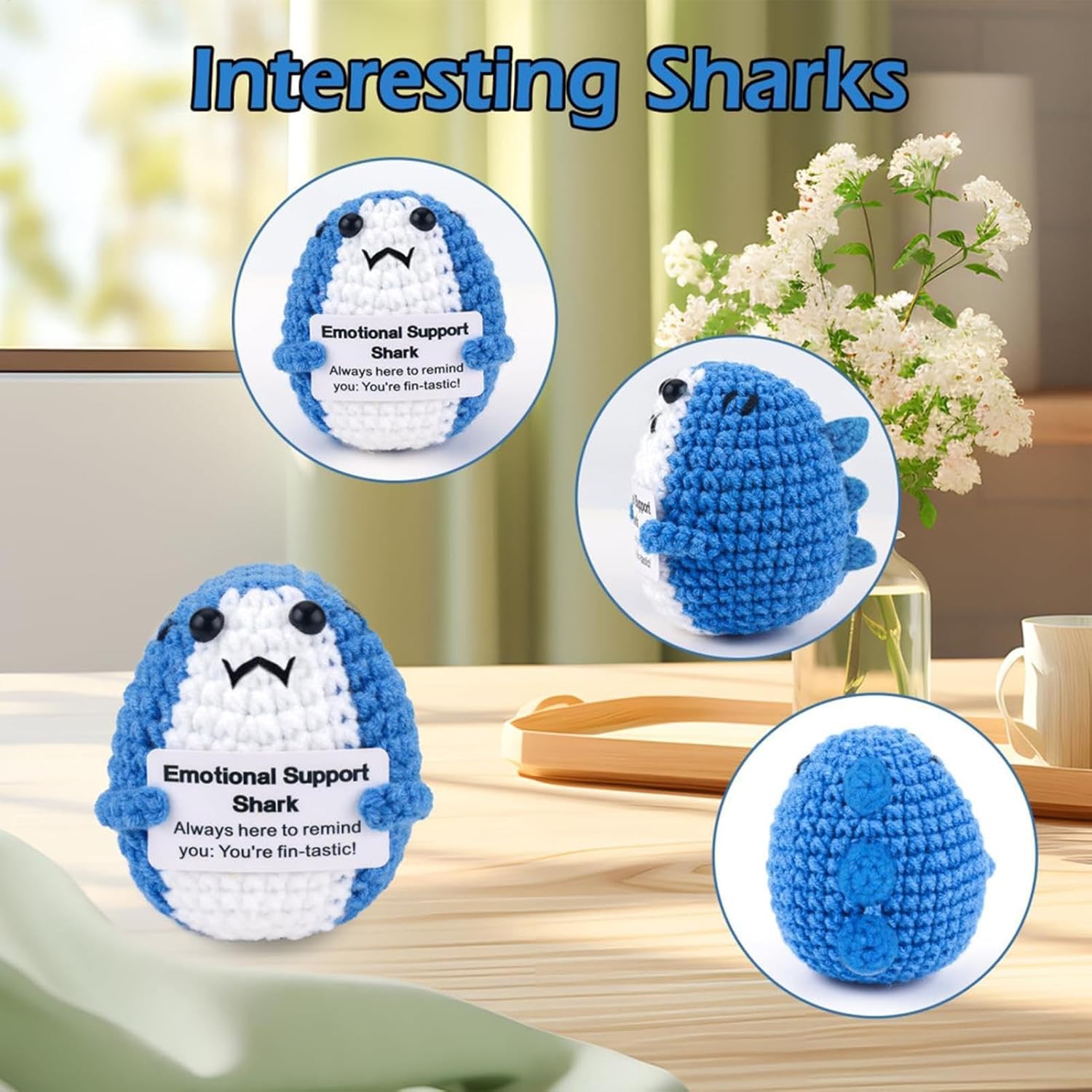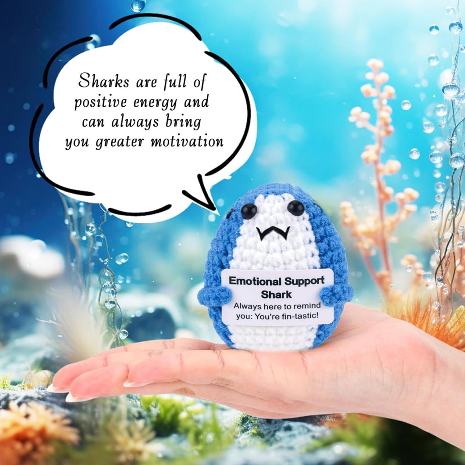 Buona durata: realizzato con filato resistente all'usura e lavorazione artigianale tessuta a mano, questo squalo di supporto emotivo offre una buona durata e robustezza. Il suo design intricato assicura che non cada o sbiadisca facilmente. Simpatico compagno di squalo: realizzato a forma di squalo simulato, questo adorabile peluche contiene una carta, con l'aspetto di uno squalo carino, ottima per il comfort e il supporto emotivo. Carta di affermazione ispiratrice: aumenta il tuo morale con il nostro squalo di supporto emotivo che viene fornito con una carta motivazionale con parole incoraggianti. È uno strumento calmante per alleviare lo stress che ispira positività, migliora l'amor proprio e migliora il tuo umore, indipendentemente dal tuo stato emotivo. Arredamento versatile: comodo da posizionare in più posti, come il tavolo del soggiorno, la scrivania, il tavolo del dormitorio o la stanza dei bambini. Questo squalo funge da decorazione versatile Trasporta senza peso: questo squalo di supporto emotivo leggero e portatile agisce come un compagno calmante che fornisce stabilità emotiva ogni volta che ne hai bisogno