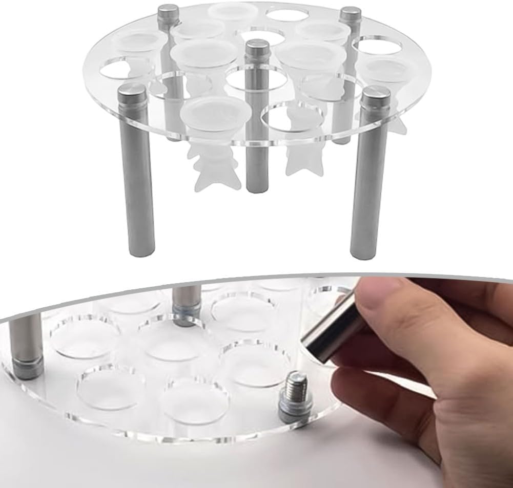 Supporto acrilico funzionale: realizzato in acrilico, questo supporto per stampi è progettato per resistere ai rigori di un uso frequente fornendo un'eccellente funzionalità. [Conservazione organizzata per pezzi di scacchi] Dotato di 16 fori distinti, questo supporto mantiene tutti i pezzi sicuri e organizzati per evitare qualsiasi usura. Base stabile a cinque gambe: la struttura a cinque gambe è stabile durante l'uso, che la rende ideale sia per principianti che per esperti artigiani fai da te. [Nessuna installazione di utensili] Goditi un processo di assemblaggio semplice senza la necessità di attrezzi, consentendo una rapida installazione in modo da poter iniziare subito a lavorare. Dimensioni: misura circa 5 x 8 cm; controlla le dimensioni per verificare la compatibilità.