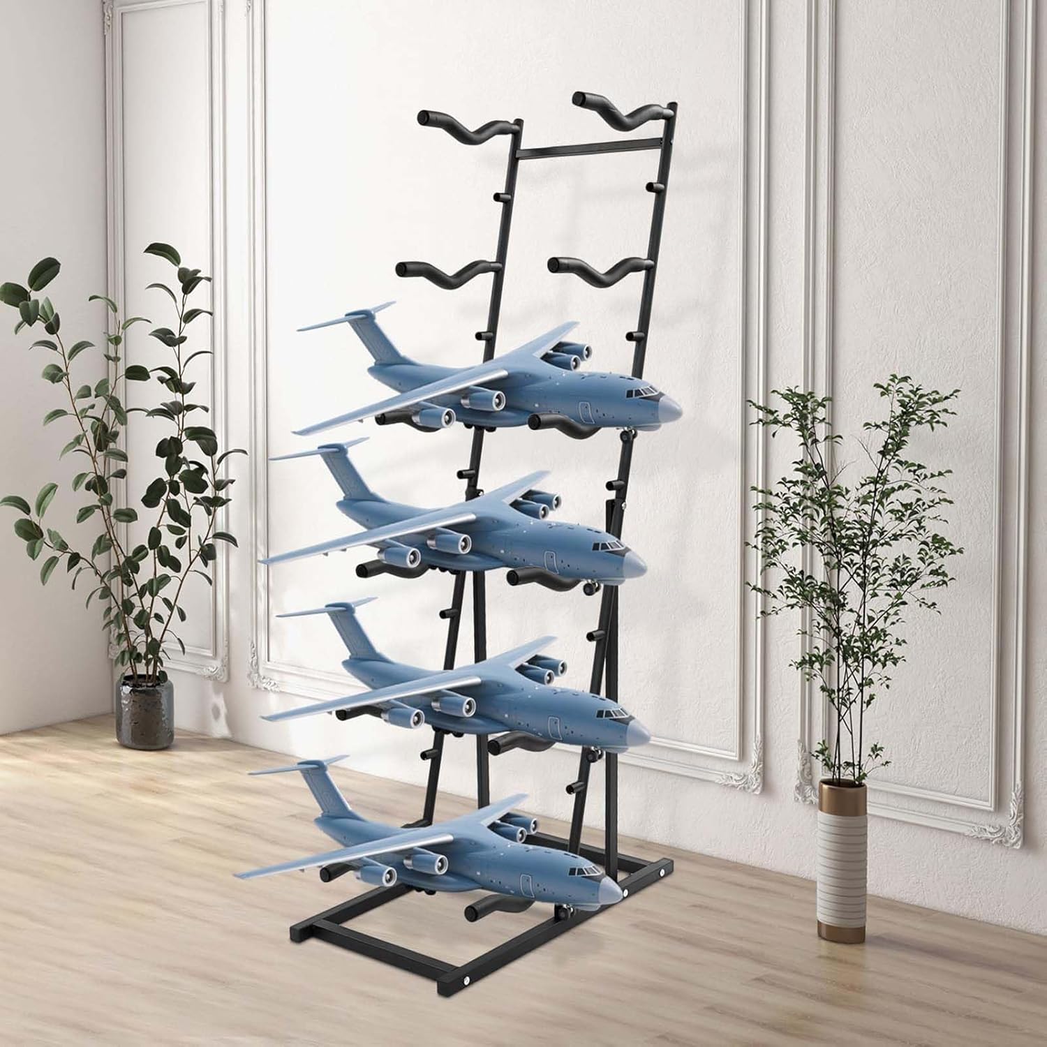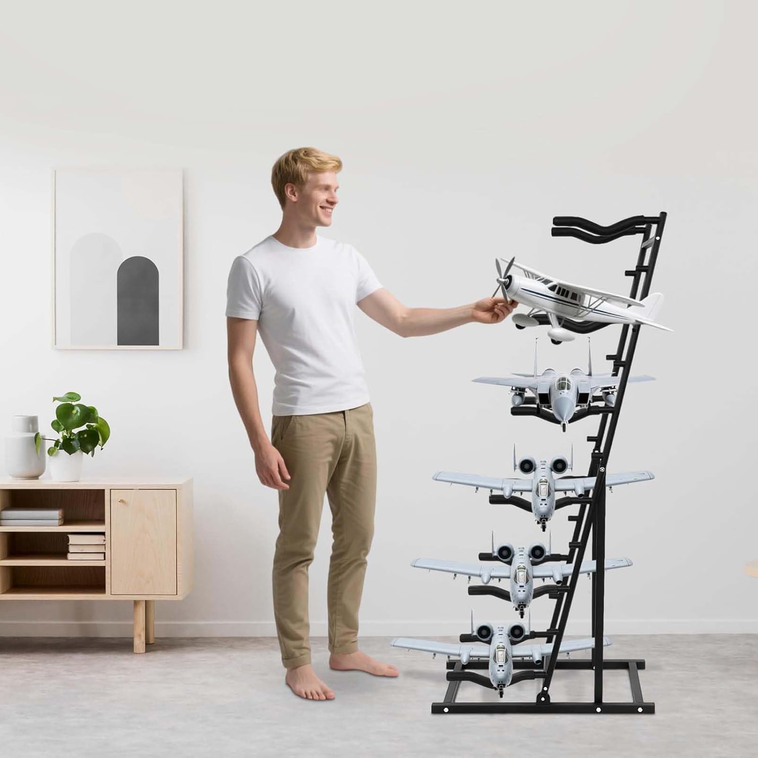 Design multistrato: questo supporto per aeromodelli può migliorare notevolmente l'utilizzo dello spazio di archiviazione, consentendo di riporre più aeromodelli telecomandati in modo ordinato e ordinato. Dimensioni regolabili: il supporto per aeromodelli telecomandati ha sei slot regolabili, che consentono di personalizzare facilmente diverse dimensioni di aeromodelli, sia in altezza che in larghezza; che si tratti di aeromodelli piccoli o grandi, questo supporto può adattarsi in modo flessibile. Facile da montare e smontare: i supporti per aeromodelli sono progettati pensando alla praticità dell'utente e sono solitamente dotati di guide di montaggio dettagliate, che consentono agli utenti di completare facilmente il lavoro di montaggio e smontaggio. Materiali di qualità: il supporto per aeromodelli telecomandati è realizzato in acciaio di qualità, che offre un'eccellente durata e resistenza, ed è inoltre dotato di spessi cuscinetti in schiuma per proteggere bene il tuo prezioso aeromodello telecomandato. Artefatto da collezione: questo supporto per aeromodelli può aiutarti a organizzare i tuoi aeromodelli telecomandati; puoi usare questo supporto per raccogliere bene i tuoi modellini di aeromodelli preferiti, il che è comodo per la famiglia e gli ospiti, e puoi anche goderteli in qualsiasi momento.