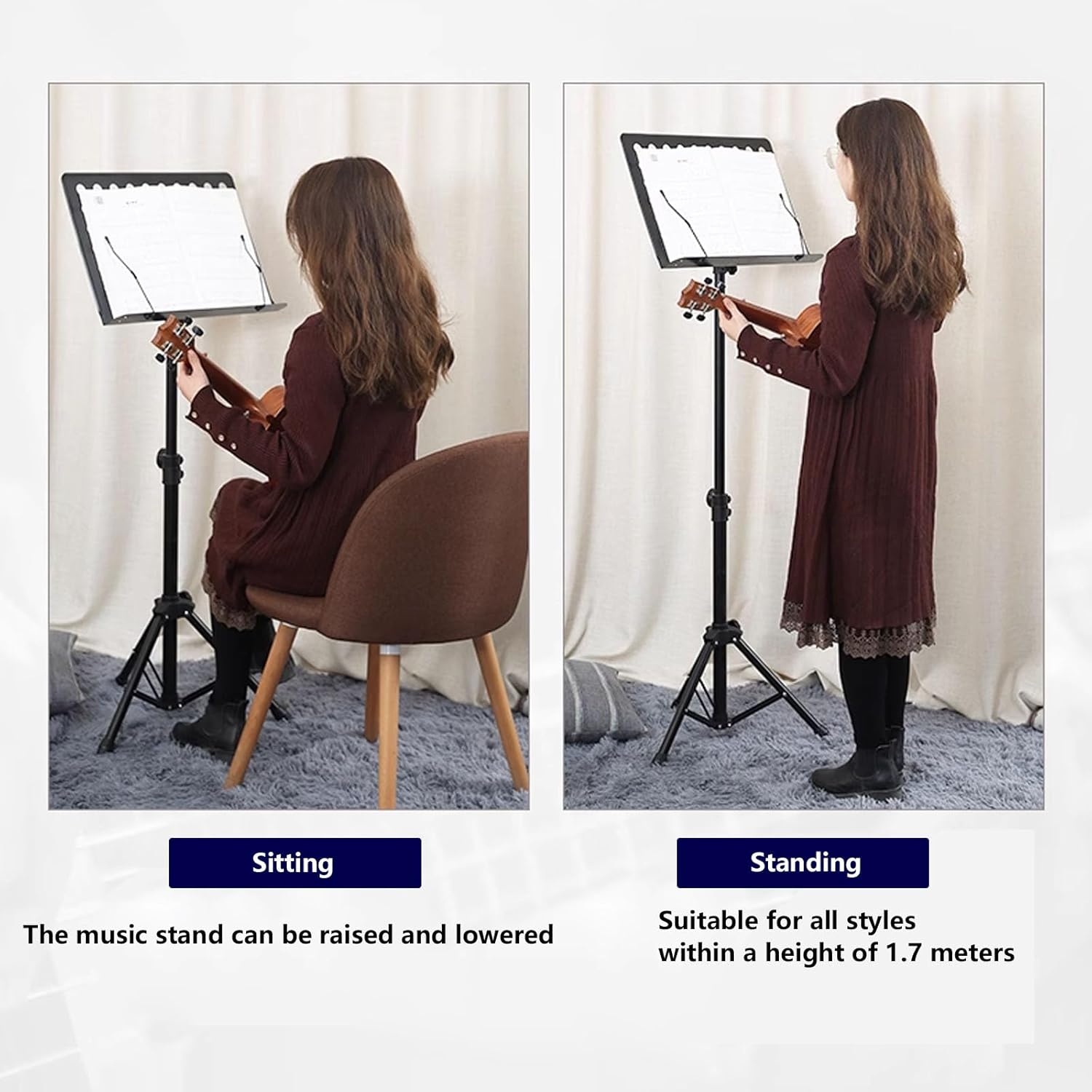 【2-IN-1 LEGGIO MUSICALE PIEGHEVOLE】Montaggio semplice ed intuitivo. Può essere usato come un leggio musicale pieghevole e portatile, ma il supporto corto in regalo ti consente di utilizzarlo come supporto da tavolo per libri, spartiti e canzonieri . 【VERSIONE SUPERIORE AGGIORNATA】Altezza regolabile da 80-170 cm, Il piatto per libri flessibile e inclinabile può essere regolato fino a 180° per ottenere un angolo di visualizzazione corretto e confortevole, ideale sia per sedersi che per stare in piedi. Non dovrai più piegarti per vedere lo spartito! 【LEGGERO E PORTATILE】Questo leggio è lo stile ultra-leggero e rimovibile e base tripode pieghevole per la portabilità superiore e una facile memorizzazione. 【CAPACITÀ DI CARICO MASSIMA 10KG】Le gambe in metallo del treppiede con coperture in gomma antiscivolo consentono a questo supporto per spartiti di sostenere fino a 10 kg in modo sicuro e stabile a qualsiasi altezza. 【LEGGERO E PORTATILE】Il piatto per libri removibile e la base del treppiede pieghevole offrono una portabilità superiore, l'assemblaggio delle gambe del treppiede si adatta agli spazi ristretti e si piega completamente per il ripostiglio, dimensioni completamente chiuse dello stand per un più facile stoccaggio.