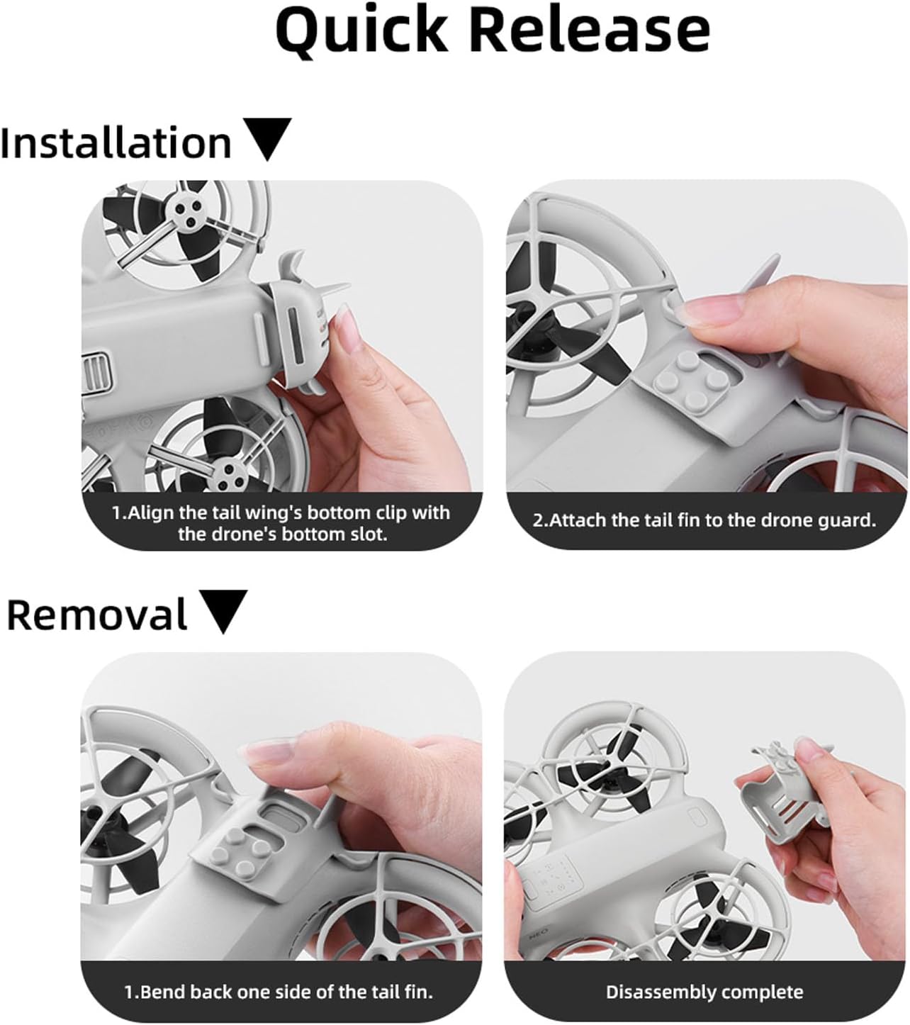 Design delle resistenze per gli urti: l'ala di coda di volo del drone viene progettata per assorbire gli impatti, fornendo ammortizzazione essenziale per il tuo drone durante gli atterraggi duri e assicurando che rimanga protetto dai danni. Aerodinamica migliorata: la coda di volo anti -rilascio della batteria è realizzata con un design scientifico, questa ala di coda aumenta significativamente le prestazioni aerodinamiche e la stabilità volante. La sua forma innovativa ottimizza il flusso d'aria, consentendo un migliore controllo e manovrabilità in varie condizioni di volo. Costruzione ultra leggera: la coda di volo con supporto anti-rilascio della batteria è realizzata con materiale ABS di alta qualità, questa ala di coda riduce al minimo il peso complessivo del drone. Questo design leggero migliora l'efficienza di volo, con conseguenti tempi di volo più lunghi e una migliore rapidità, in modo da poter godere della tua esperienza di volo senza restrizioni. Estetica accattivante: Drone Anti Drop Flying Tail è caratterizzato da un design unico e sorprendente, la coda volante per droni si aggiunge al fascino visivo del tuo drone. Ti permette di esprimere la tua personalità e il tuo stile, facendo risaltare il tuo drone dal resto. Installazione senza sforzo: la coda di volo per NEO è progettata per un raccordo preciso, questa ala di coda garantisce un attacco fideiussione che non si allenta durante il volo. L'installazione è rapida e diretta, che richiede due semplici passaggi per un facile allegato e rimozione.