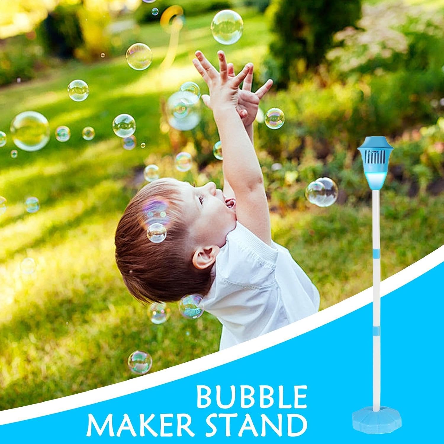 Delizioso display a bolle: a forma di lampione, questo nuovo supporto per la creazione di bolle eleva qualsiasi riunione all'aperto, ottimo per organizzare un'emozionante esposizione a bolle: con una luce notturna incorporata, questa macchina per bolle crea bolle con il semplice tocco di un pulsante per un intrattenimento comodo e accattivante Costruzione affidabile: la lunga durata di questo supporto per macchina per bolle da esterno è garantita dalla sua struttura robusta e affidabile, fornendo un supporto affidabile per più divertenti momenti di creazione di bolle: Ideale per le riunioni, questo supporto per la produzione di bolle trasforma qualsiasi giardino in uno spazio, deliziando vicini, amici e familiari come un'affascinante luce di torcia a bolle Aggiungi entusiasmo a qualsiasi riunione: migliora l'atmosfera alle feste di compleanno, ai picnic e ai matrimoni con questo versatile supporto per bolle, diffondi il divertimento e il divertimento per