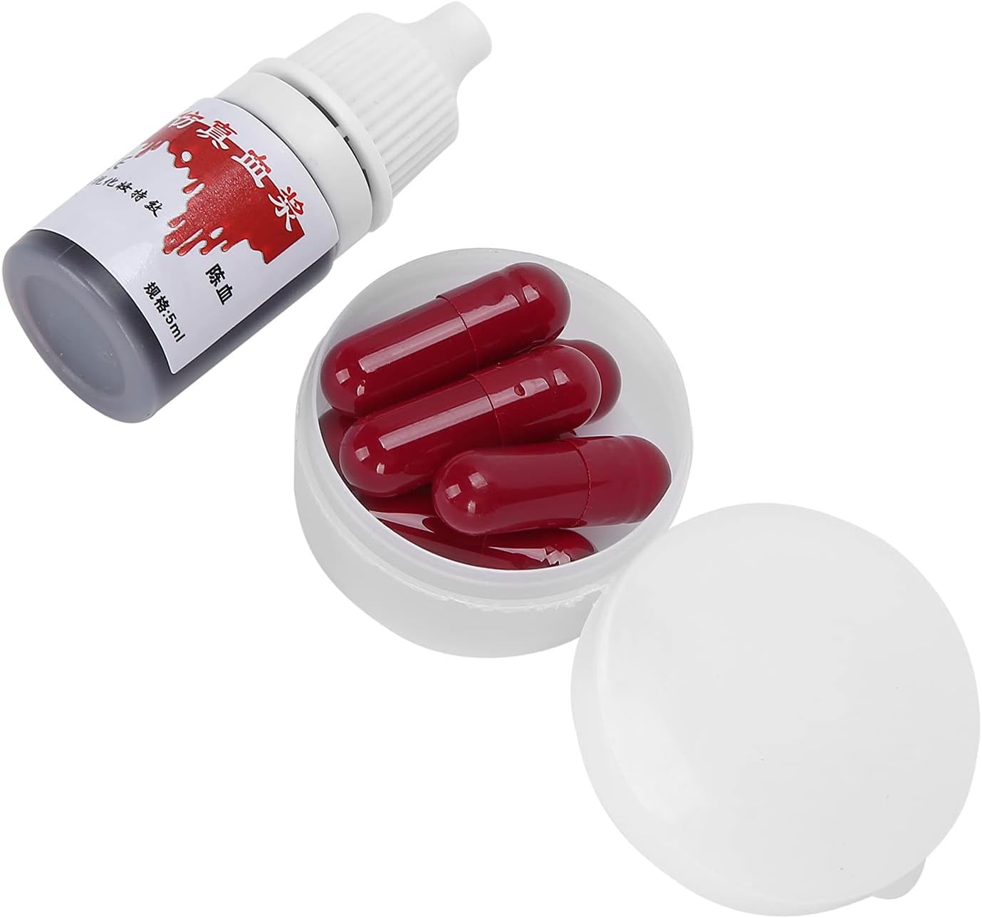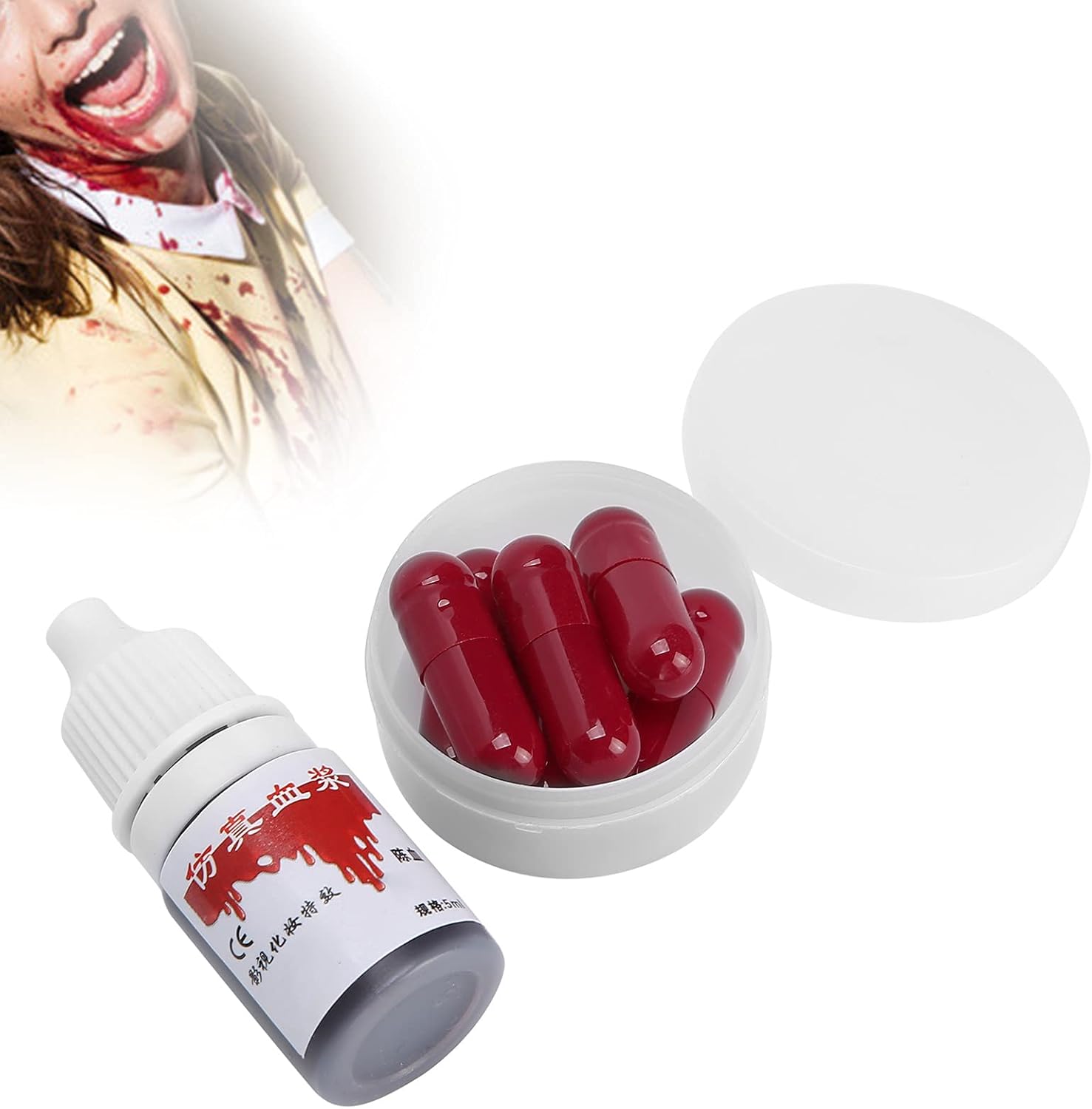 [Colore rosso che colpisce] Il colore del sangue rosso incredibilmente brillante offre un aspetto terrificante per il trucco e i costumi. [Certo e non] realizzati con colorante alimentare e materiale idrico, queste capsule sono innocue per la loro salute e la loro pelle. [Applicazione rapida e semplice] Basta mordere la capsula per rilasciare falsi sangue per un effetto di trucco dinamico. [Versatile] Ideale per Halloween, cosplay, teatro, cinema e effetti speciali per creare una scena sanguinosa o un aspetto di trucco per infortunio. [Set completo] Ottieni 6 capsule di sangue false, una scatola di stoccaggio e una bottiglia di sangue finta per completare il trucco e il costume di Halloween.