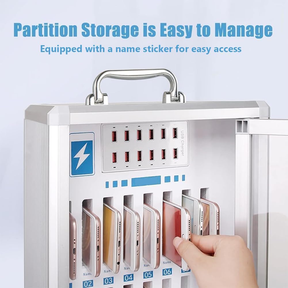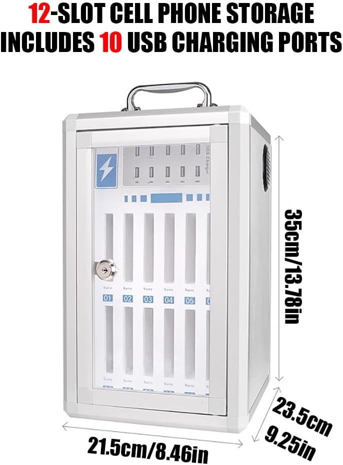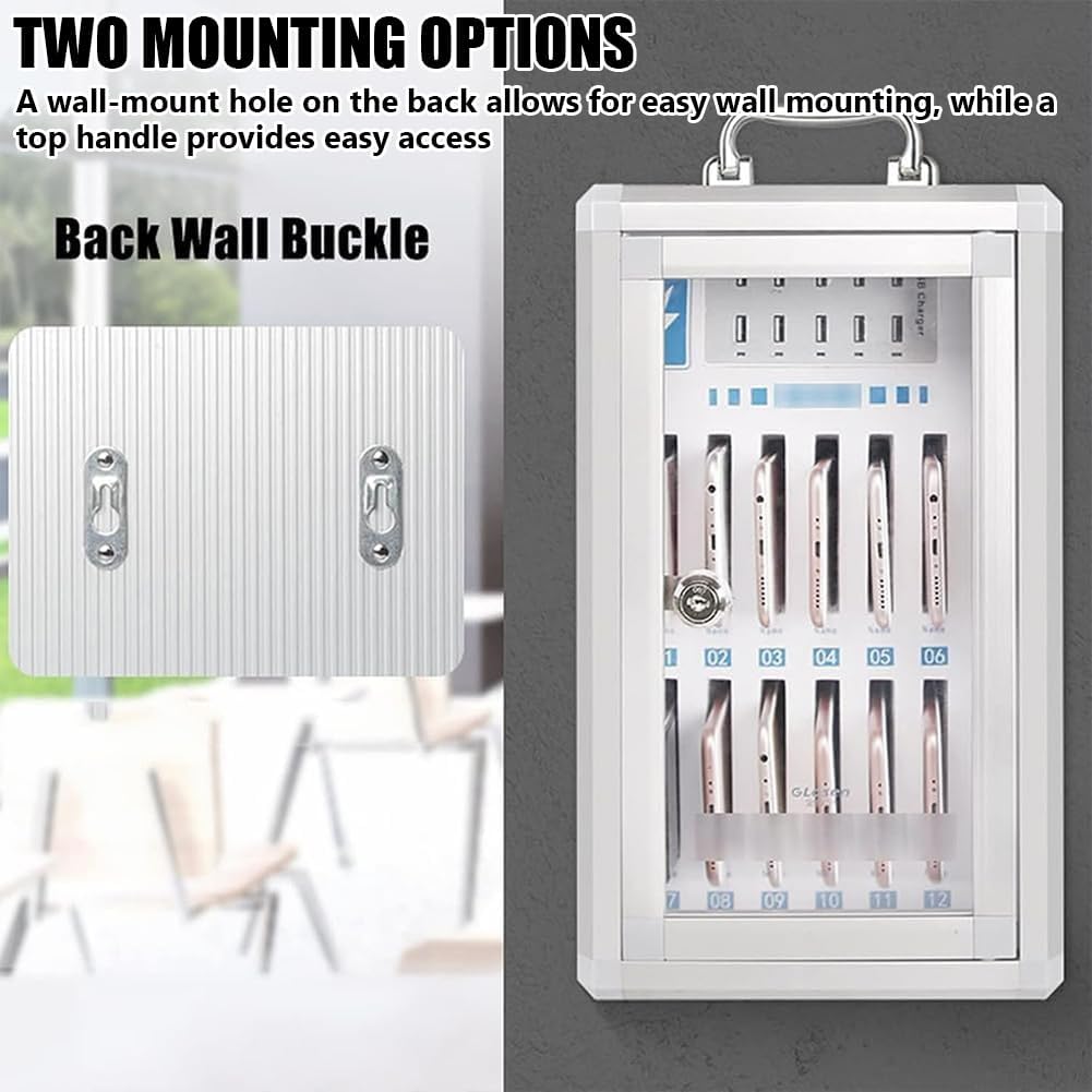 Materiali di qualità superiore e robusti: questo mobiletto porta telefono per l'aula è realizzato in lega di alluminio leggera e robusta, pannello di fibra a media densità e acrilico trasparente. L'interno in EVA e cotone perlato protegge il telefono dall'usura, rendendolo spesso e robusto, resistente a rotture o deformazioni. Design ricaricabile: la parte superiore del mobiletto è dotata di una porta USB; il modello a "12 slot" ha 10 porte USB, mentre il modello a "24 slot" ha 12 porte USB. Durante la ricarica, l'indicatore della porta USB si illumina per indicare che è in uso. Caratteristiche di sicurezza e installazione: il mobiletto porta telefono è dotato di una serratura di sicurezza con chiave e di una robusta maniglia. Una clip sul retro consente un facile montaggio a parete. La maniglia superiore consente di spostarlo ovunque in qualsiasi momento. Design affidabile: il nostro mobiletto porta telefono ha un design unico, con ogni slot dotato di chiave e numerazione. Questo design studiato nei minimi dettagli garantisce la sicurezza del tuo dispositivo, semplificando al contempo l'identificazione degli slot, eliminando la preoccupazione di smarrire o confondere il telefono. Migliora la concentrazione e il coinvolgimento: questo box portaoggetti per telefono da 12/24 slot è progettato per aiutare scuole e istituti a ridurre le distrazioni digitali, promuovere un ambiente di lavoro organizzato e migliorare la concentrazione, la produttività e il benessere mentale, consentendo agli studenti di concentrarsi sull'apprendimento.