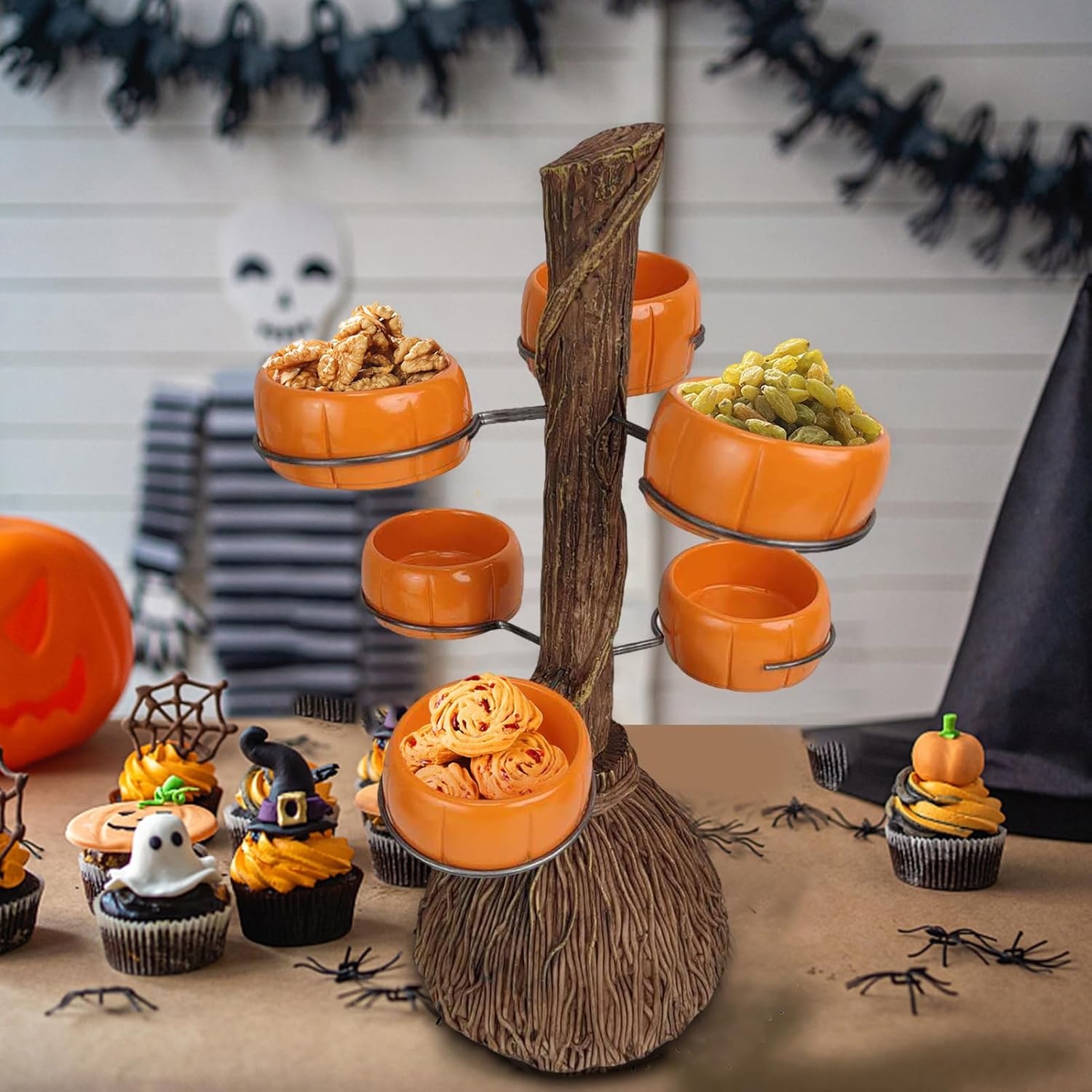[Creative Pumpkin Design] Halloween Candy Bowl presenta ciotole di zucca su un design a forma di manico di scopa, creativo e bello, aggiungendo elementi alle decorazioni della tua festa. [Materiale selezionato] Durevole per un uso duraturo, Cupcake Stand è realizzato in materiale di resina di alta qualità, robusto, ecologico e sicuro. [Adozione diffusa] La ciotola di zucca può essere utilizzata per contenere biscotti, cioccolatini, cupcake, antipasti e altri dessert o snack, perfetta per matrimoni, baby shower, feste di Halloween e altro, applicabile a varie occasioni. [Splendidamente realizzato] Trattate con superba maestria, le ciotole di Halloween per caramelle sono realizzate con trame chiare e apparenze divertenti, non facili da rompere. [Scelta ideale] I supporti per dessert sono meravigliosi regali di festa per amici, vicini e familiari, possono lasciare una profonda impressione sui tuoi ospiti, perfetti per abbinarsi al tuo arredamento per la casa di Halloween.
