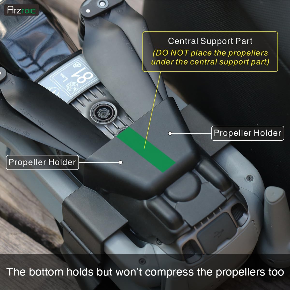 Accessori per DJI Air 3S/3, il supporto dell'elica è appositamente personalizzato per i droni DJI Air 3S e DJI Air 3 Tiene e protegge l'elica/pale da danni durante lo stoccaggio e può essere riposto in una varietà di borse o custodie La cinghia di protezione dell'elica mantiene l'elica in posizione ma non comprime le eliche Striscia di gomma morbida, non graffia il drone, resistente e lavabile. Base stampata ad iniezione di qualità, non stampata in 3D. Veloce da livellare, installare e rimuovere