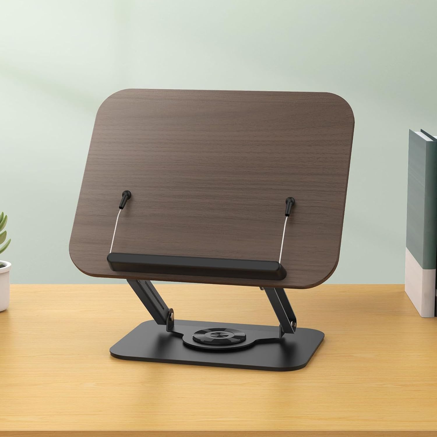 [Angolo di lettura] Scopri il tuo angolo di lettura o visione ideale con il nostro innovativo leggio con regolazione a 360°. che tu stia studiando cucinando o leggendo a letto, questo supporto offre comfort e praticità senza pari. l'altezza e l'angolazione regolabili garantiscono un posizionamento ottimale per qualsiasi attività, rendendolo un must per gli amanti dei libri e per i multitasking. [Uso multifunzionale] Questo supporto versatile funge da supporto per spartiti musicali e supporta anche i laptop. sia per l'uso in cucina che sulla scrivania, migliora la produttività e la comodità. il design robusto garantisce stabilità mentre la base rotante consente transizioni senza interruzioni tra le attività. ideale per cucinare, lavorare alla scrivania o leggere a letto, questo supporto si adatta alle tue esigenze. [Robusto e durevole] Realizzato in legno e acciaio al carbonio, questo supporto per libri vanta un design stabile per prestazioni affidabili. oltre a contenere libri, funge anche da espositore rotante e da supporto per la digitazione. la struttura robusta garantisce longevità mentre il design elegante aggiunge un tocco di eleganza a qualsiasi ambiente. un mix di funzionalità e stile. [ e conveniente] Dispone di Clamp/Holder elastiche per pagine che mantengono saldamente in posizione libri e documenti. questo design delle mani libera le tue mani per maggiore comodità e praticità. che tu stia cucinando, studiando o lavorando, questo supporto garantisce che i tuoi materiali rimangano al . le Clamp/Holder elastiche si adattano a vari spessori rendendolo adatto a un'ampia gamma di libri e dispositivi. [Design salvaspazio] Una volta piegato, questo supporto occupa spazio minimo, rendendolo ideale per ambienti con scaffali o area desktop limitati. riponilo facilmente nei cassetti o sugli scaffali quando non lo usi per ottimizzare il tuo spazio abitativo o di lavoro. il design compatto non compromette la funzionalità offrendo funzionalità complete in un pacchetto portatile. piccoli spazi e utilizzo in movimento.