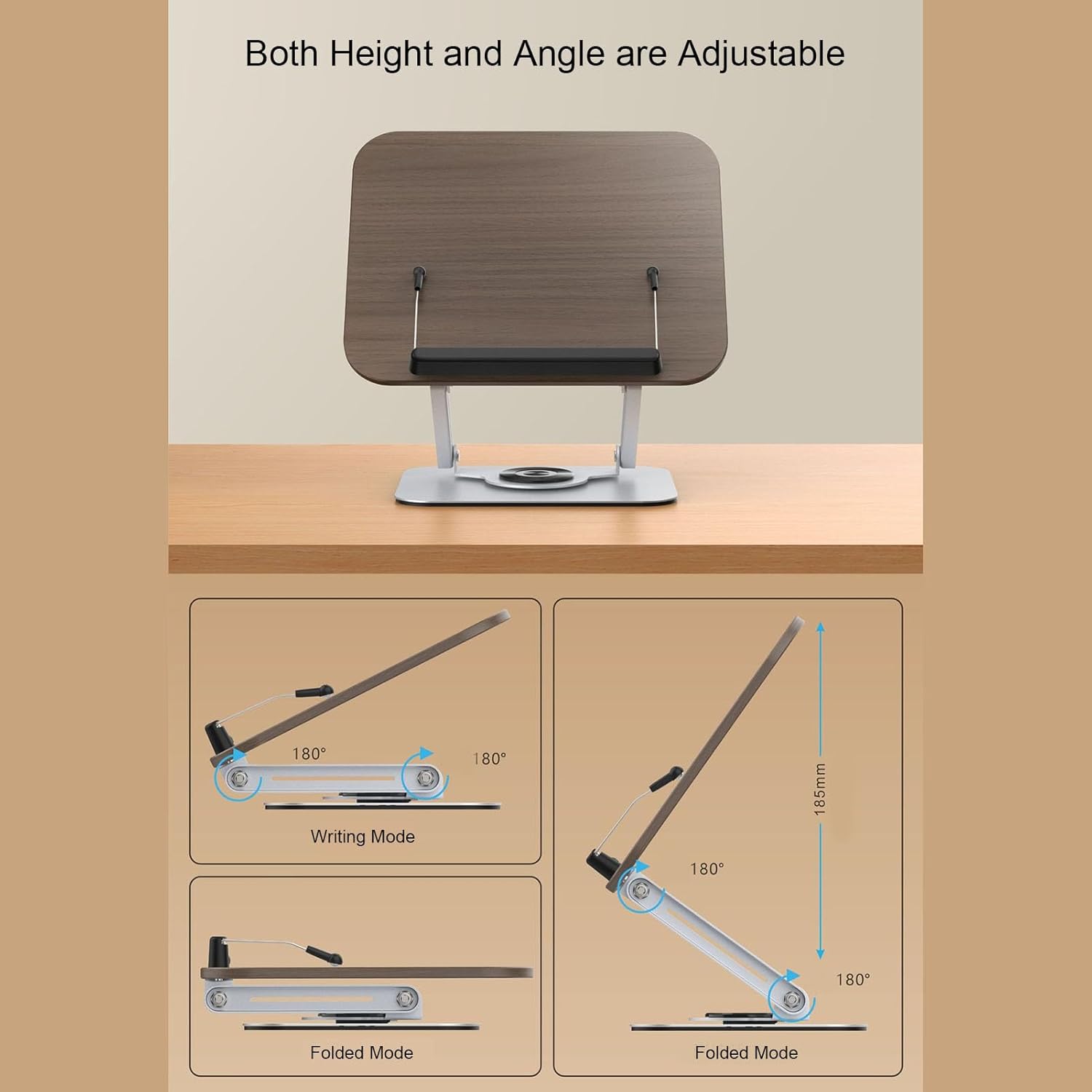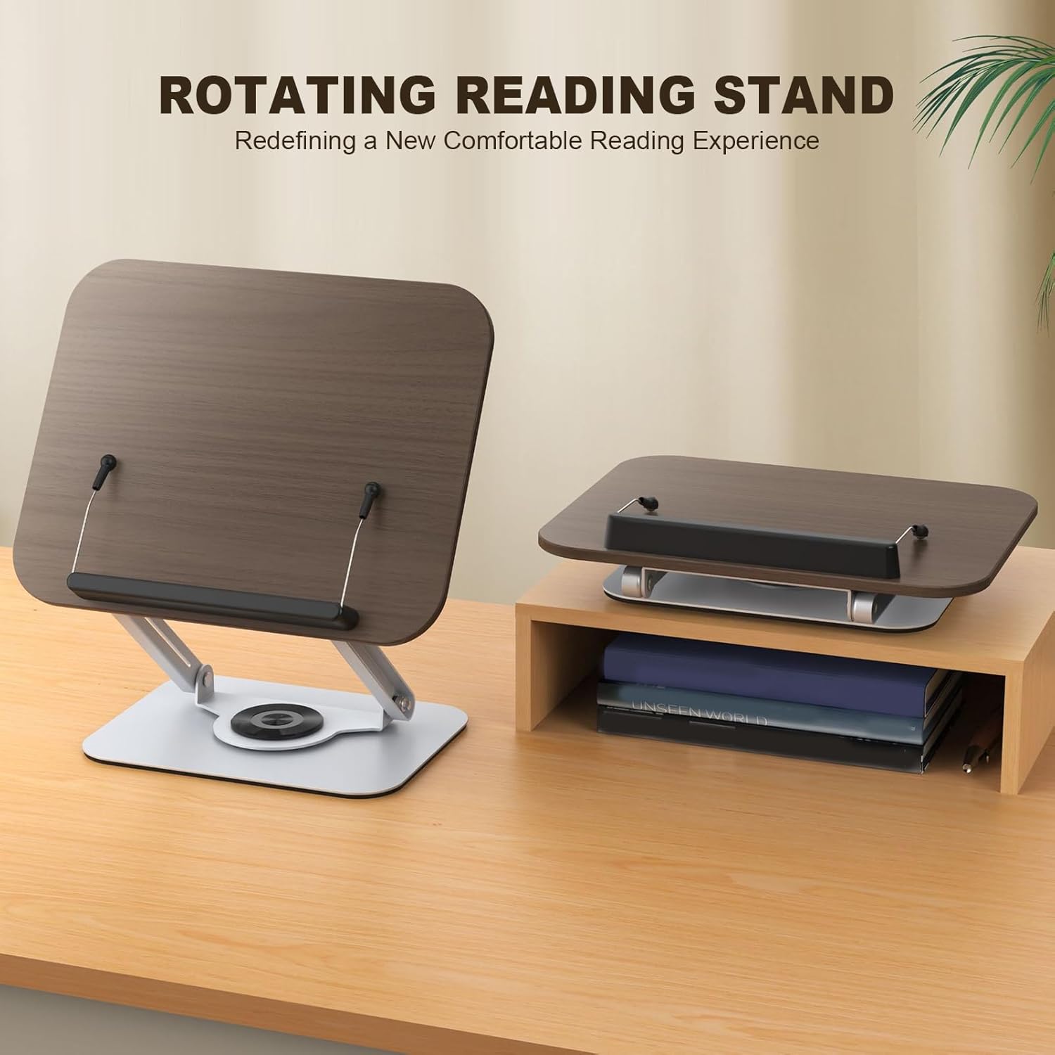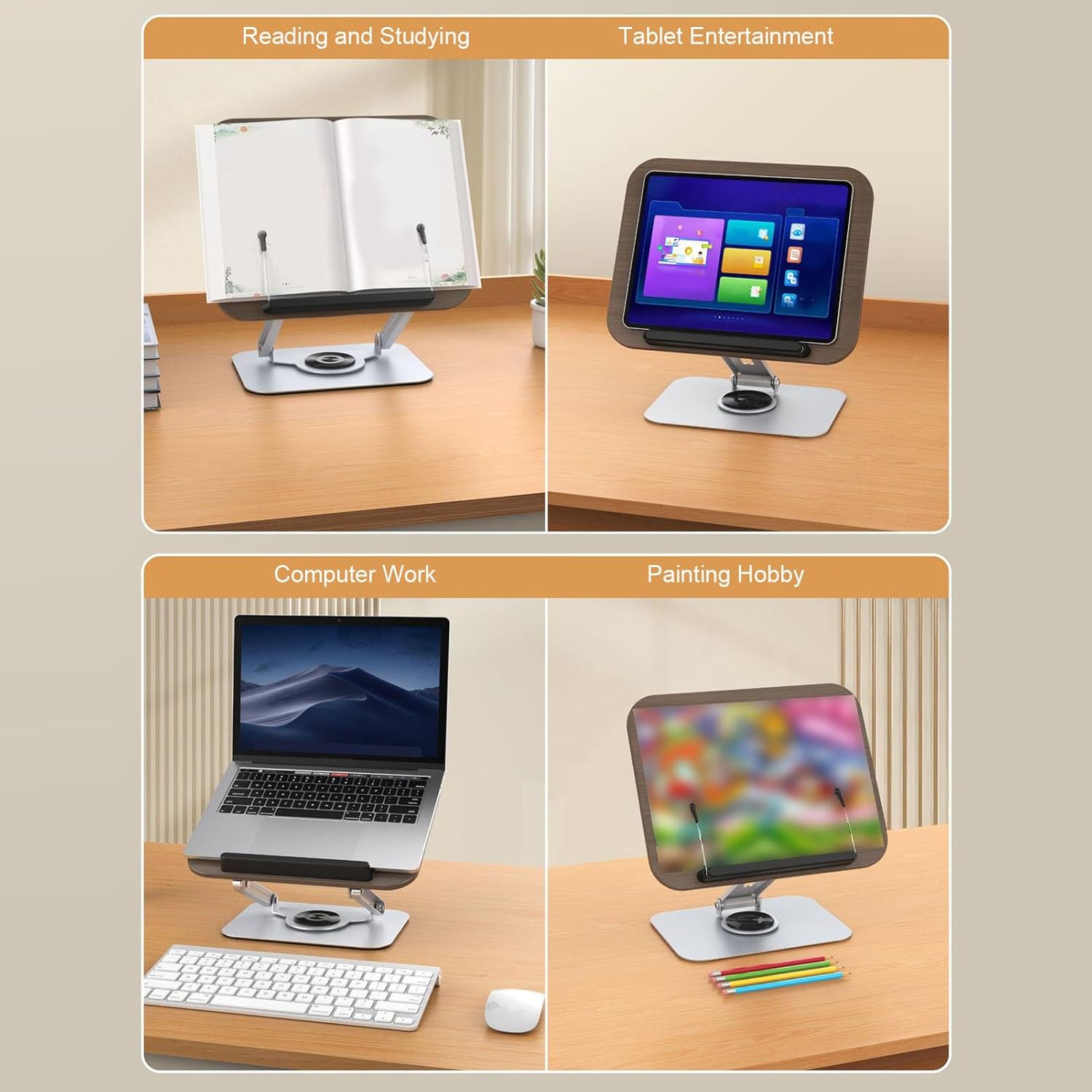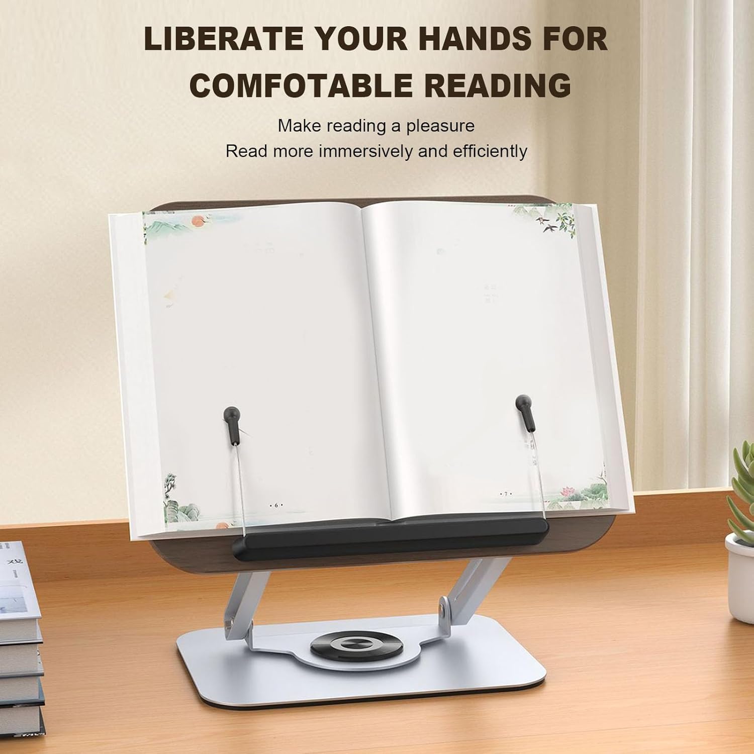 [Multifunzionale per ogni esigenza] Questo supporto ha molteplici scopi, da portaricette in cucina a supporto per spartiti per musicisti. supporta anche laptop e tablet, rendendolo strumento versatile per il lavoro e il tempo libero. il design regolabile e la struttura robusta lo rendono un must per chiunque cerchi comfort e praticità nelle proprie attività quotidiane. [Regolabilità versatile a 360 gradi] Scopri l'angolo di lettura o visualizzazione con il nostro innovativo leggio. progettato per il massimo comfort e praticità, questo supporto offre una regolazione a 360 gradi, rendendolo ideale per studiare, cucinare o leggere in qualsiasi posizione. l'altezza e l'angolazione regolabili garantiscono un supporto ergonomico, sia che tu sia alla scrivania, in cucina o che ti rilassi a letto. [Design pieghevole salvaspazio] Quando non in uso, questo supporto si ripiega fino a raggiungere dimensioni compatte, risparmiando spazio prezioso sullo scaffale o sulla scrivania. il suo design salvaspazio lo rende ideale per piccoli ambienti. riponilo facilmente nei cassetti o sugli scaffali per mantenere il tuo soggiorno o spazio di lavoro organizzato e privo di disordine. [Costruzione robusta] Realizzato in legno e acciaio al carbonio, questo supporto per libri presenta un design non oscillante per la stabilità. i materiali robusti garantiscono una lunga durata, rendendolo per un uso intensivo. oltre a contenere libri, funge anche da espositore rotante e da supporto per la dattilografia, aggiungendo versatilità alla tua routine quotidiana. [Clamp/Holder per pagine elastiche sicure] Dotato di Clamp/Holder elastiche, questo supporto mantiene saldamente in posizione libri, documenti e tablet. le Clamp/Holder assicurano che le tue pagine rimangano aperte, consentendo la lettura o la digitazione a mani libere. questa funzionalità aggiunge praticità, sia che tu stia seguendo una ricetta, studiando o lavorando sul tuo laptop.
