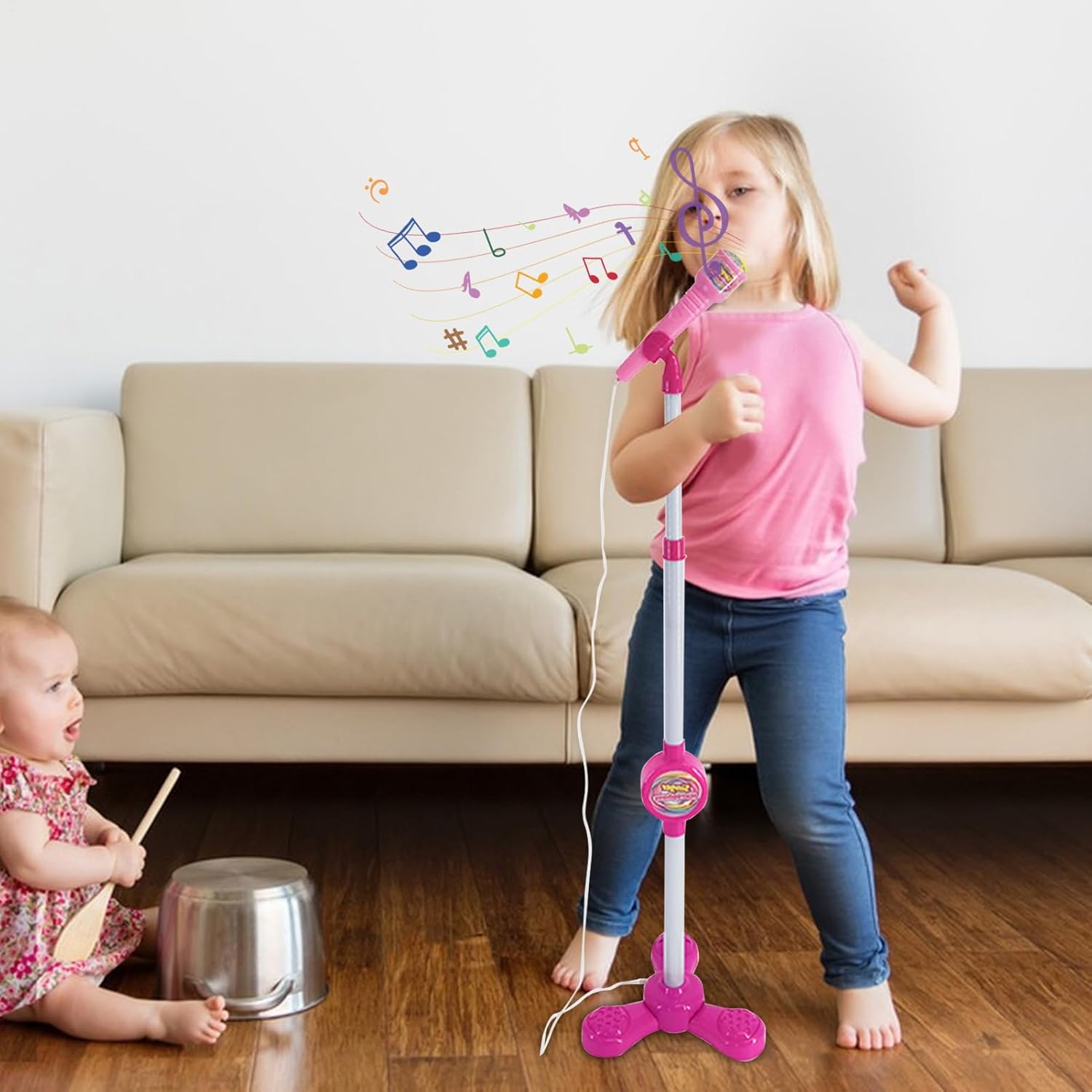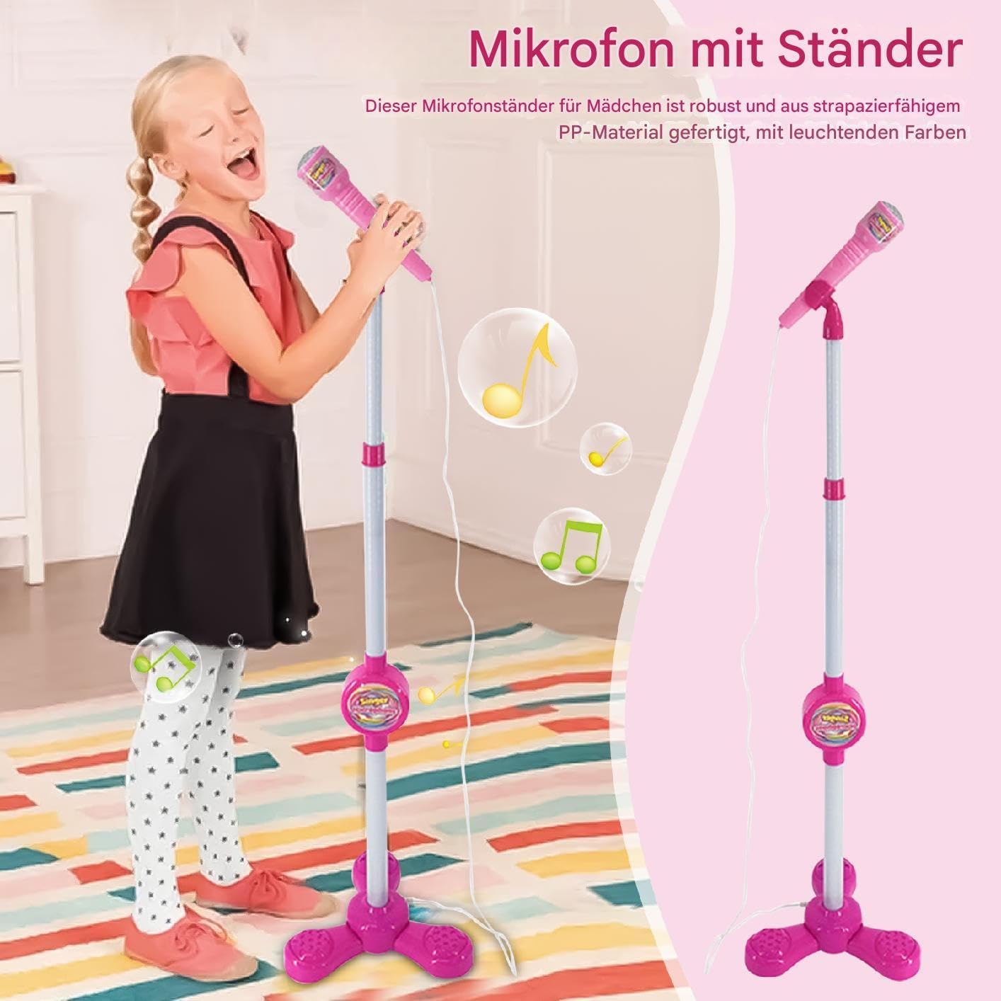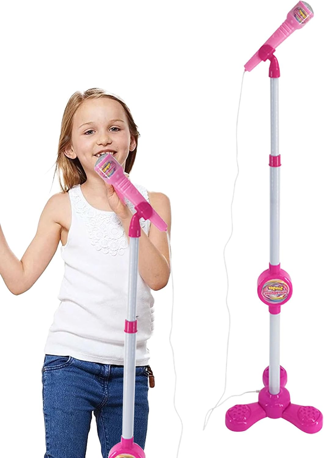 Raccolta di ricevimenti passatempo: Consenti ai tuoi figli di cantare e ballare con gli amici. Questo supporto per microfono splendidamente progettato è facilmente configurato e garantisce ore di divertimento. L'accessorio perfetto per rendere indimenticabile qualsiasi riunione Funzione allegato: amplia la selezione delle canzoni del tuo bambino collegandoti al cellulare e ai dispositivi e permettendo loro di cantare con la musica preferita e cantare al massimo la musica adorabile. Supporto microfono facile da usare: aiuta il bambino a liberare la sua superstar interna con questo supporto microfono per bambini facile da usare. Sia che vengano tenuti in mano o rimossi dal supporto, la semplice azione aggiunge una nuova dimensione alla tua esperienza di canto, trasformandola in una performance semplice e divertente da palcoscenico. Regalo premuroso: il tuo bambino adorerà il suono realistico e il design colorato di questo supporto per microfono per bambini, rendendolo il regalo perfetto per vacanze, Halloween, Natale e compleanni. Facile da usare e ideale per il gioco creativo. È sicuro intrattenerli per ore Costruzione stabile: questo supporto per microfono per bambini è realizzato in robusto materiale PP, che garantisce durata e durata. L'affascinante design presenta colori vivaci e contribuisce all'esperienza divertente per i giovani artisti, mentre la base robusta assicura ogni volta un supporto stabile