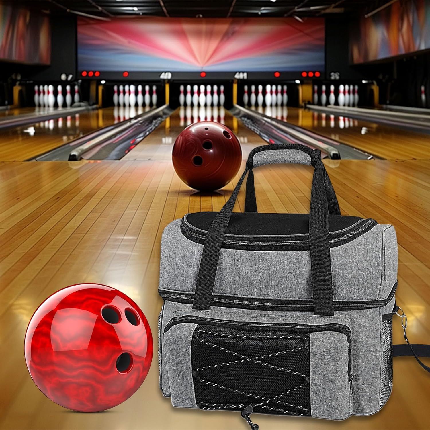 Lo scomparto superiore per scarpe può contenere un paio di scarpe fino a una taglia 46, e l'interno in PVC trasparente rende facile rimuovere le macchie La borsa da bowling portatile può contenere facilmente 2 palline da bowling, il rack per palline e il design imbottito del divisore protegge le palline da danni o impedisce che rotolino durante il trasporto Il design aggiuntivo della tasca aumenta lo spazio di archiviazione, per riporre telefono, portafoglio, bottiglie d'acqua, asciugamani, occhiali La tracolla imbottita regolabile e il manico imbottito offrono un comodo trasporto Realizzato in tessuto Oxford, resistente all'acqua, pregevole fattura, è un bel giocatore di bowling per principianti o giocatori di bowling professionisti
