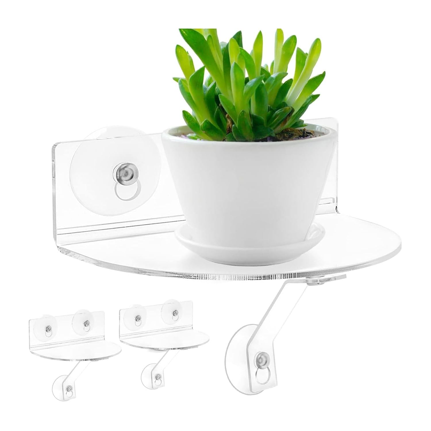 [SUPPORTO FORTE E STABILE] Ogni ripiano per piante in acrilico per finestre è dotato di una staffa portante resistente che supporta 4-8 libbre, fornendo un'eccellente stabilità per le tue piante e le tue decorazioni. Le ventose rinforzate e la robusta struttura in acrilico assicurano che i tuoi oggetti rimangano saldamente in posizione senza bloccare la vista della finestra. per piante grasse più pesanti e oggetti decorativi. [COSTRUZIONE ACRILICA PREMIUM] Realizzati in acrilico trasparente spesso 5 mm, questi scaffali offrono un design minimalista ma resistente che si abbina a qualsiasi arredamento domestico. Il materiale cristallino mantiene la visibilità fornendo stesso tempo un supporto affidabile per piante, cornici fotografiche o oggetti da collezione. I materiali di alta qualità resistono all'ingiallimento e alle screpolature nel tempo. [OPZIONI DI INSTALLAZIONE VERSATILI] Include 2 ripiani semicircolari con 8 ventose in totale per un posizionamento flessibile. Disponili facilmente in un'unica o sfalsali in modo creativo attraverso la finestra. La potente aspirazione funziona su vetro, specchi e piastrelle lisce, permettendoti di trasformare qualsiasi spazio in una bellissima area espositiva senza fori o dispositivi permanenti. [FACILE DA IMPOSTARE E UTILIZZARE] Pulisci semplicemente la superficie con un panno asciutto prima di applicare le ventose per la massima adesione. Il manuale di istruzioni incluso rende l'installazione rapida e senza problemi. Questi scaffali sono destinati agli affittuari o a chiunque desideri evitare danni alle pareti aggiungendo stesso tempo spazio funzionale e spazio espositivo. [SOLUZIONE CASA MULTIUSO] Ideale per organizzare gli elementi essenziali del bagno, esporre piante da interno o mostrare album di dischi e cornici per foto. Crea spazio aggiuntivo per piccoli oggetti in cucine, camere da letto o camerette. Il design elegante funziona altrettanto bene per l'arredamento della casa e per le pratiche esigenze di archiviazione su finestre, specchi o superfici piastrellate.