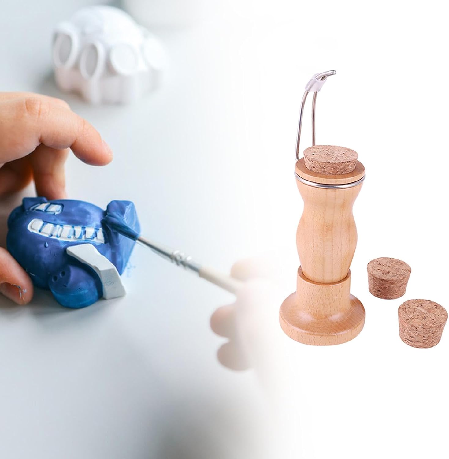 【Facile da usare】: Supporto per pittura in miniatura leggero ed ergonomico, ideale per fissare figure di modelli in piccola durante la pittura a mano 【Basi in sughero】: include tre basi in sughero intercambiabili, che consentono di dipingere miniature e passare facilmente da un progetto all'altro 【Materiale di qualità】: realizzata in legno e metallo di qualità, questa impugnatura per pittura a mano offre una sensazione confortevole e una maggiore stabilità per la pittura di modelli 【Manico per pittura in miniatura】: dotato di un supporto per la mano integrato per facilitare la pennellata costante, per lunghe sessioni di pittura 【Ampia applicazione】: la maniglia per pittura rende molto più facile tenere saldamente le miniature durante la pittura, per miniature, modelli in , statuette fantasy, ecc.