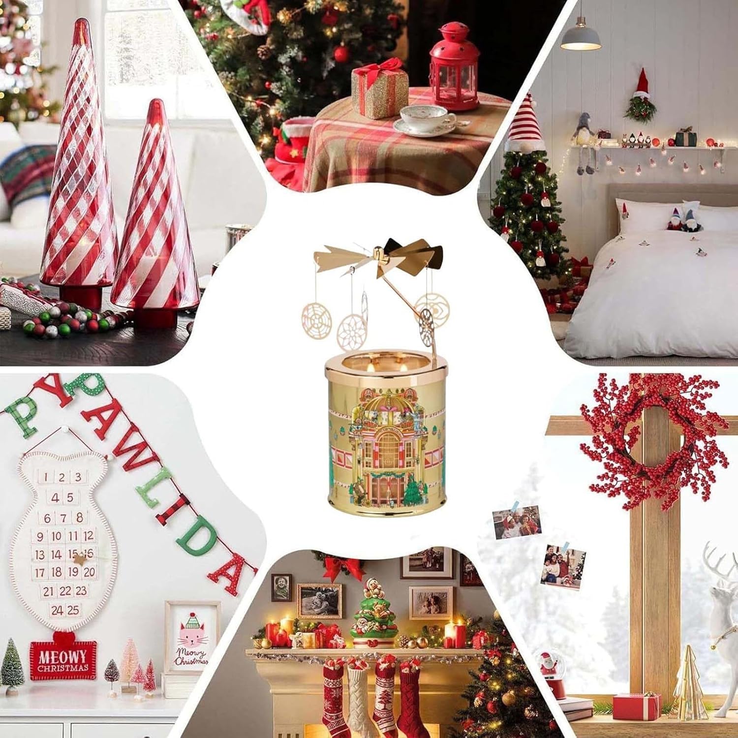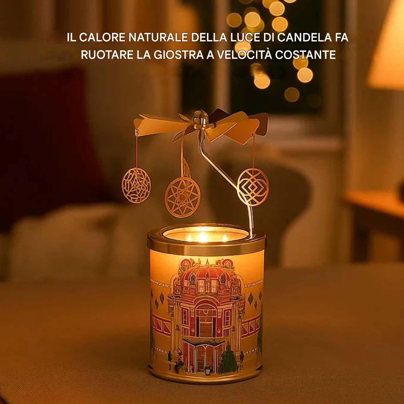Atmosfera : Il portada tè rotante mette in risalto la decorazione estetica in stile che unisce tradizione e modernità. Favorisce la condivisione significativa e permette di celebrare i rituali stagionali sia durante riunioni sociali che in serate tranquille. Crea un ambiente festivo e accogliente, per aggiungere un tocco di magia a ogni occasione speciale o momento di relax con una illuminazione calda e suggestiva. Soluzione Flessibile: Il portaaccoglie sia tè che pilastro, fornendo opzioni flessibili per le dimensioni che rendono facile sostituire le profumate, migliorando l'atmosfera e la fragranza in soggiorno o durante intime, con una praticità d'uso quotidiano e adattabilità a diverse esigenze decorative. Illuminazione Ambiente Migliorata: Questo portaper tea lights arricchisce gli spazi con un design elegante e una finitura raffinata che riflette la luce fluente delle , creando una calda atmosfera invernale per festività o serate tranquille e aggiungendo profondità e calore all'arredamento domestico attraverso un'illuminazione avvolgente e raffinata che migliora l'estetica degli ambienti interni. Caratteristica Centrotavola Romantico: Il portacandela per tè funge da centrotavola romantico per le feste attraverso il movimento a carosello termico alimentato a candela, producendo giochi di luce dinamici e delicati che arricchiscono l'arredamento senza richiedere elettricità o batterie. Adatto per serate tranquille, feste a tema, occasioni speciali e decorazioni domestiche, questo prodotto crea un'atmosfera incantevole e rilassante, ideale per momenti di convivialità e per esaltare l Supporto Espositivo Versatile: Questo portaper tè offre opzioni di posizionamento flessibili, migliorando la decorazione per la cena mentre supporta styling dinamico per le feste e completa l'uso decorativo multi-stanza, creando un'atmosfera invitante in qualsiasi ambiente, per abbellire la casa in modo semplice ed elegante durante eventi festivi o giornalieri, con una disposizione che si adatta a diverse esigenze decorative.