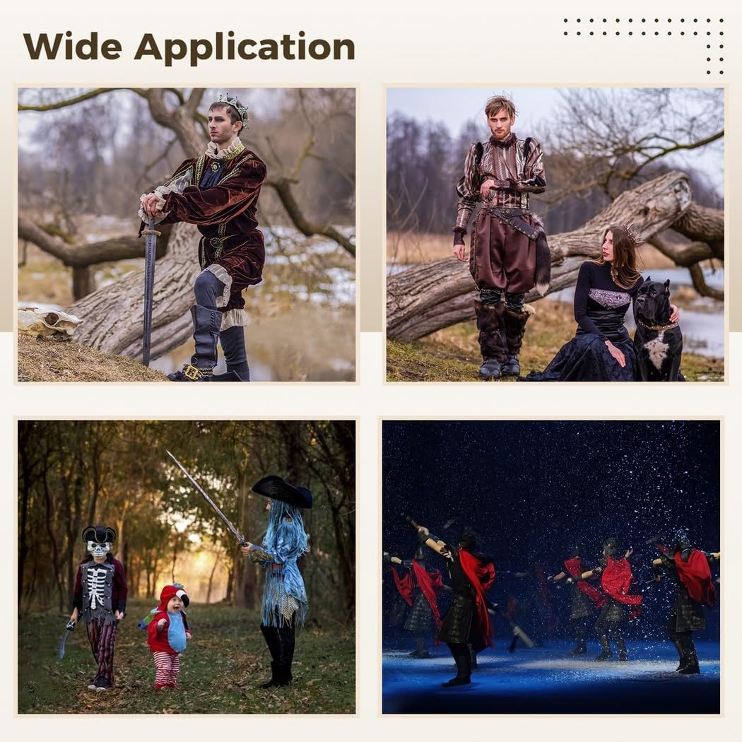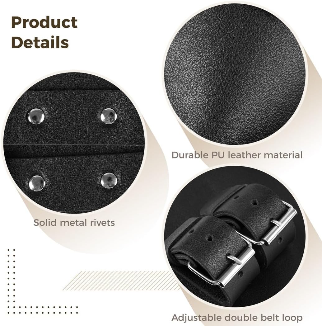 Struttura durevole: costruito con pelle PU impermeabile e rivetti resistenti; progettato per resistere all'uso quotidiano senza rompersi o sbiadire Vestibilità personalizzabile: dotato di doppi anelli regolabili; ospita diverse dimensioni di spada e può essere indossato su entrambi i lati per flessibilità Design minimalista: presenta un elegante look in pelle nera; si abbina bene a vari abiti medievali per cosplay o eventi a tema Design confortevole: misura 6,1 × 6,3 e pesa solo 138,9 g; offre una vestibilità comoda con bordi lisci e ben rifiniti Perfetto per cosplay: ideale per contenere una varietà di armi come pinze, pugnali e spade; ideale per migliorare i costumi da cavaliere, guerriero o re
